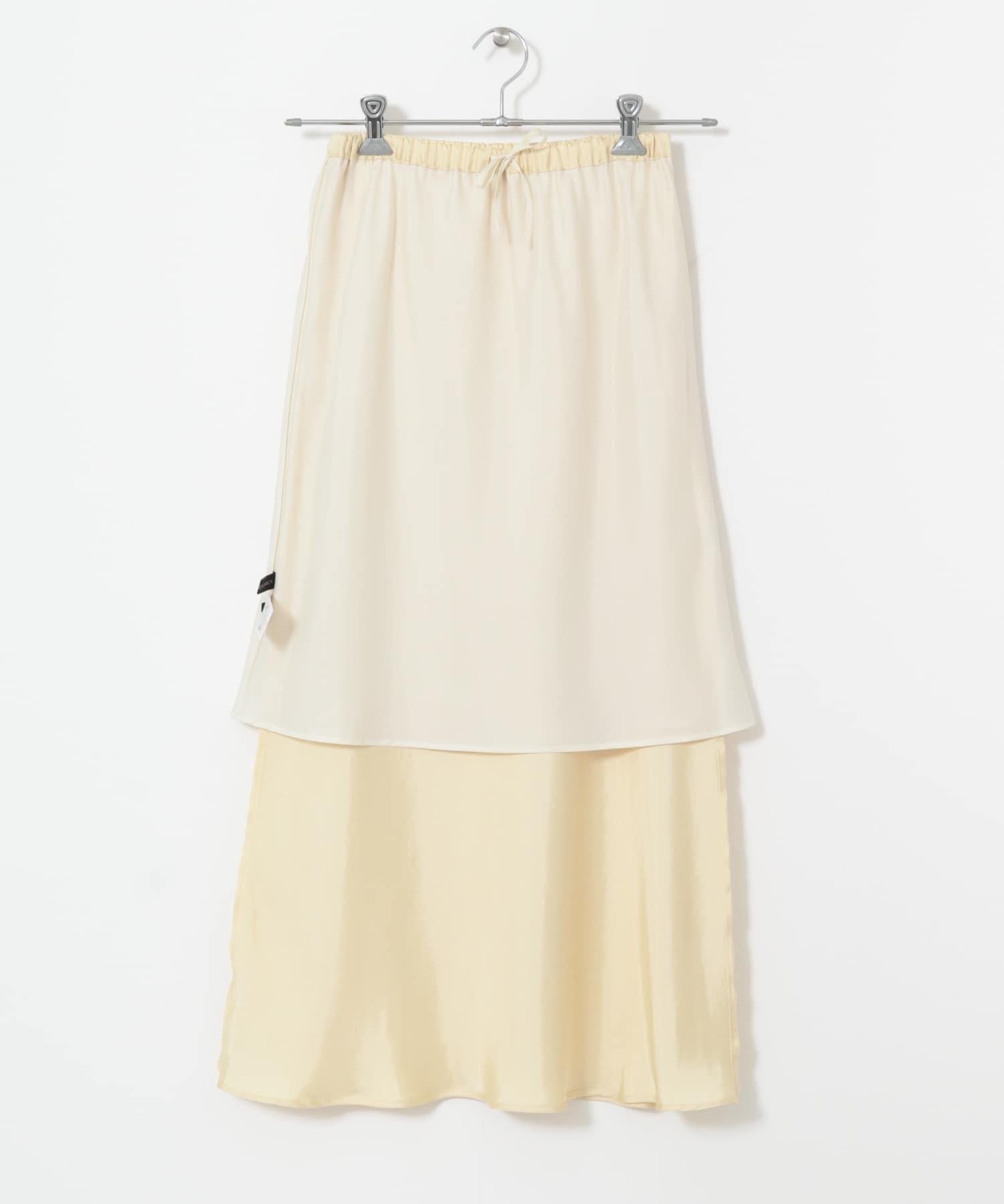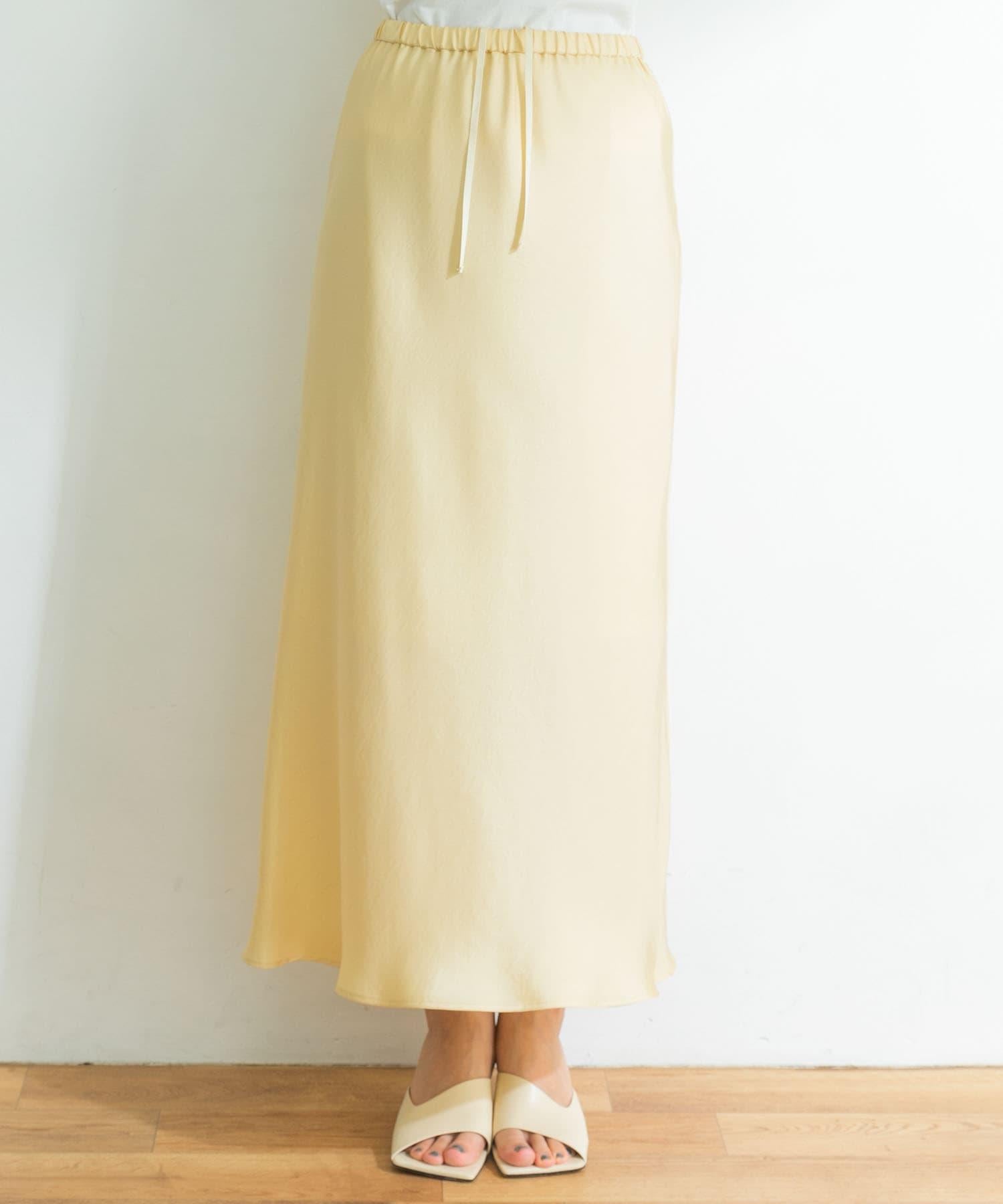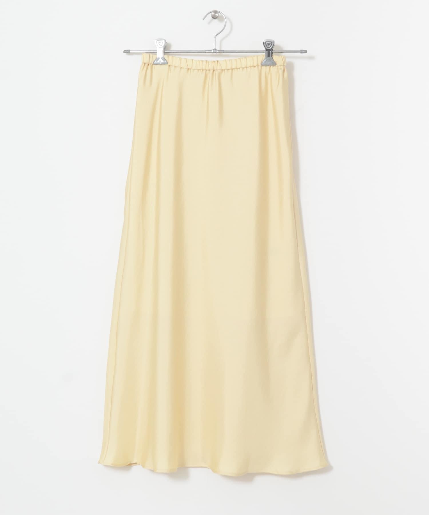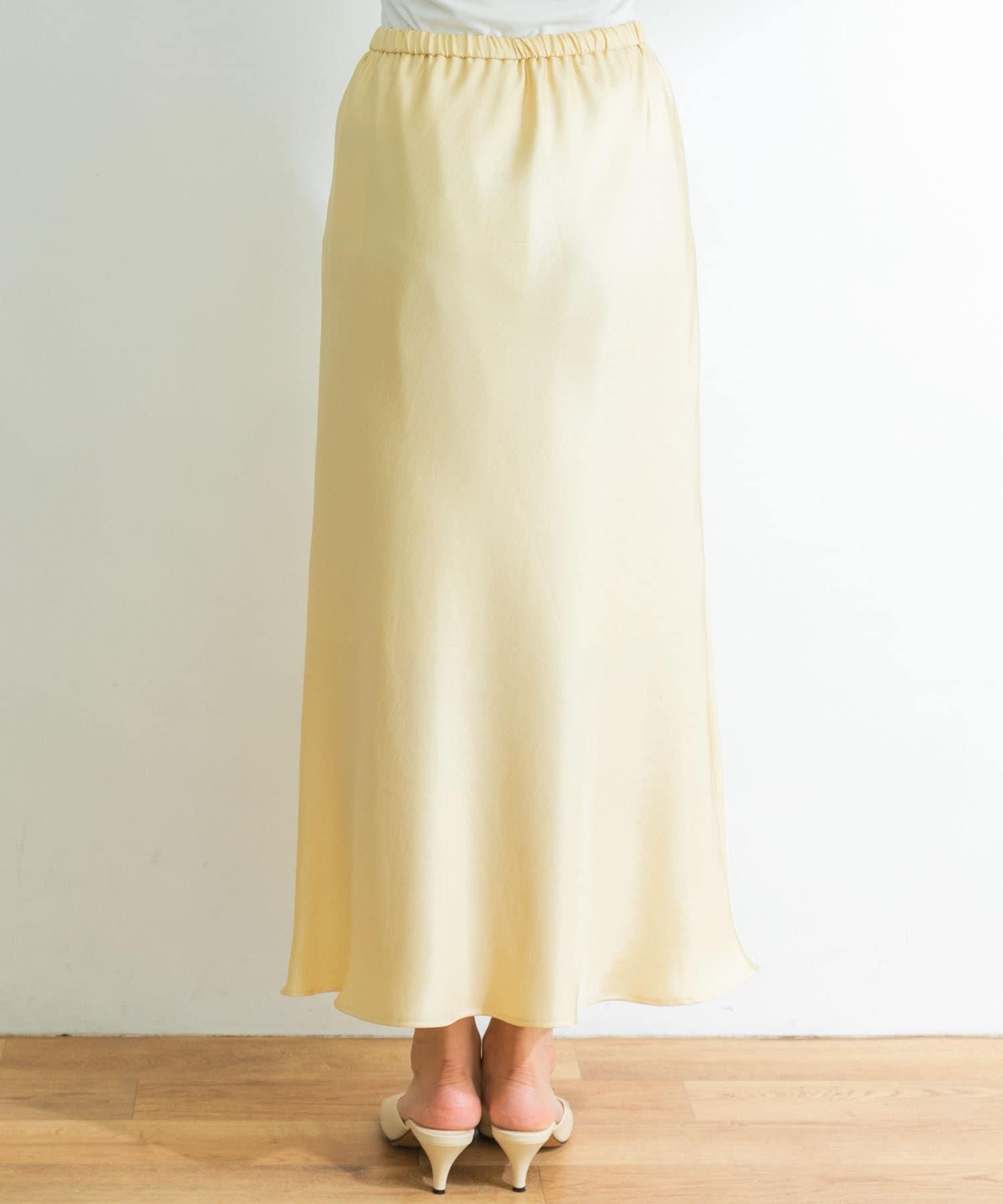 長裙由光滑閃亮的面料製成。面料手感柔軟優雅,富有墜感。斜裁面料打造出緊貼身體線條的優美廓形。緊身廓形搭配喇叭下襬,營造出成熟的印象。