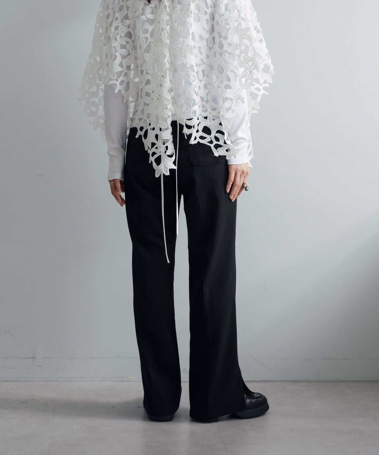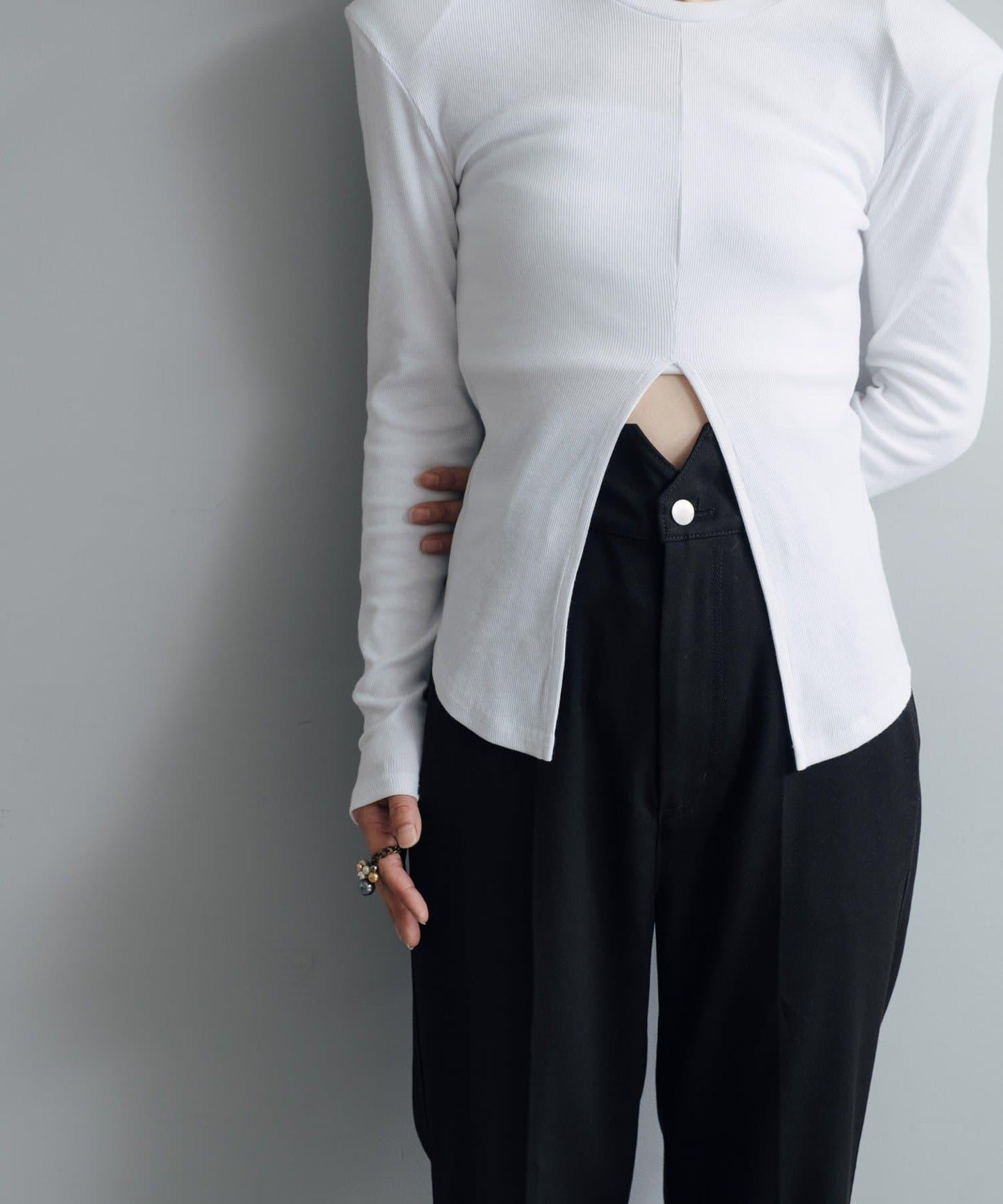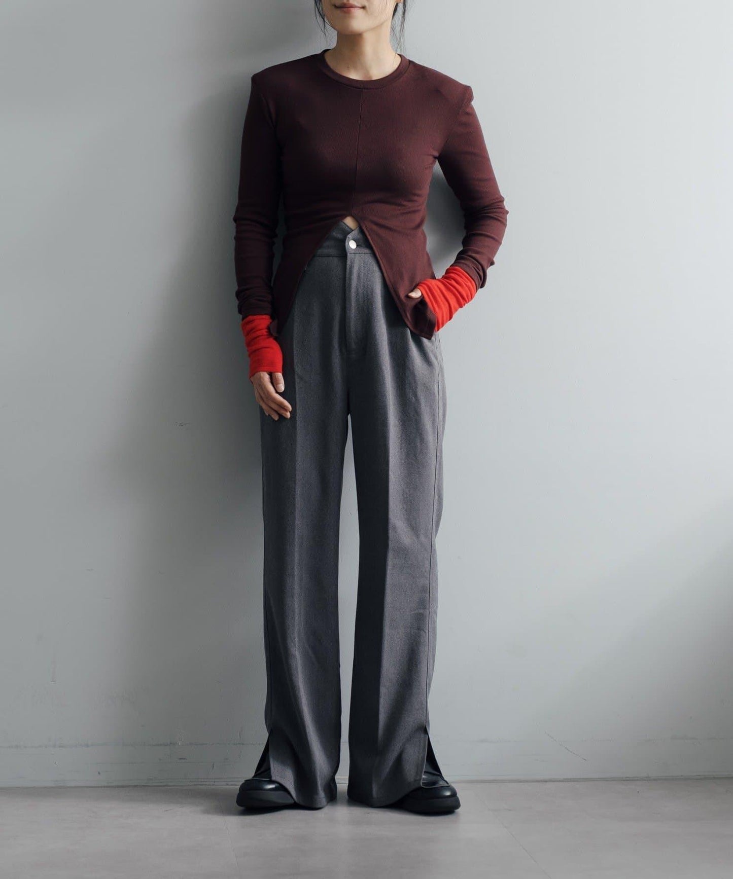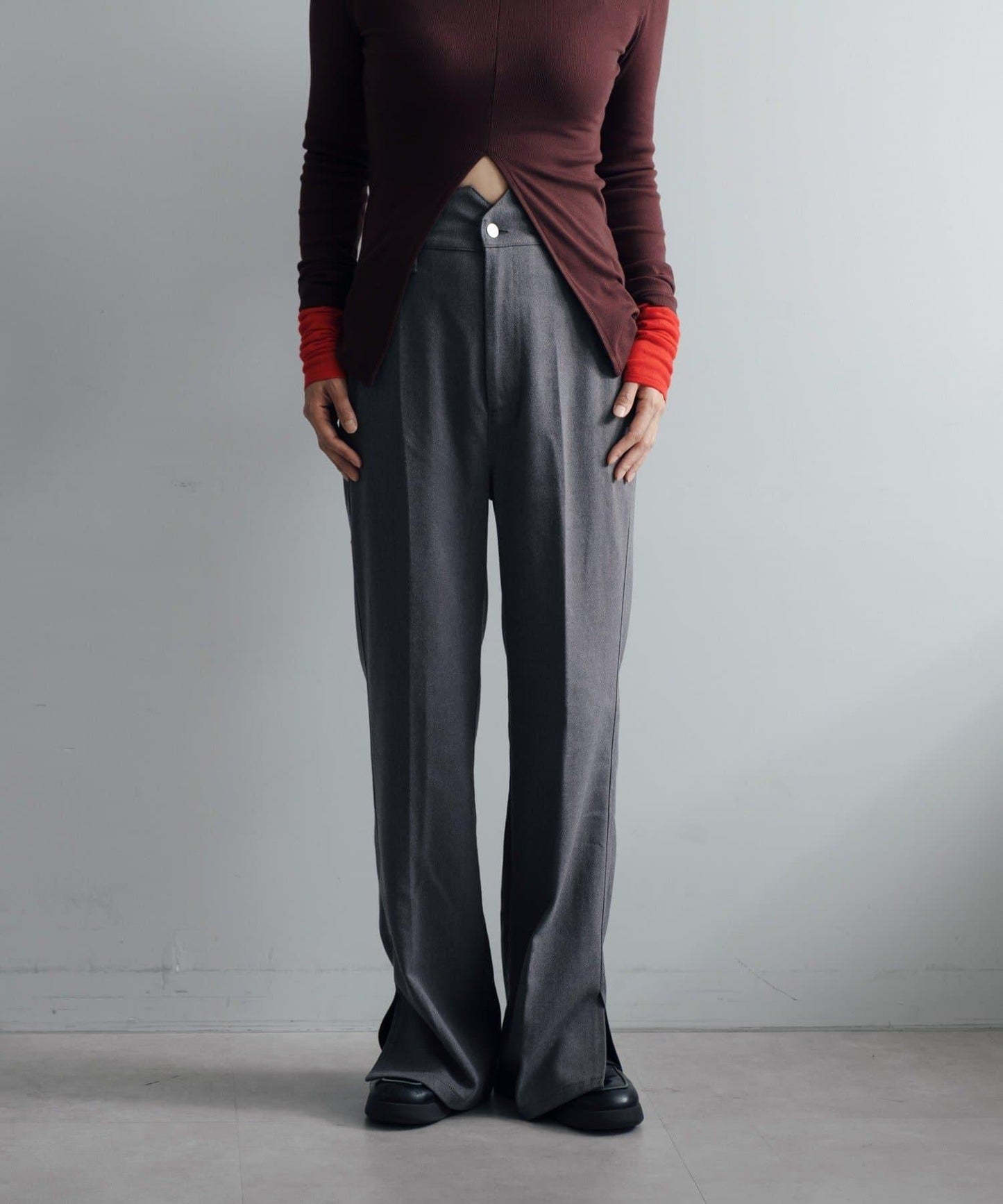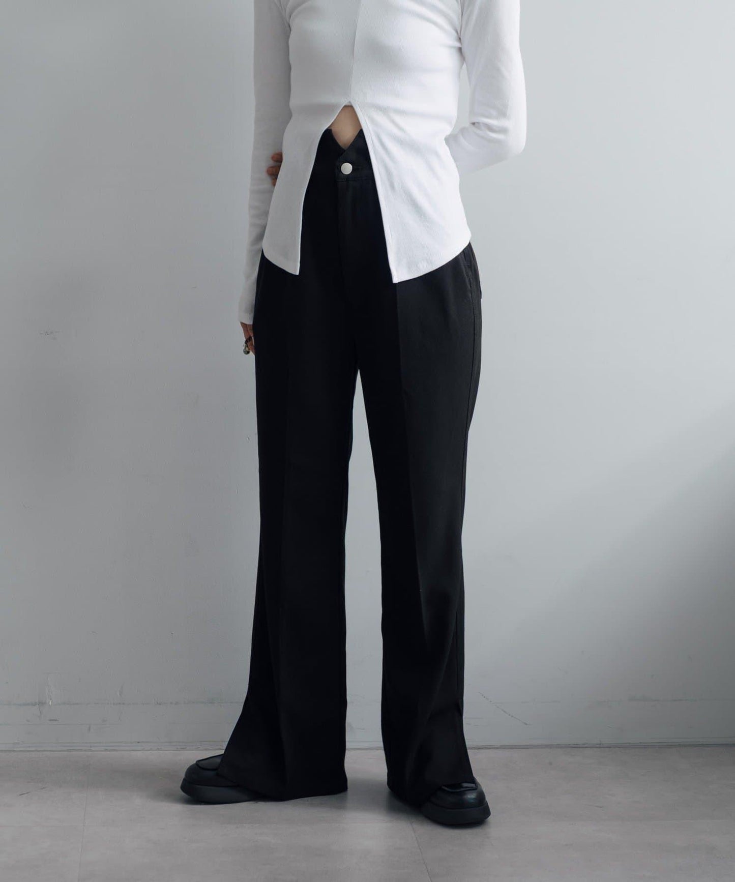 腰部採用安全的高腰設計,配以 Pasterip 長褲標誌性的弧形腰帶,讓你坐下時不再那麼痛苦。長褲還有內置繫帶,可以自由調節尺寸。下襬有開衩設計,使褲腿看起來整潔美觀。