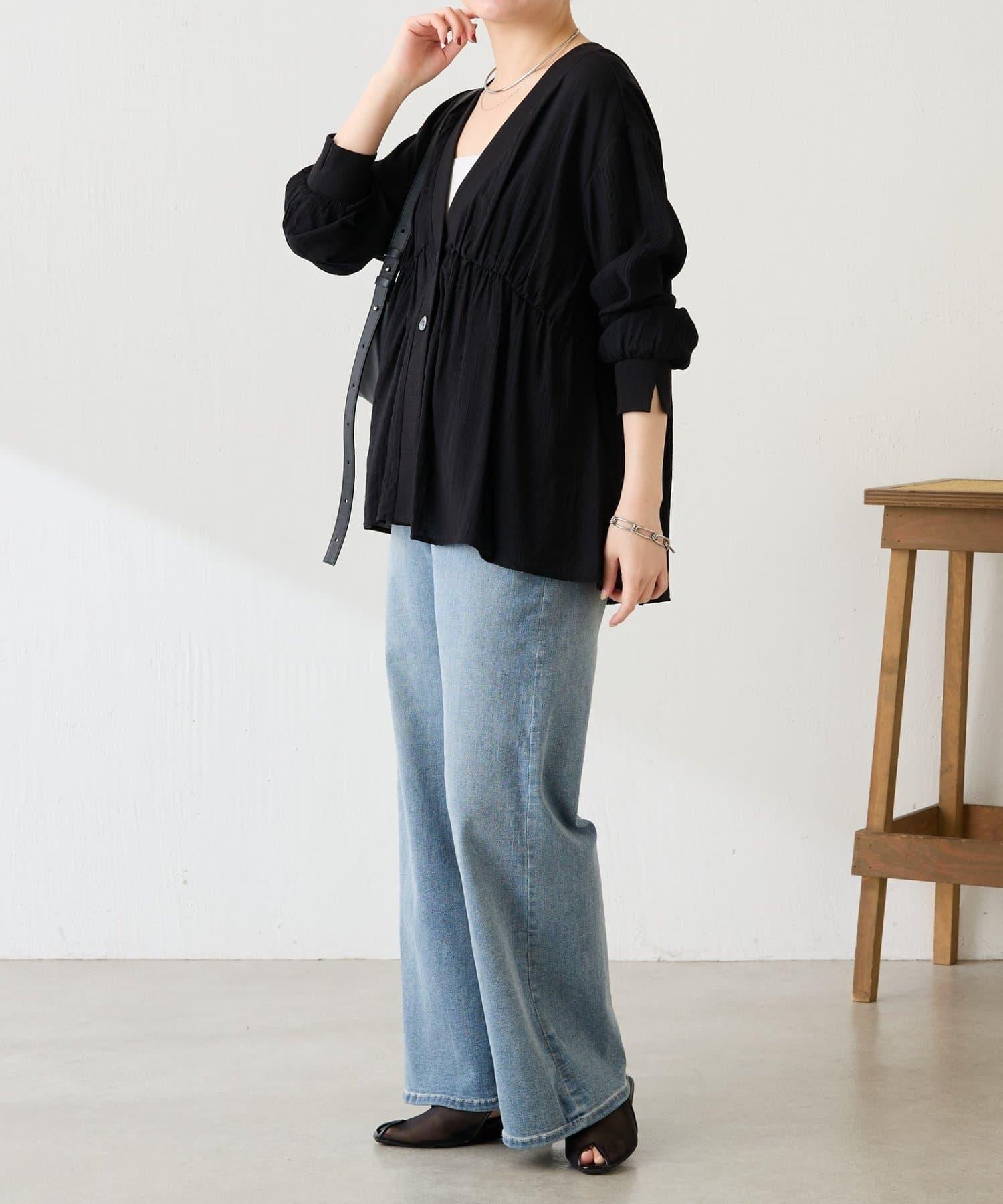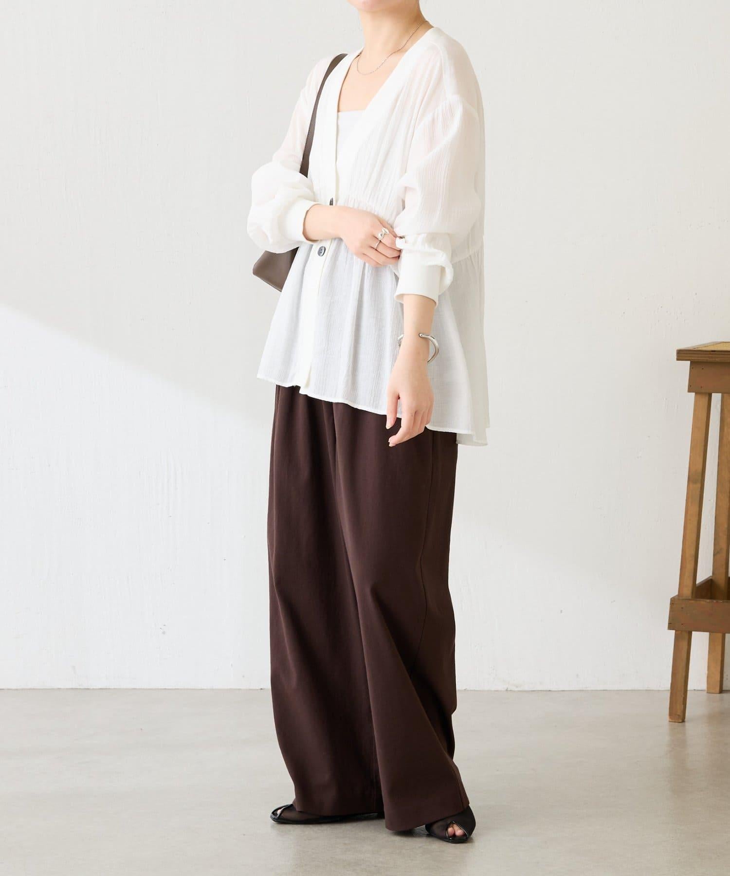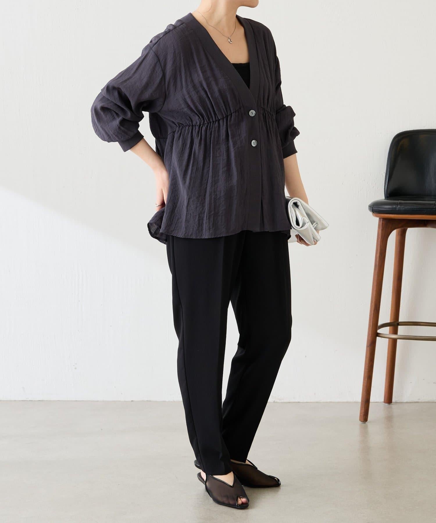 柔美的褶皺設計營造出利落的感覺,因此套在 I 字連身褲外面也很不錯。