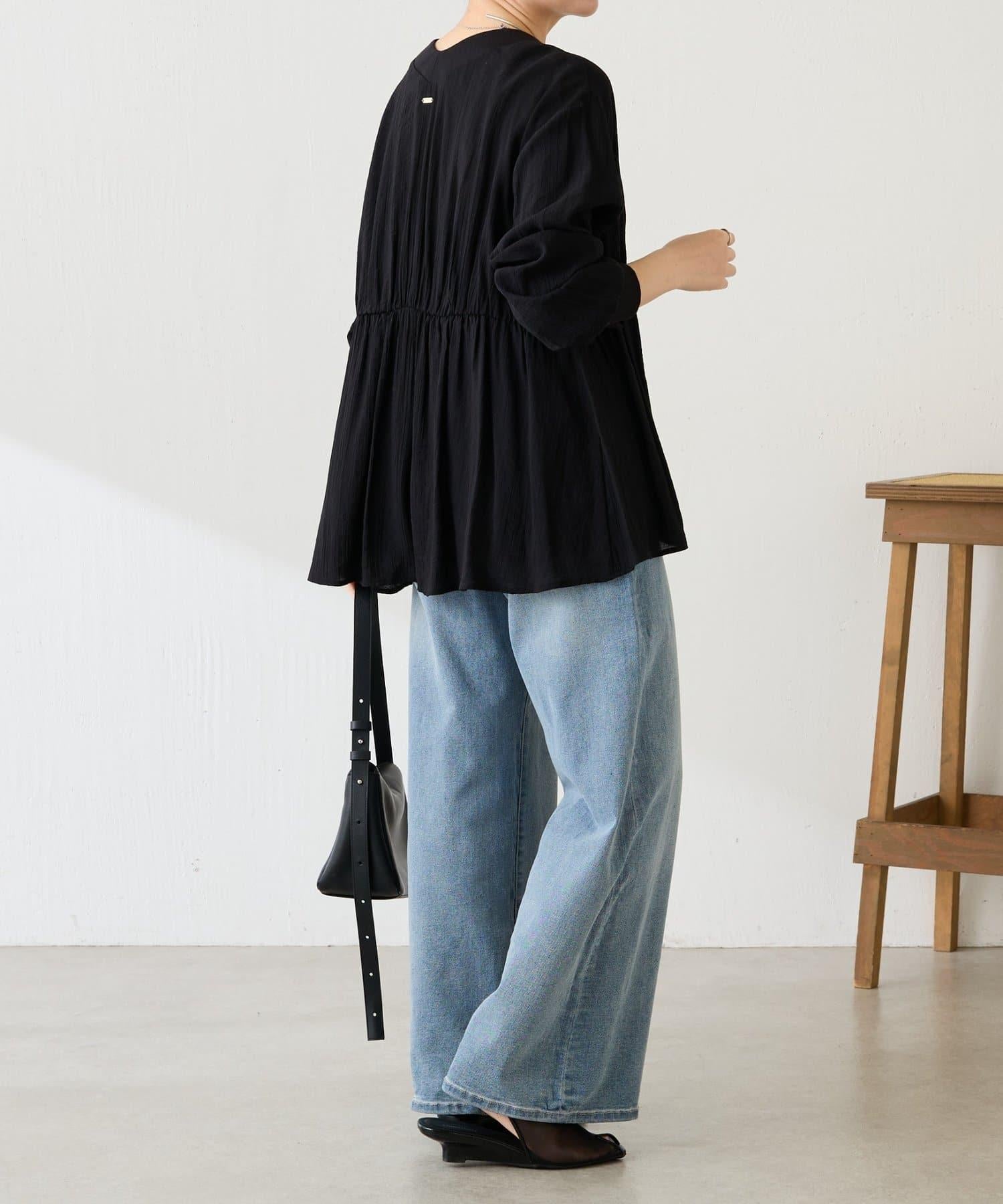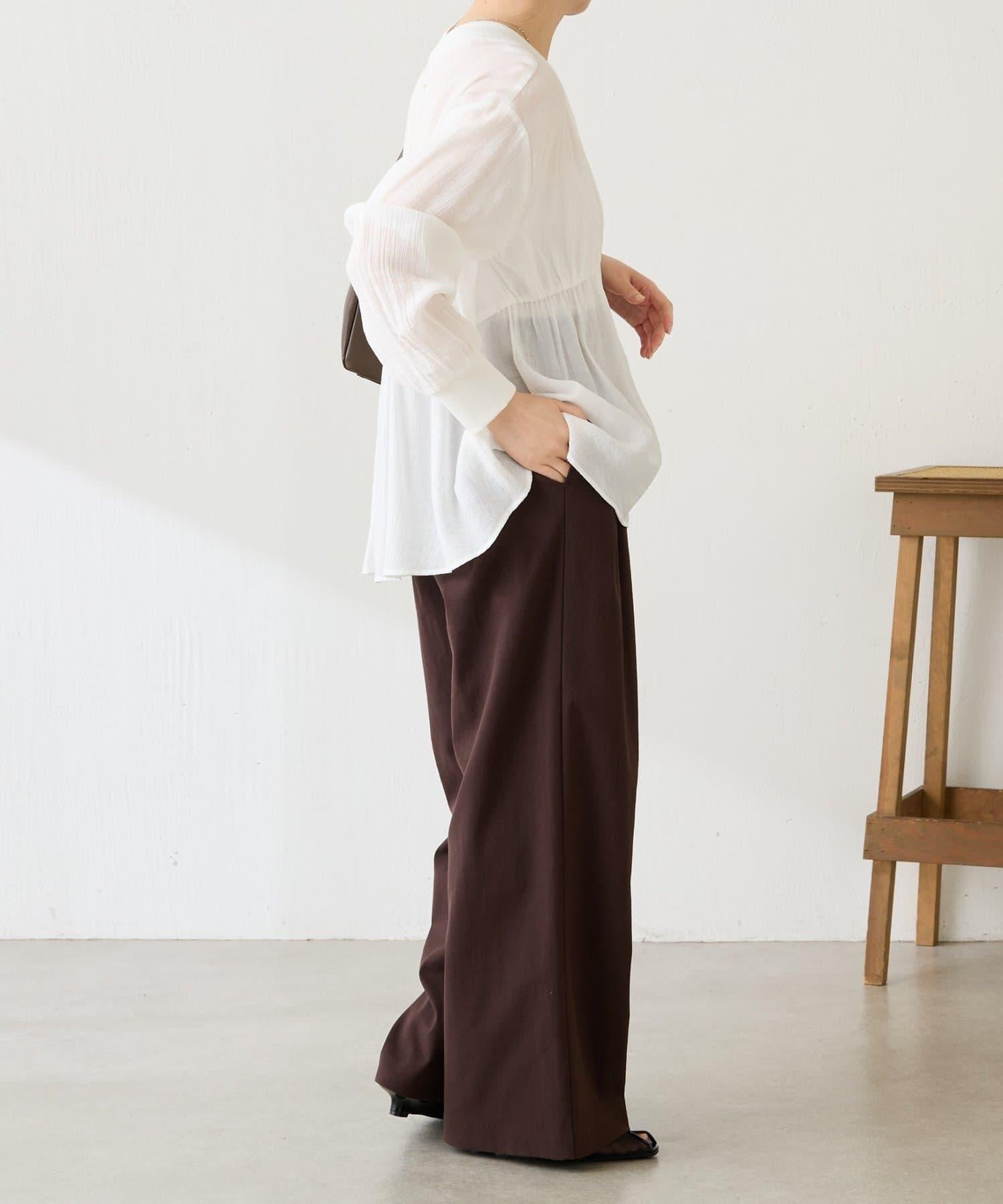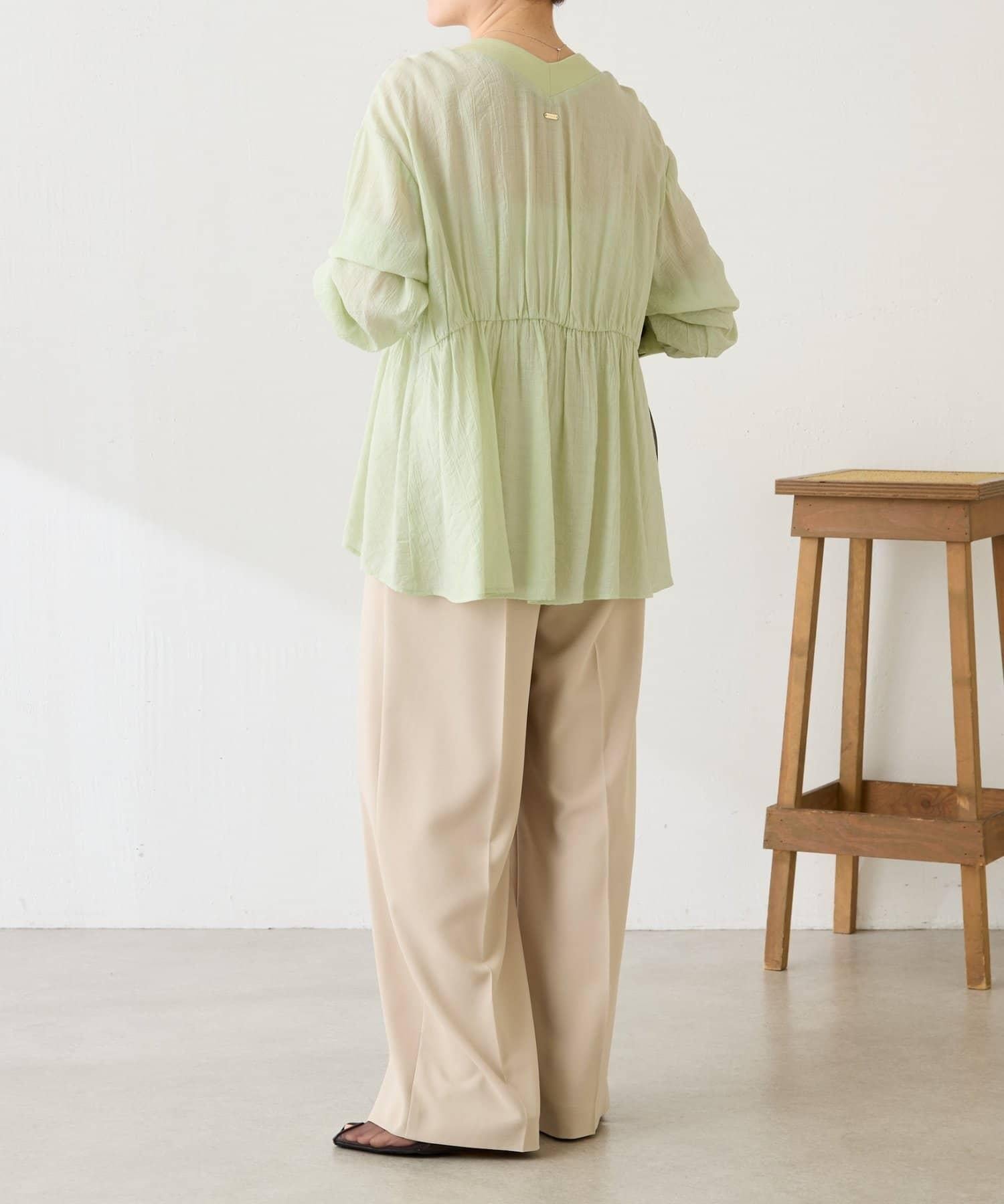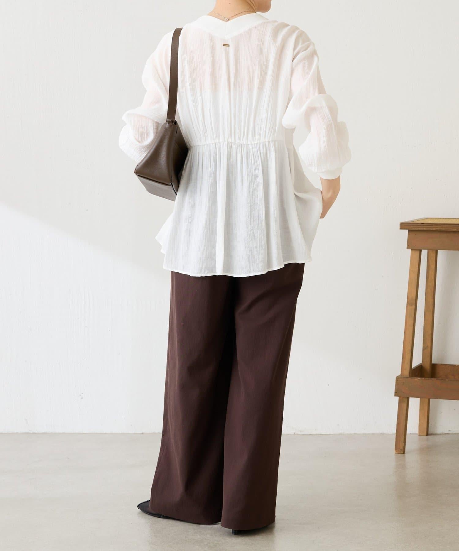 柔美的褶皺設計營造出利落的感覺,因此套在 I 字連身褲外面也很不錯。