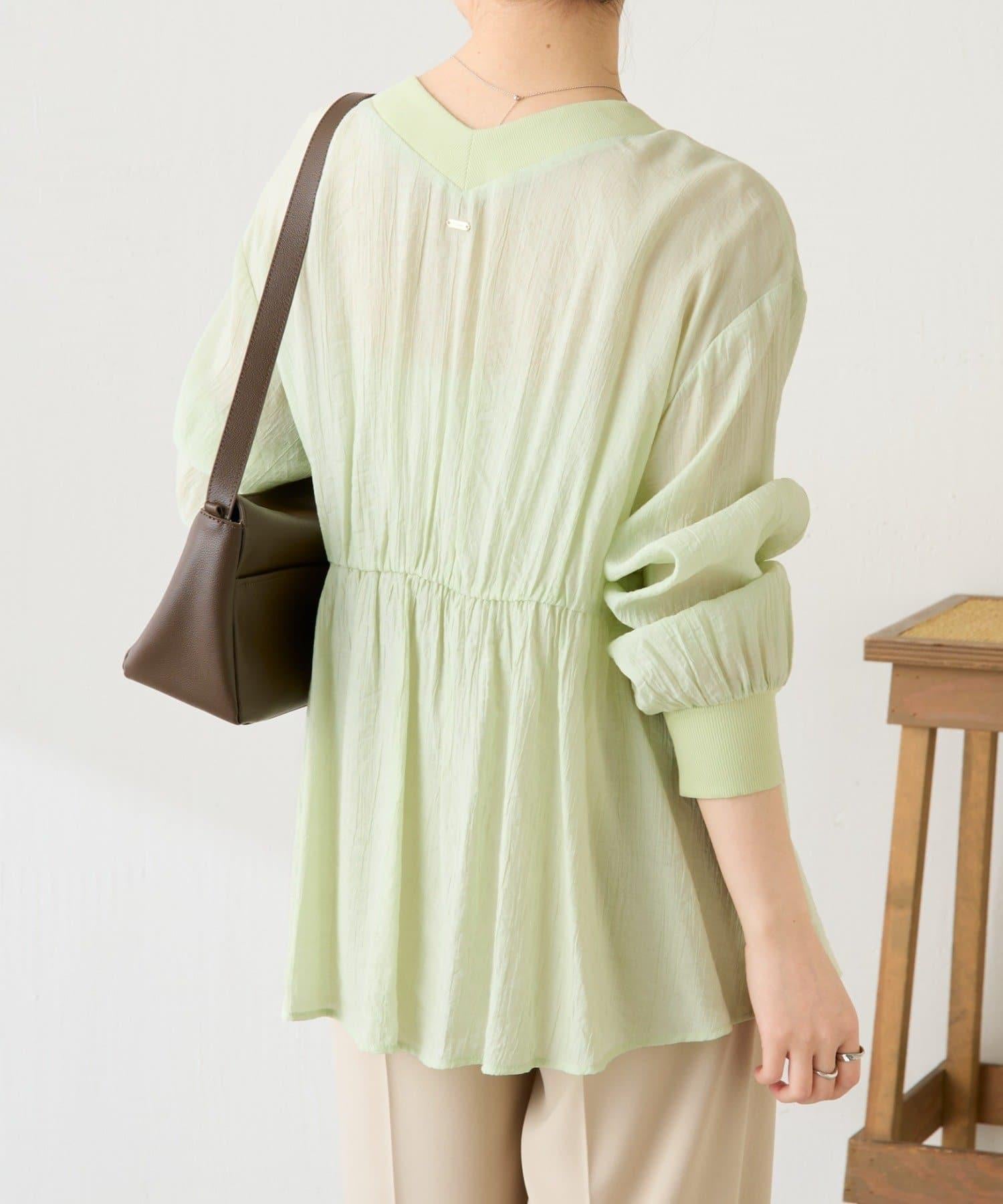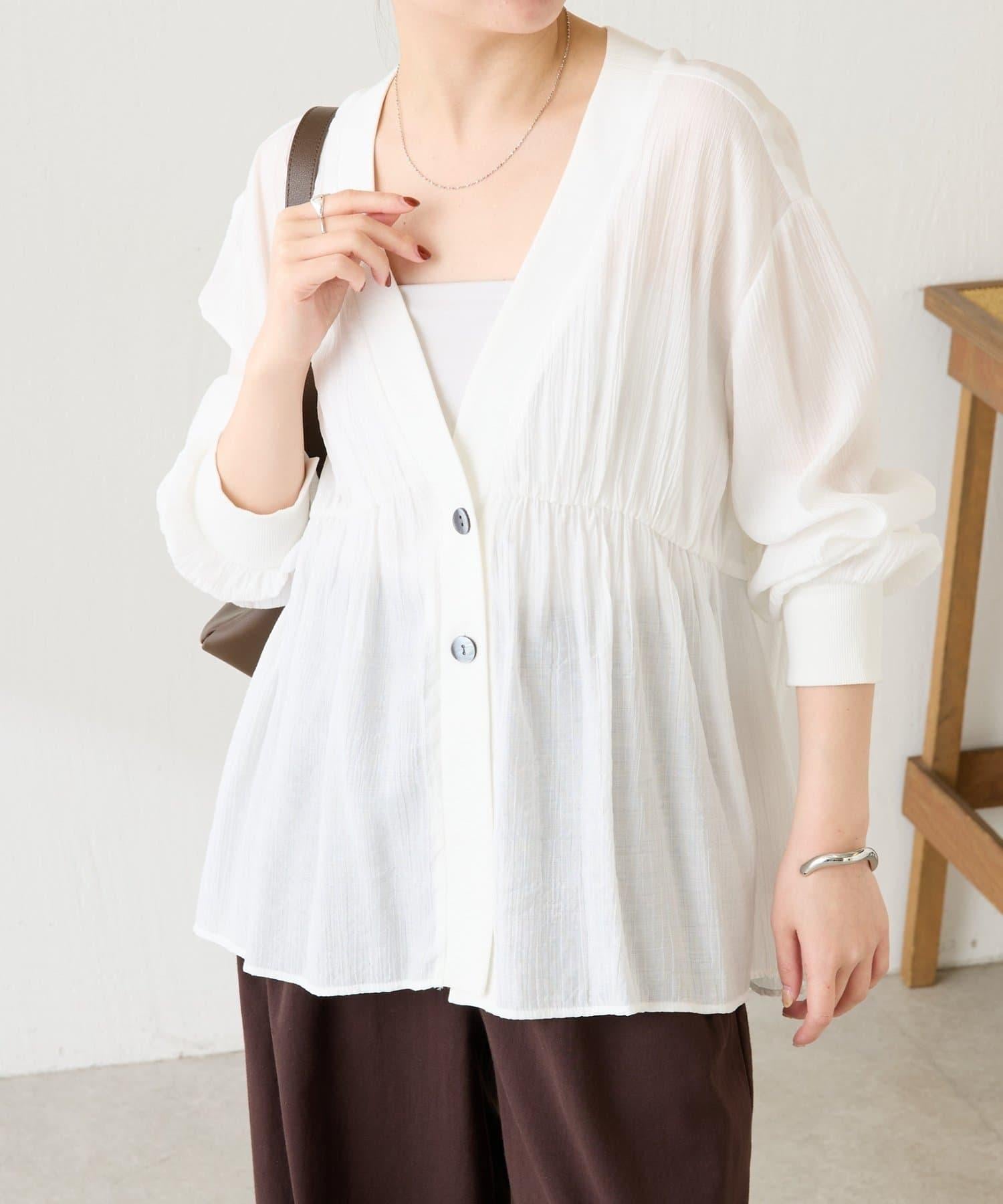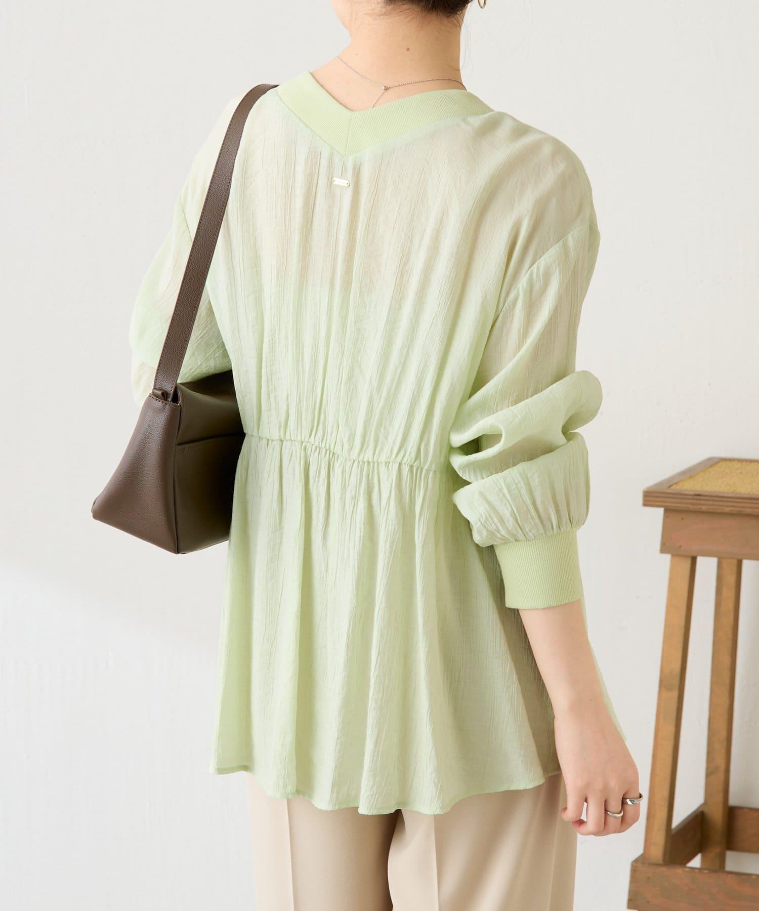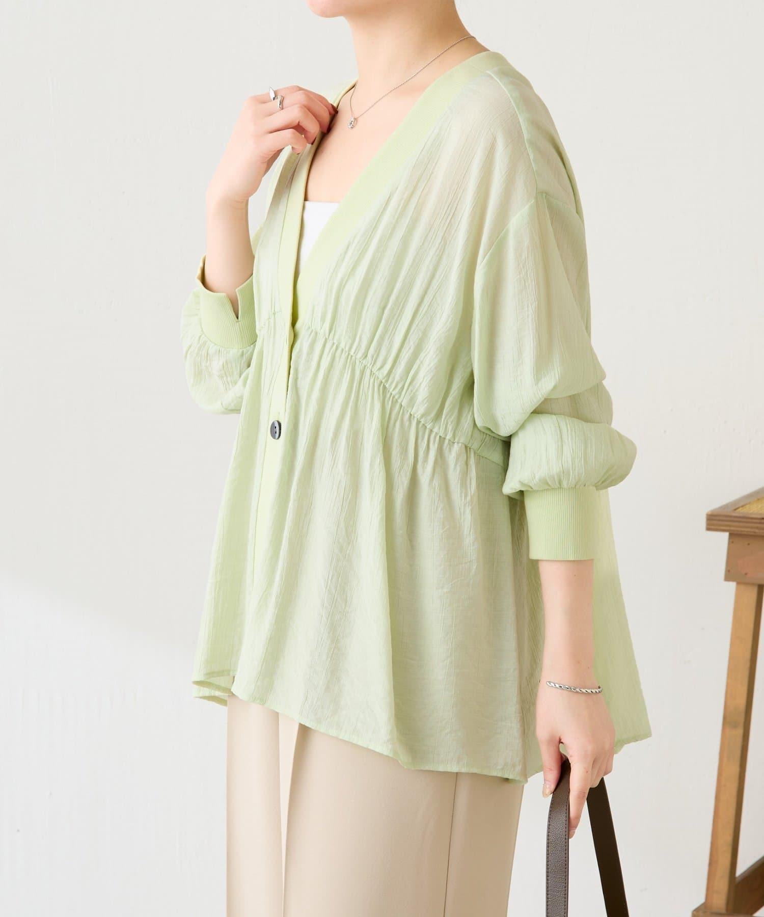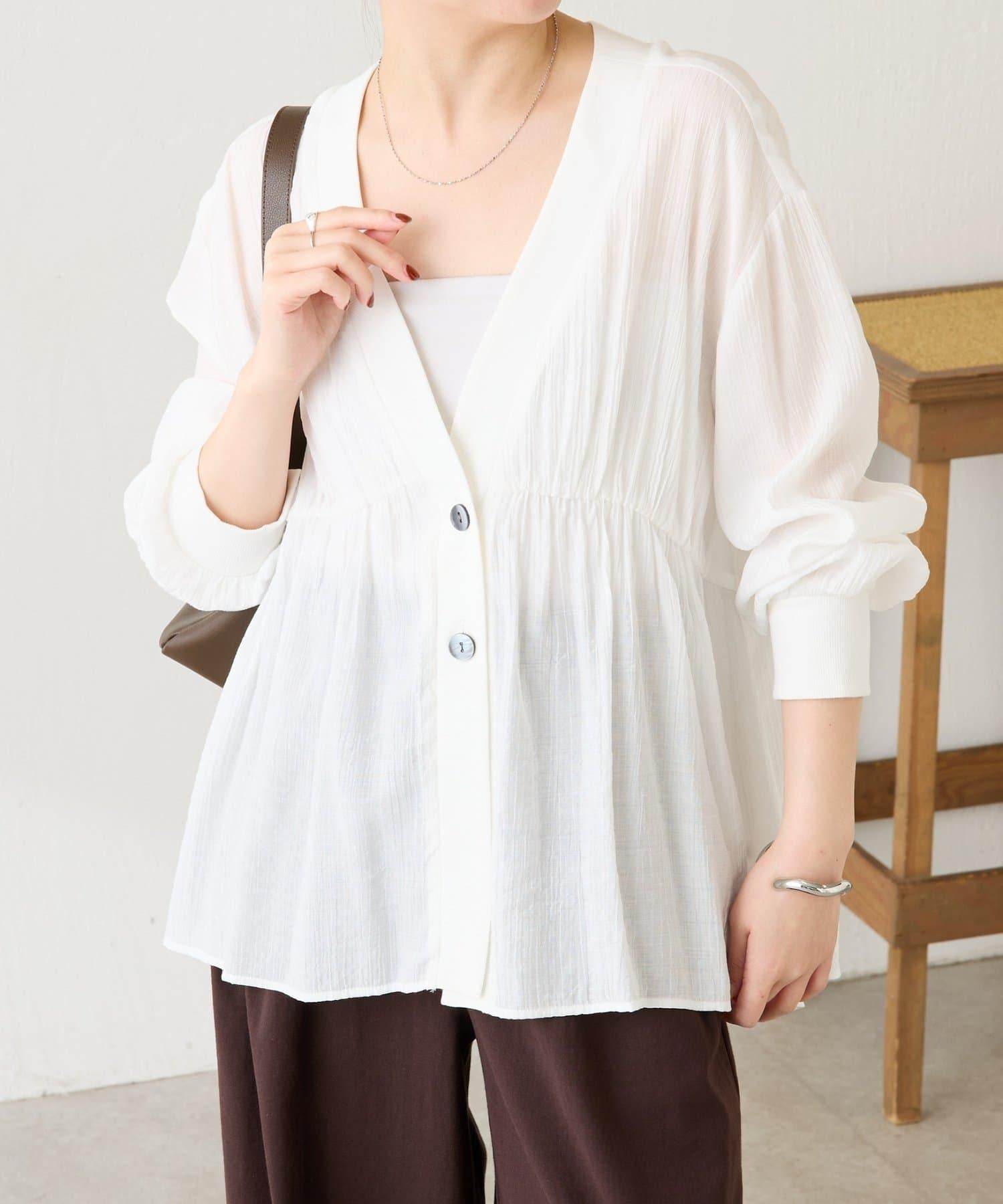 這款襯衫開衫的面料具有洗衣機的手感和恰到好處的薄透質感。