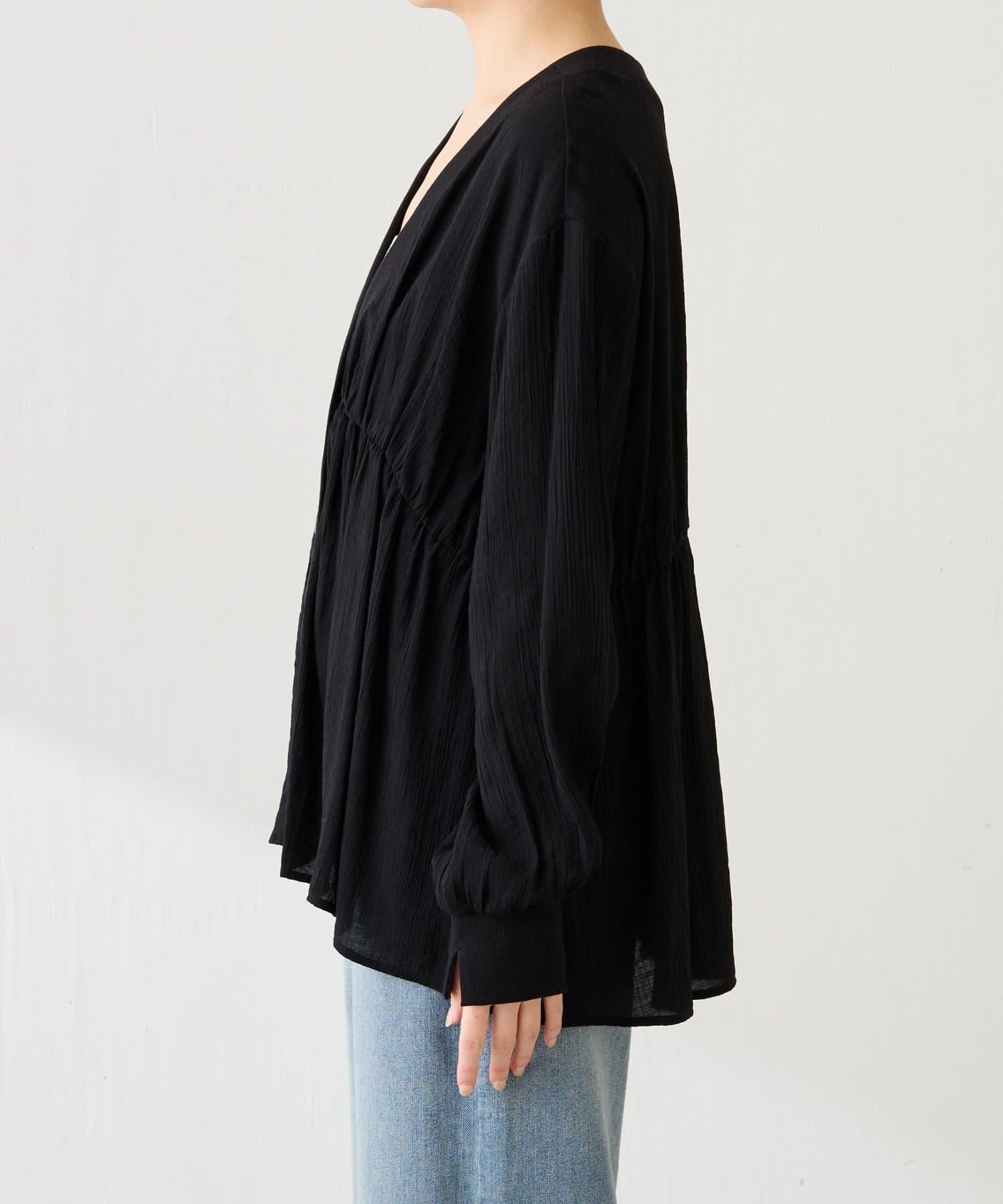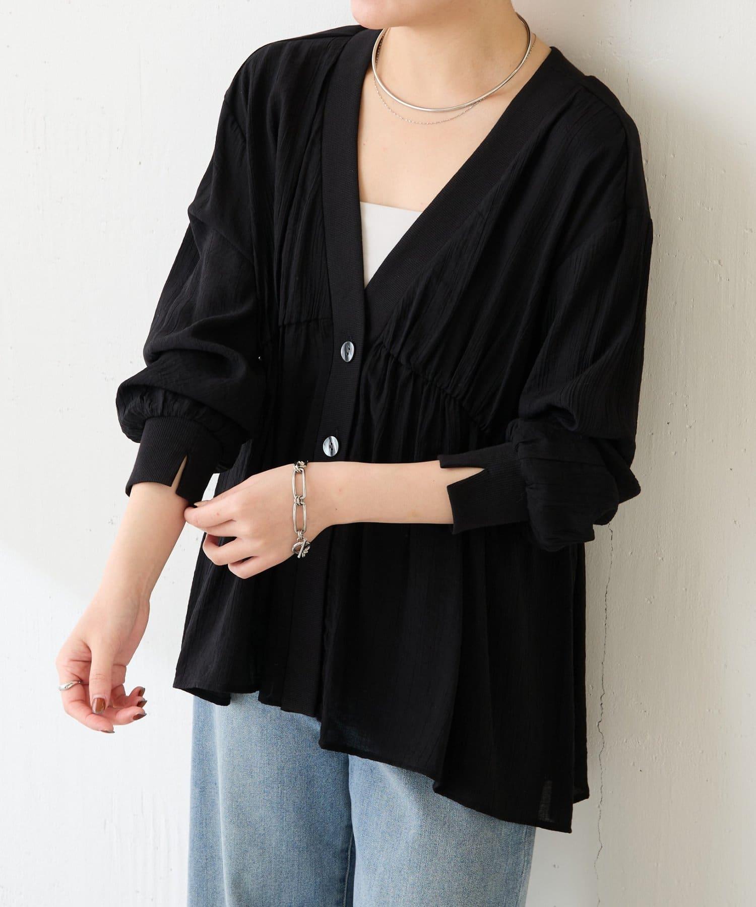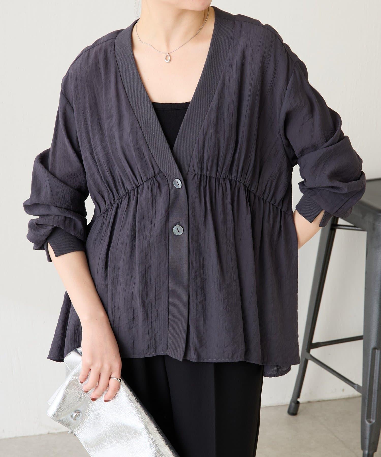 修飾身形 褶皺拼接 襯衫式開衫