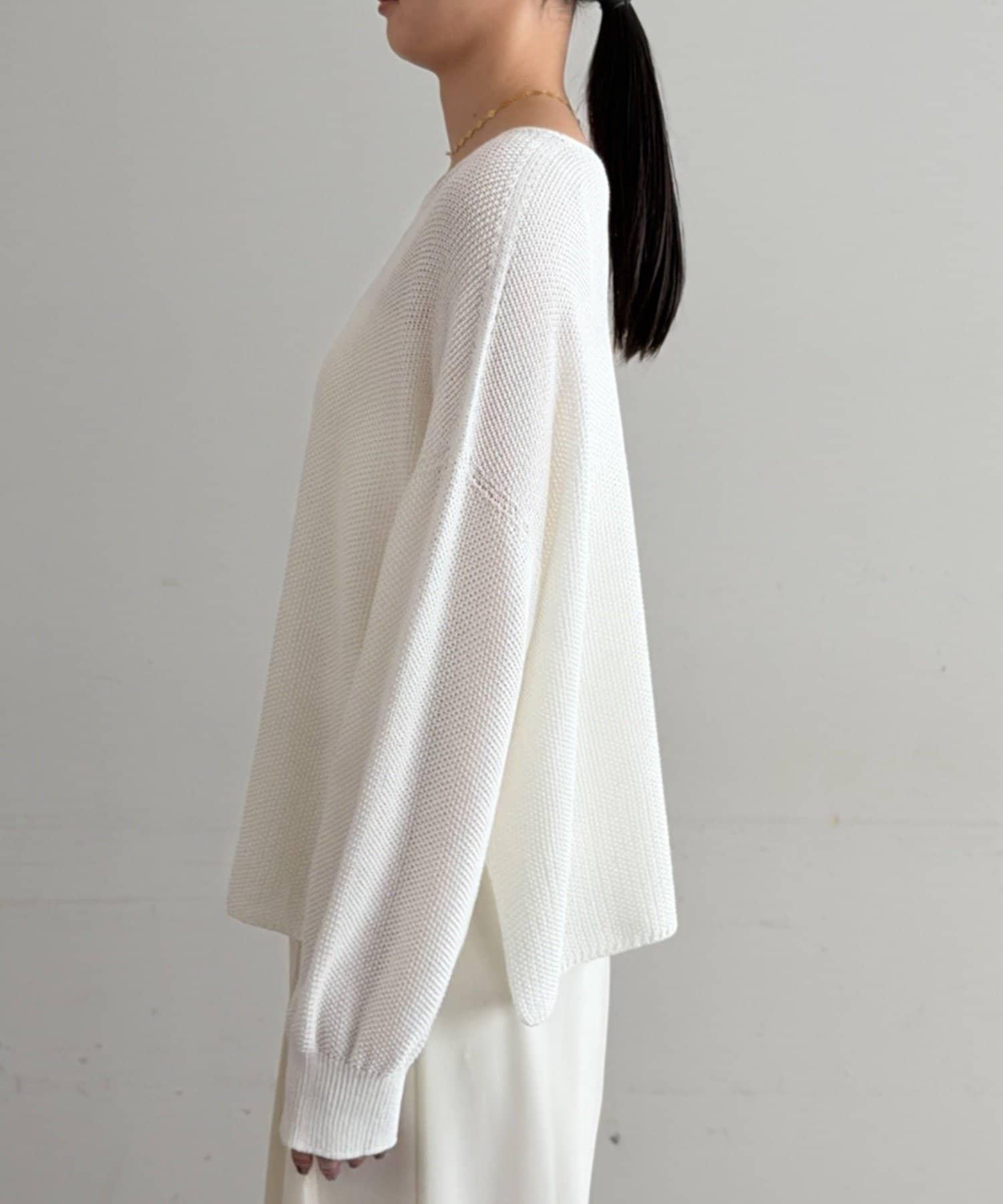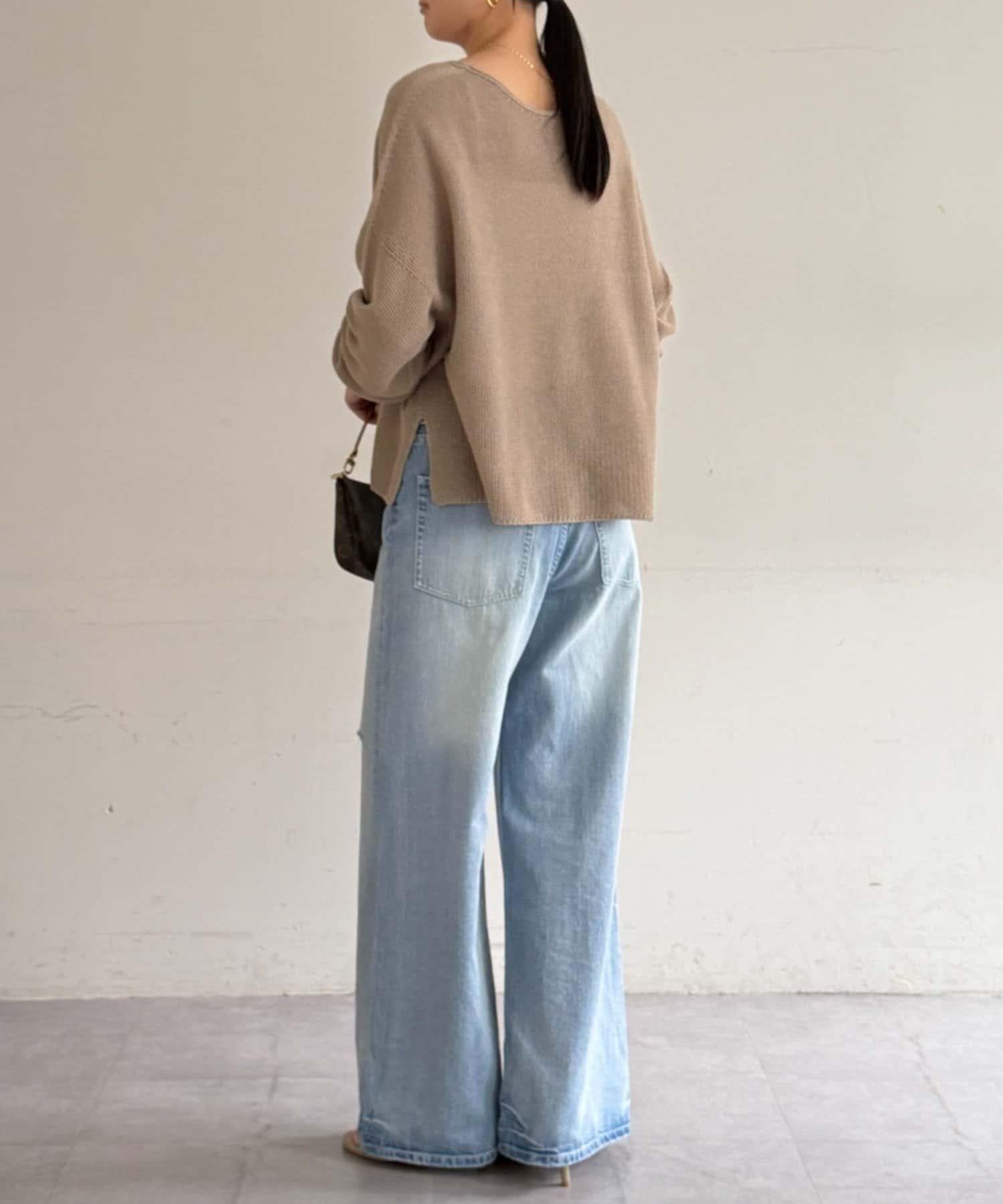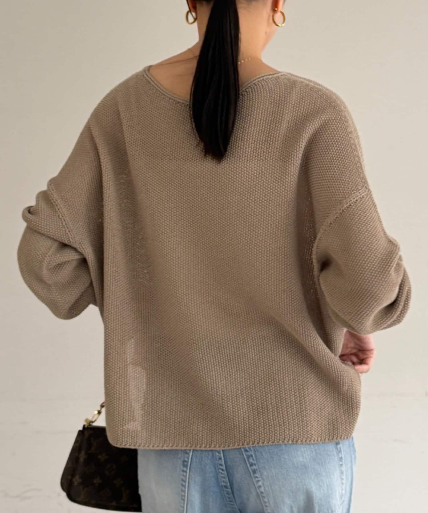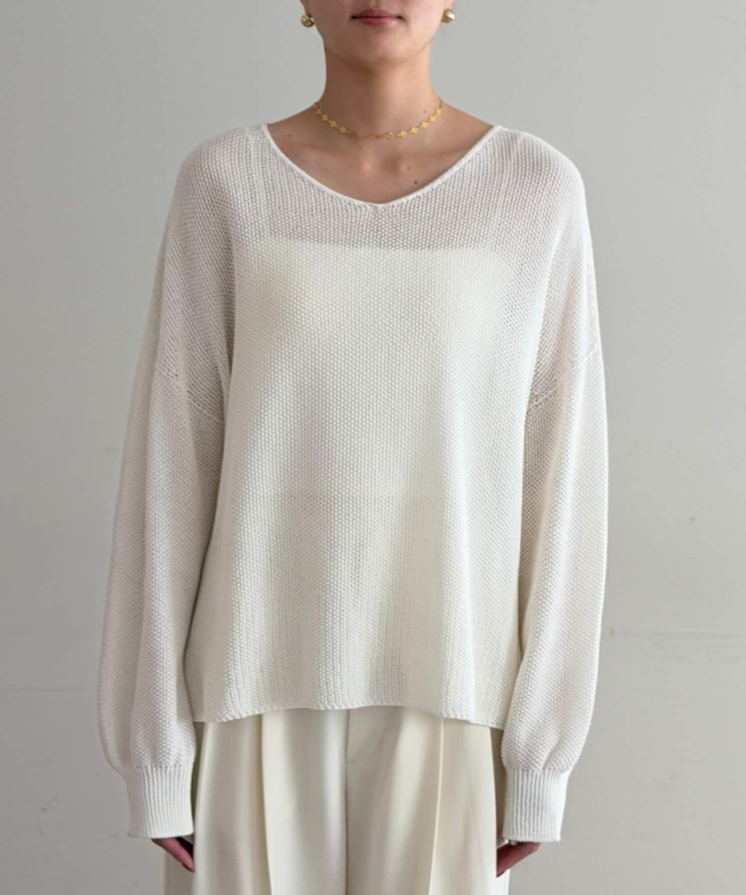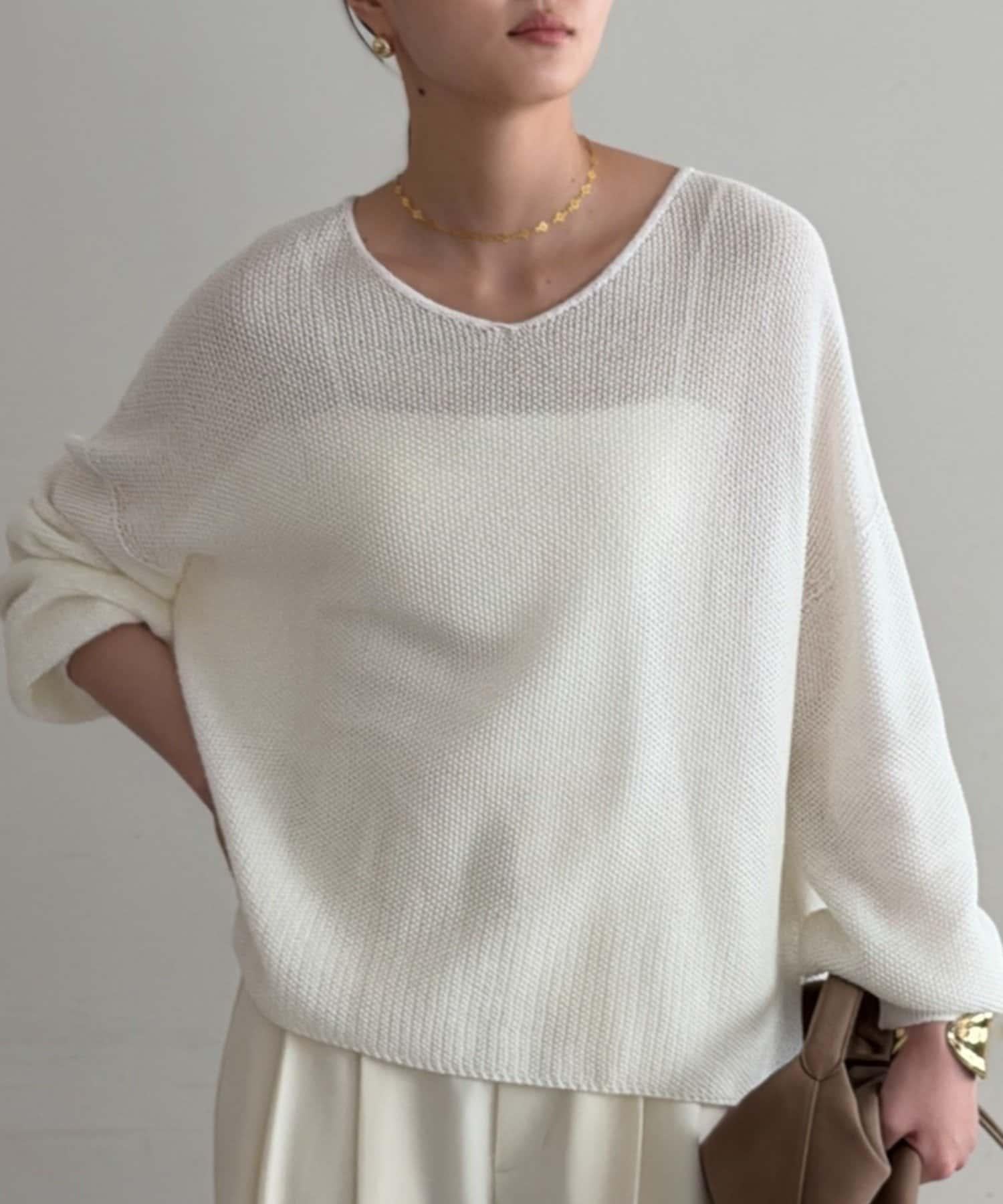 V 領給人簡潔的感覺,圓領則給人優雅的印象。適度寬鬆的版型給人一種輕鬆舒適的感覺,隨意地遮住手臂和腹部。側面開衩的設計,可與任何下裝搭配,打造均衡的造型。