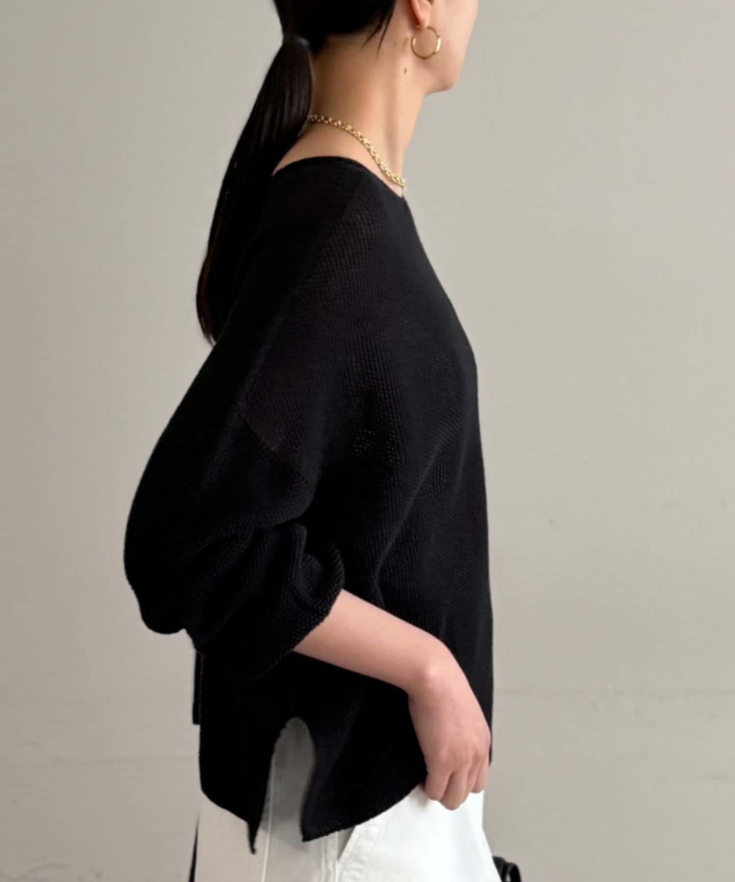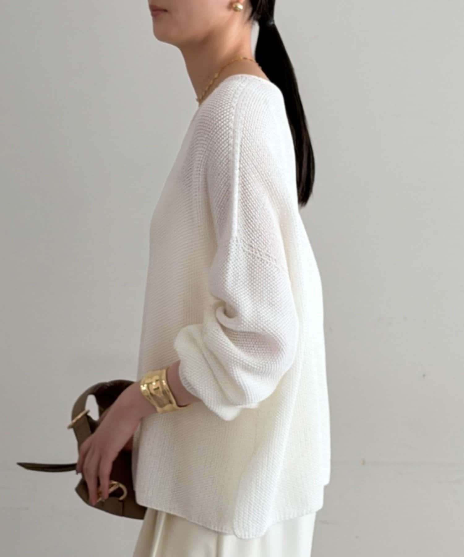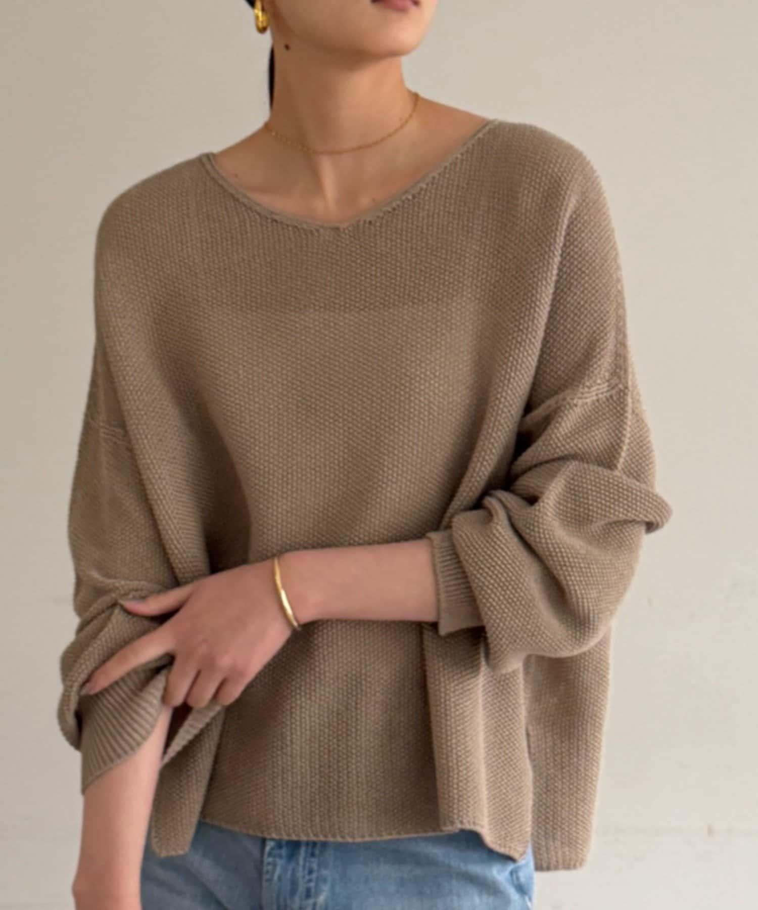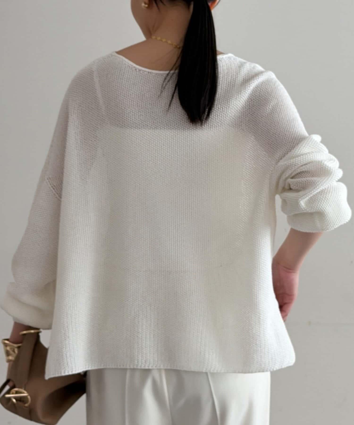 V 領給人簡潔的感覺,圓領則給人優雅的印象。適度寬鬆的版型給人一種輕鬆舒適的感覺,隨意地遮住手臂和腹部。側面開衩的設計,可與任何下裝搭配,打造均衡的造型。