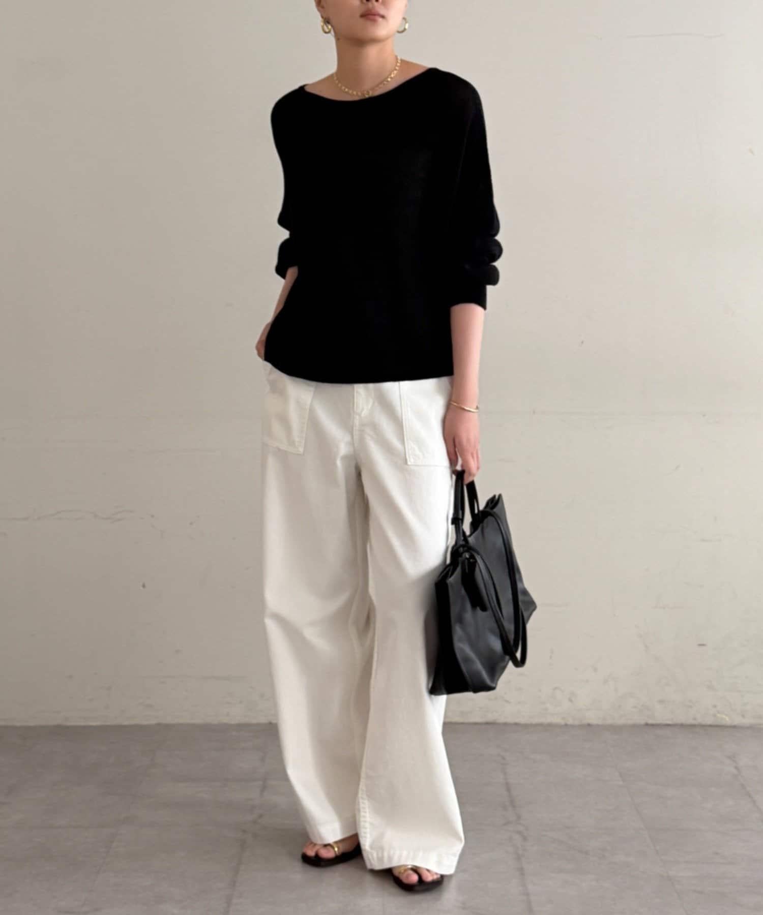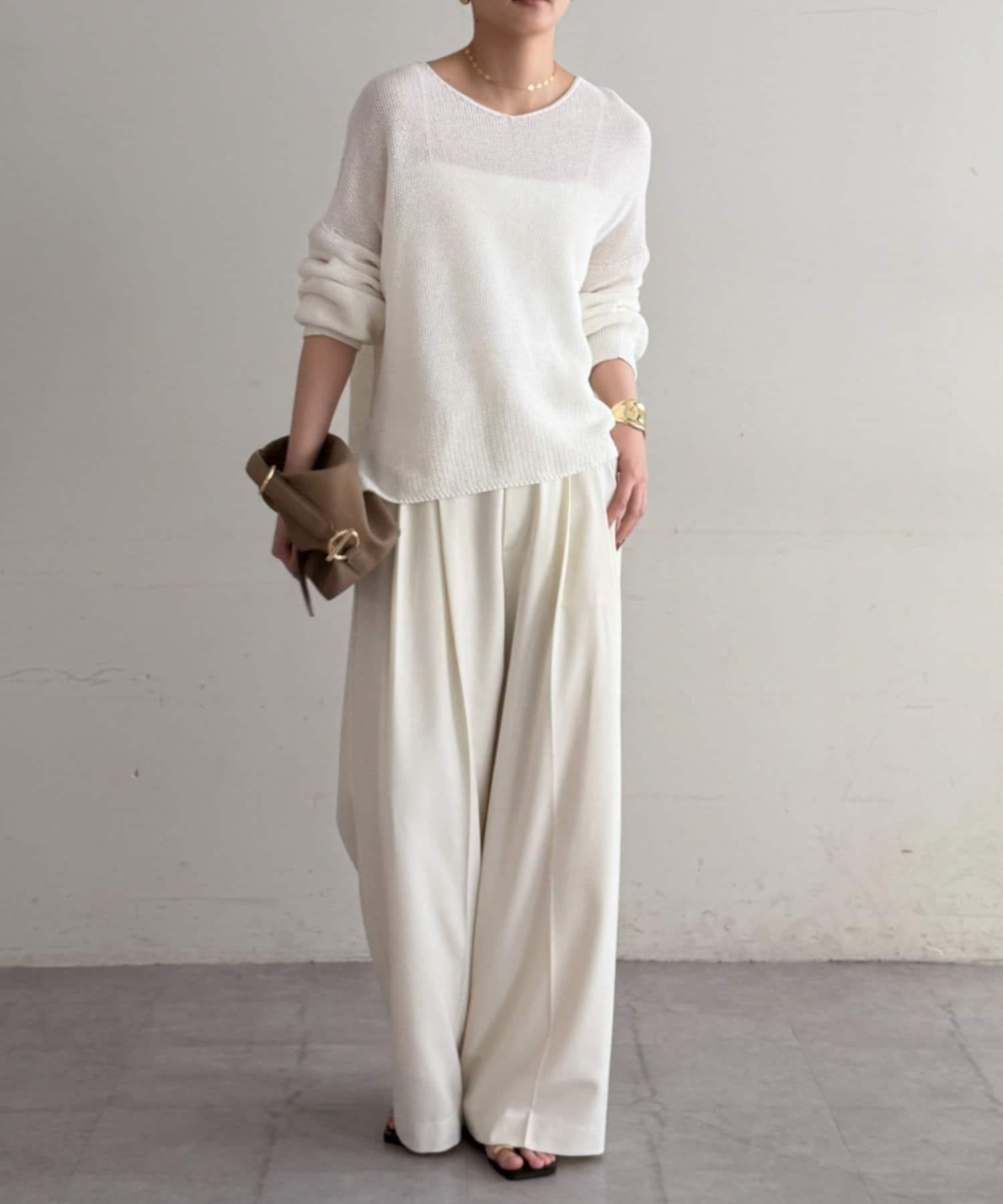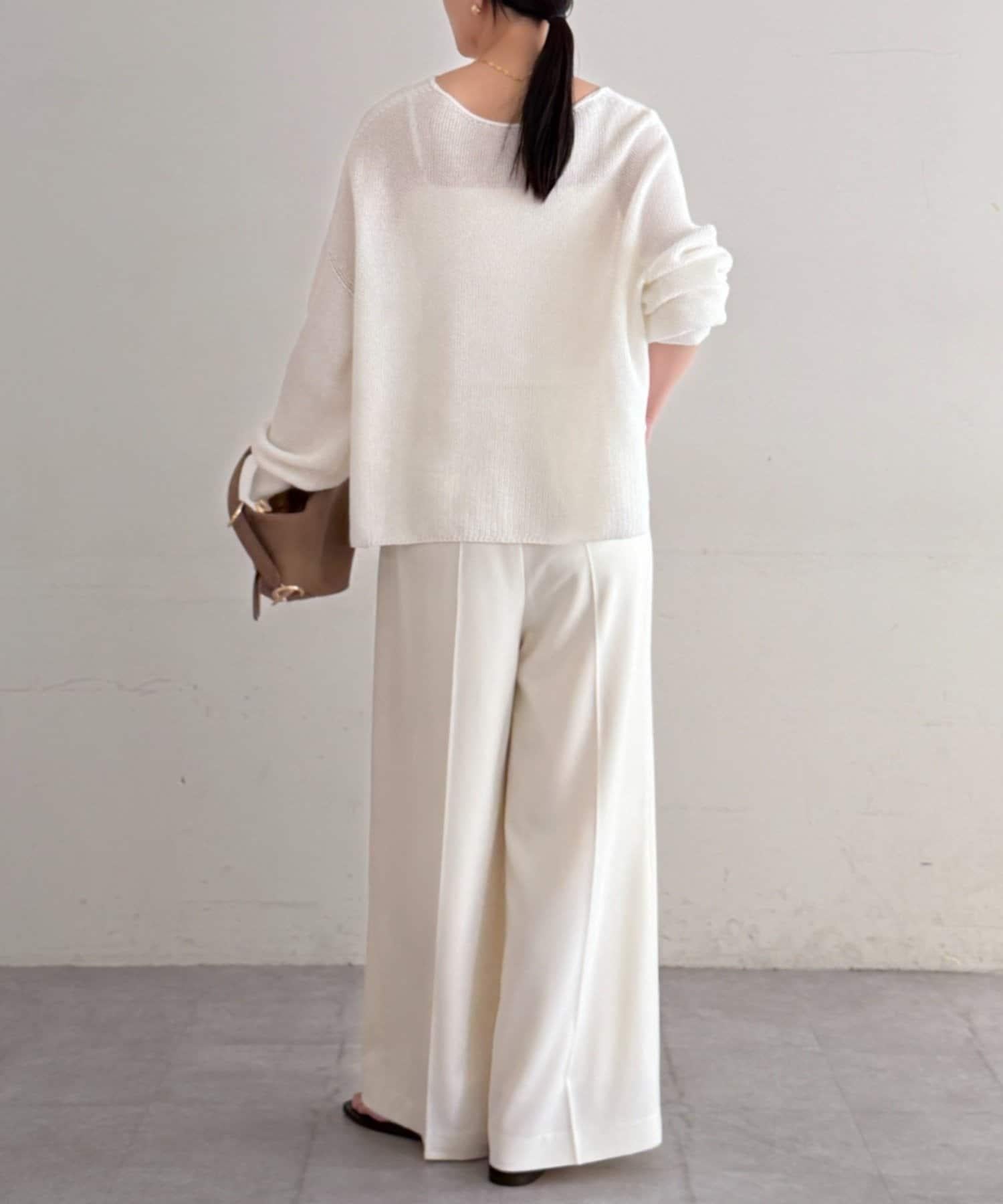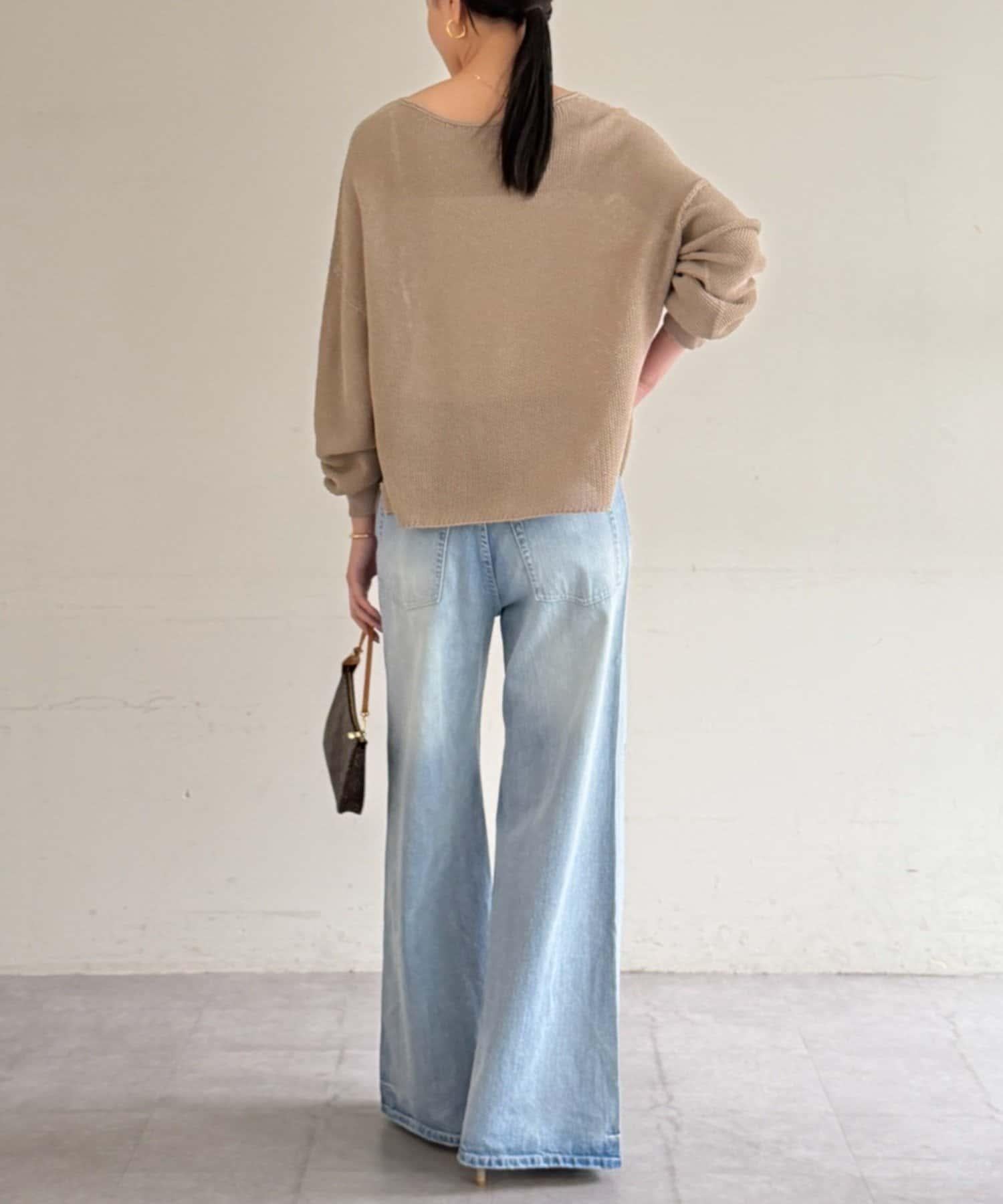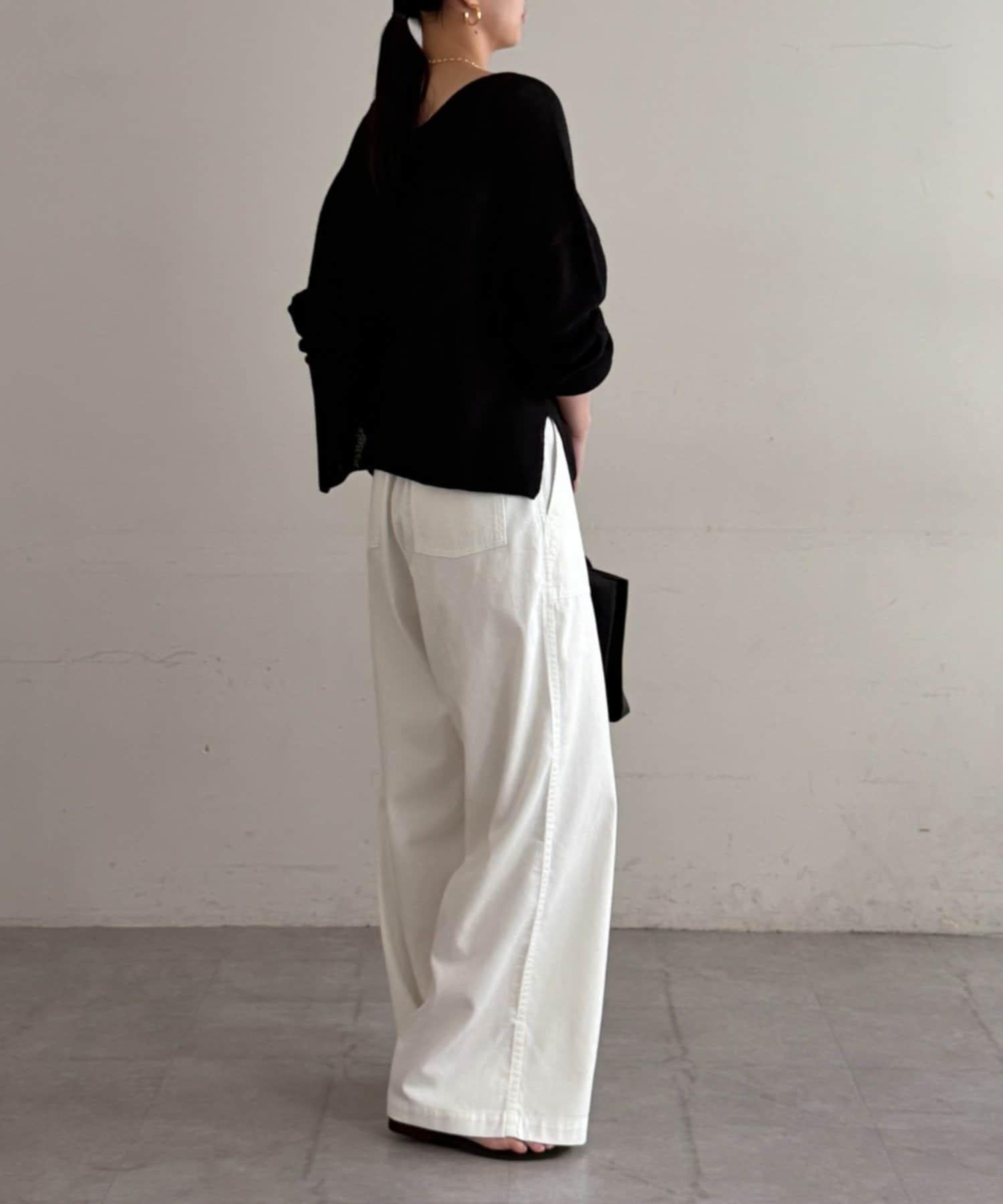 V 領給人簡潔的感覺,圓領則給人優雅的印象。適度寬鬆的版型給人一種輕鬆舒適的感覺,隨意地遮住手臂和腹部。側面開衩的設計,可與任何下裝搭配,打造均衡的造型。