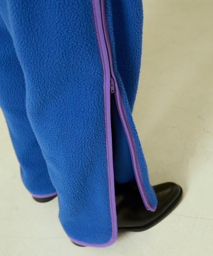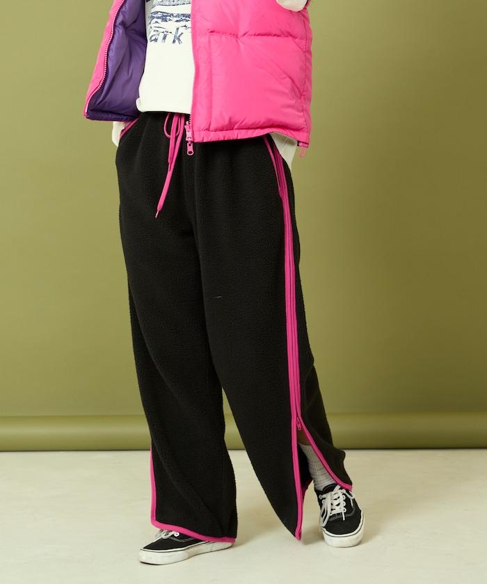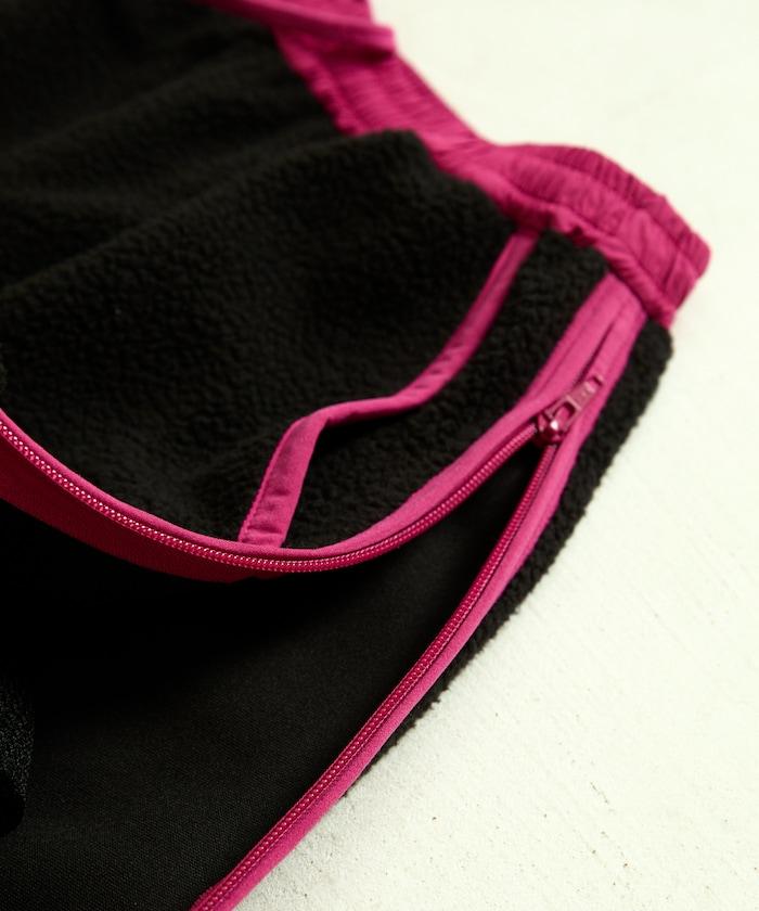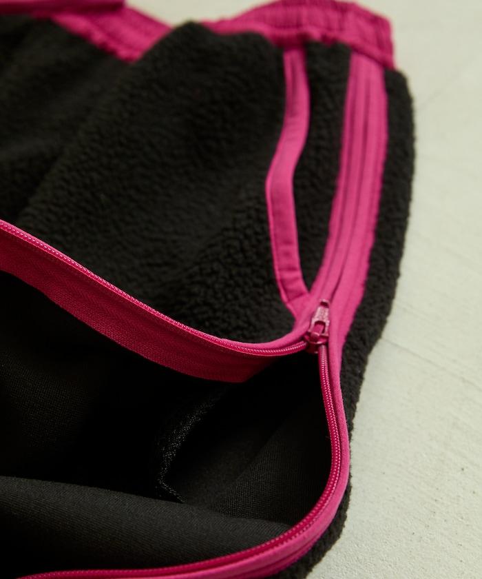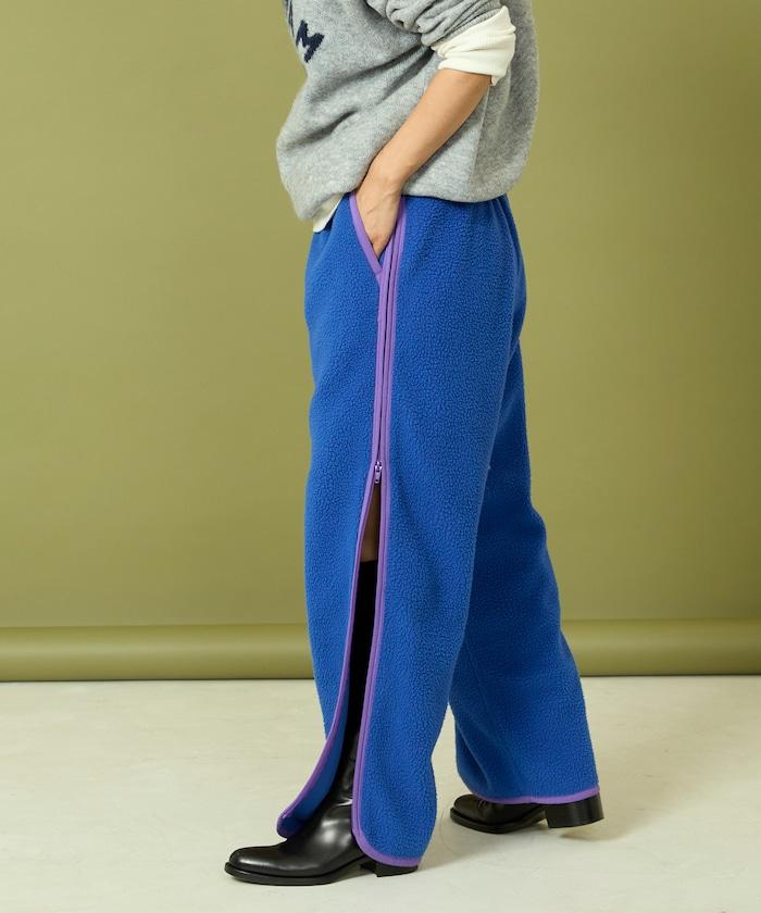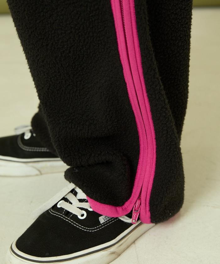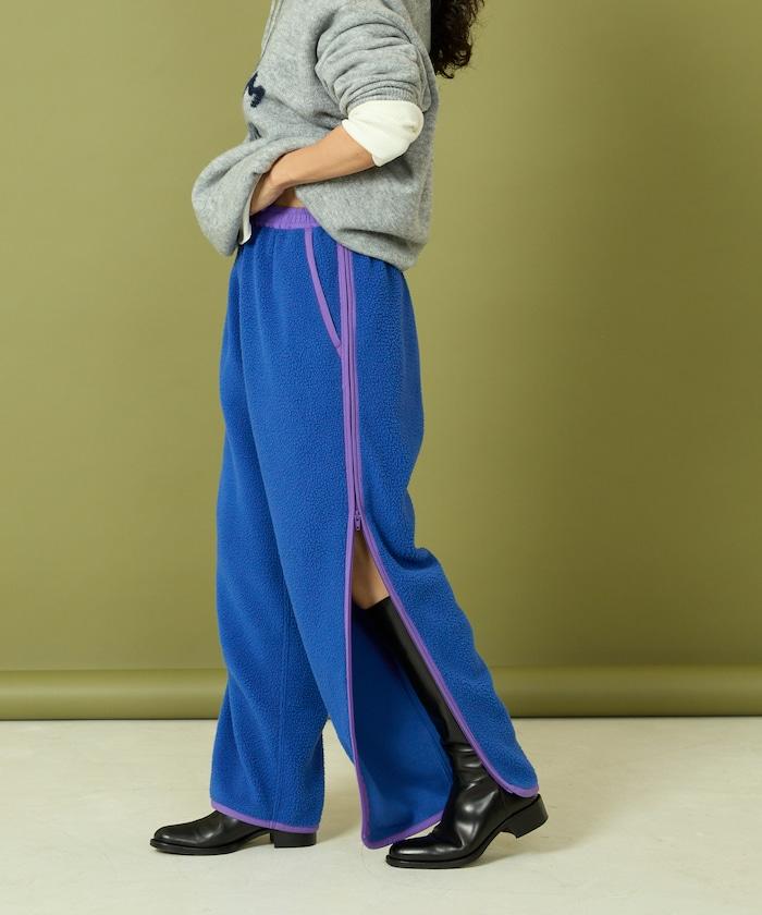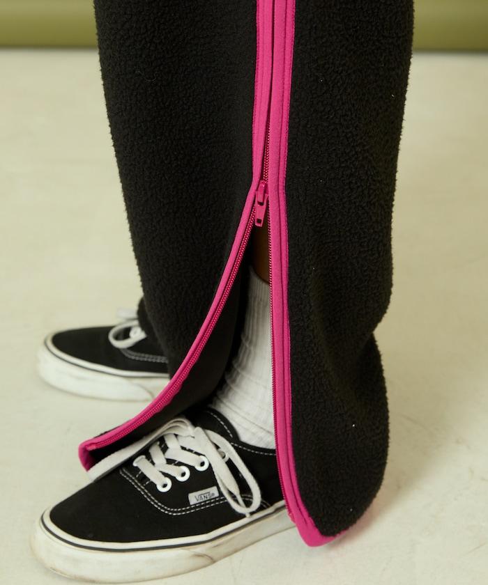 這款抓絨長褲的設計參考了戶外抓絨的細節,從兩側下襬到腰部都可以用拉鍊開合。