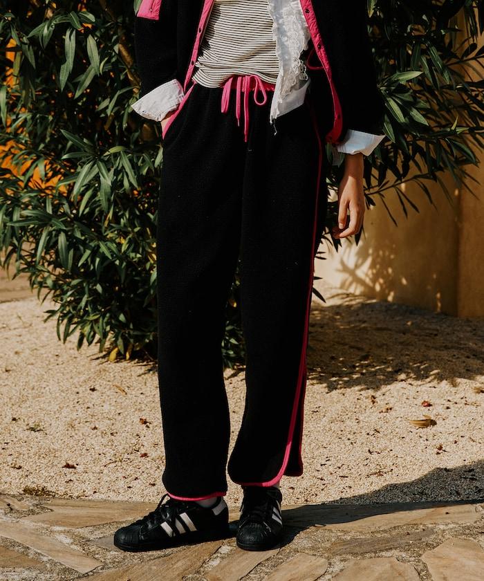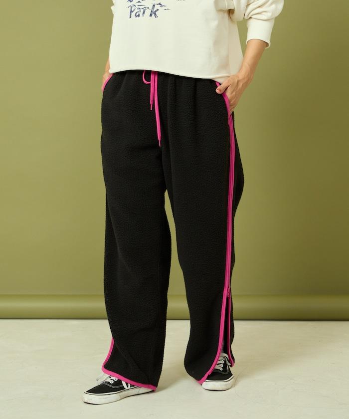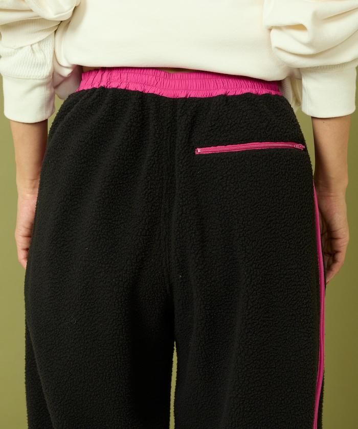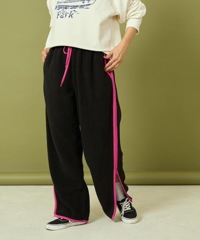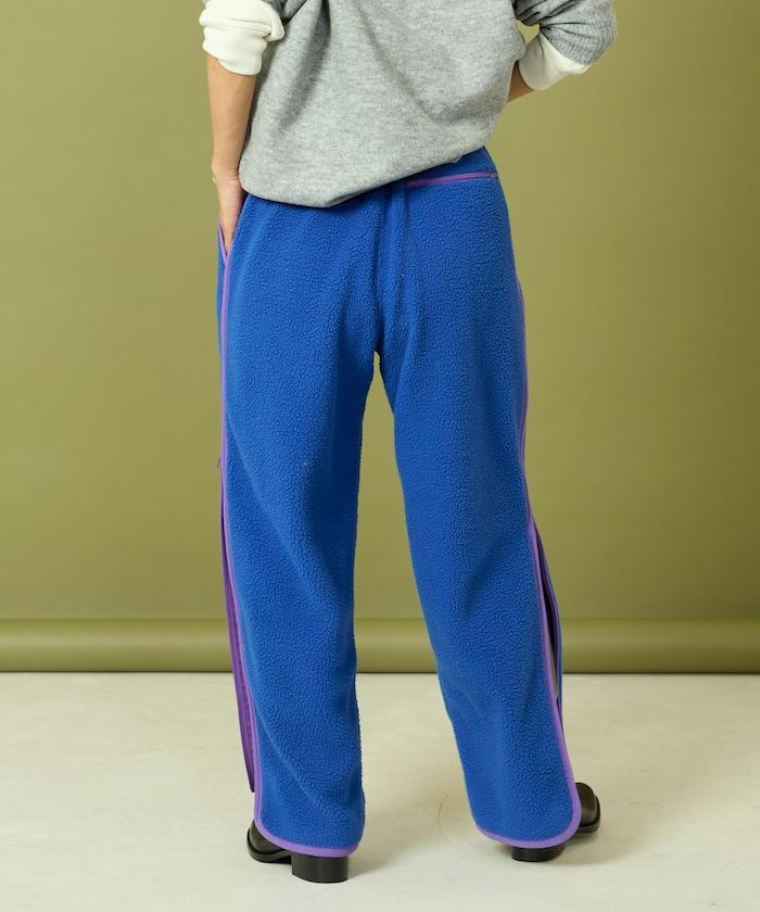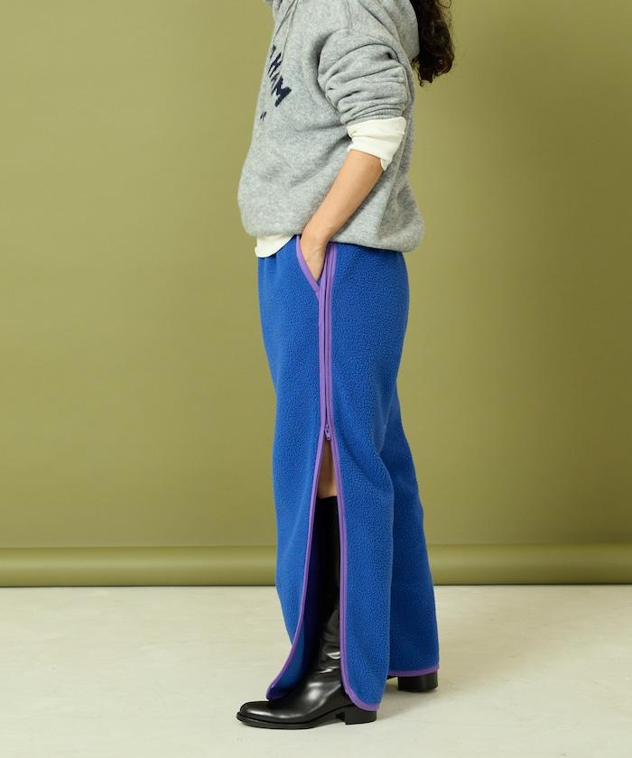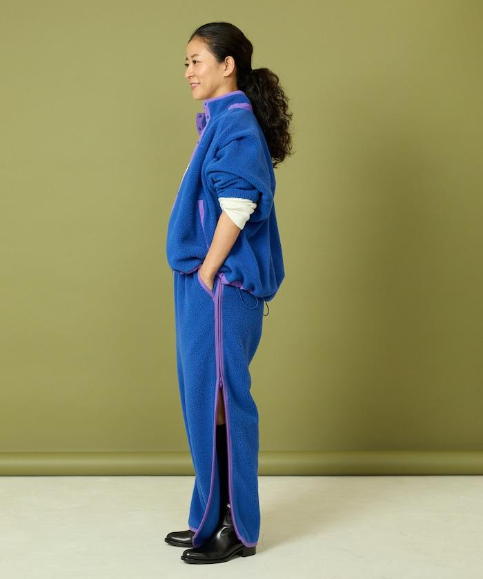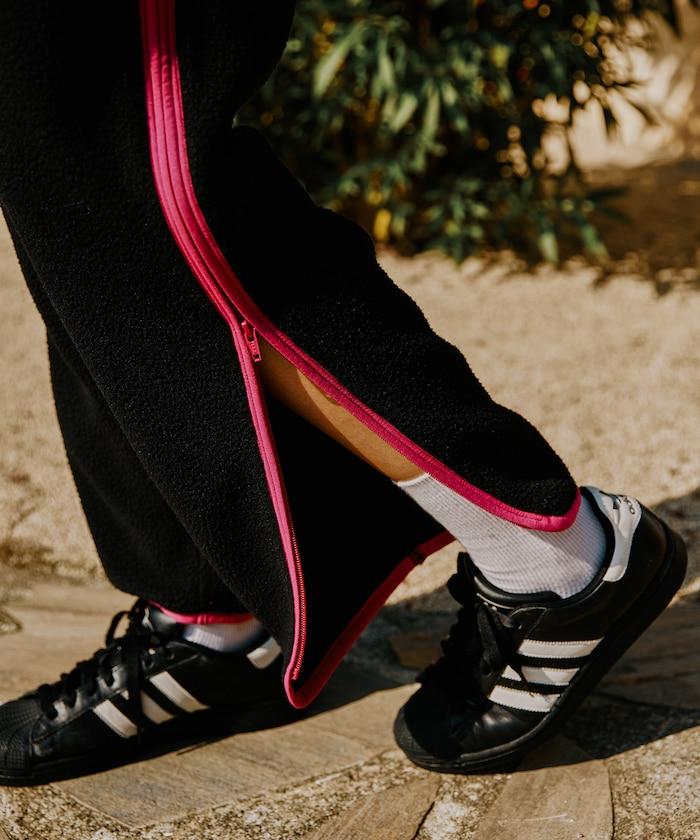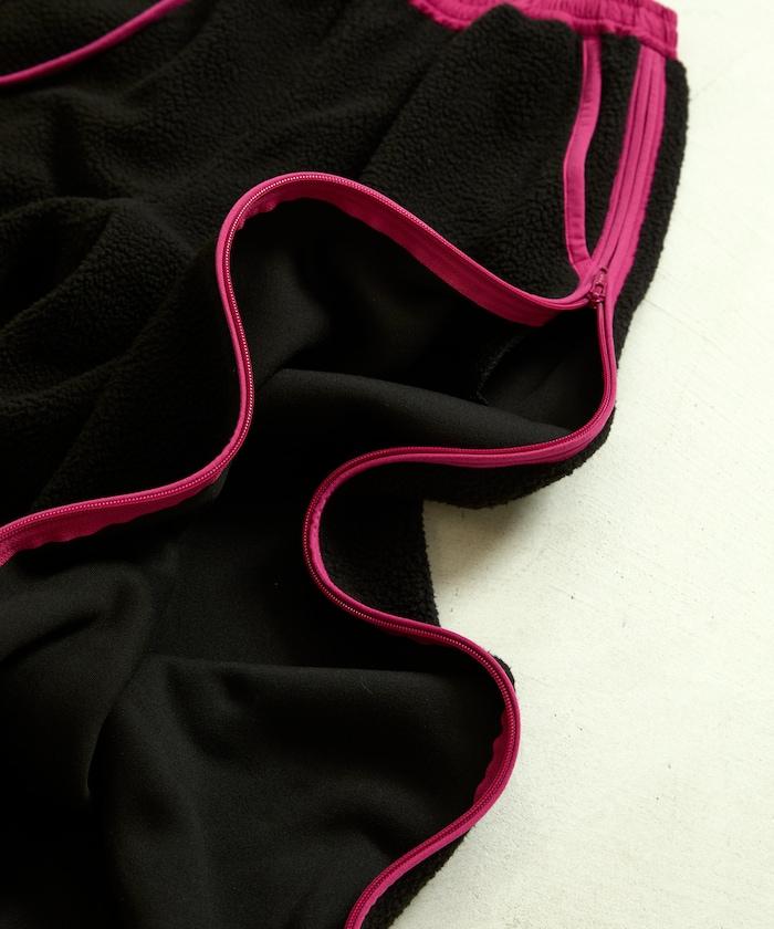 這款抓絨長褲的設計參考了戶外抓絨的細節,從兩側下襬到腰部都可以用拉鍊開合。