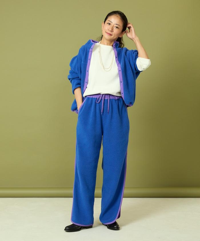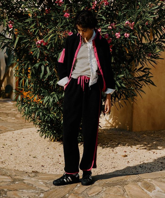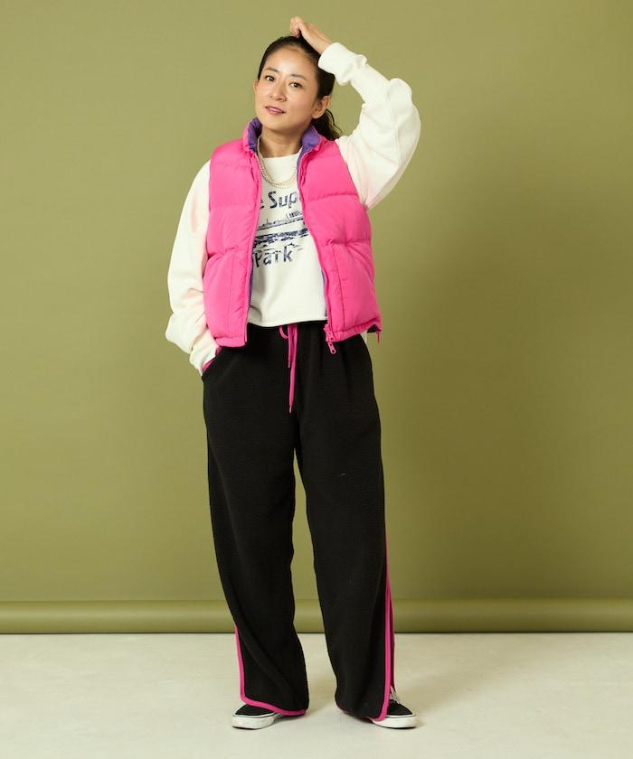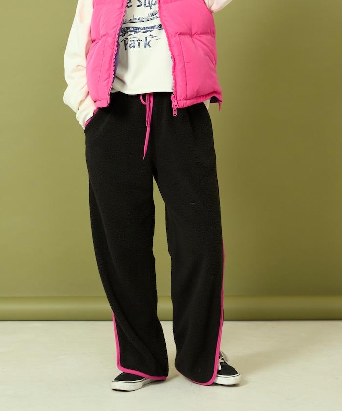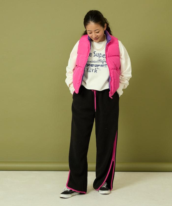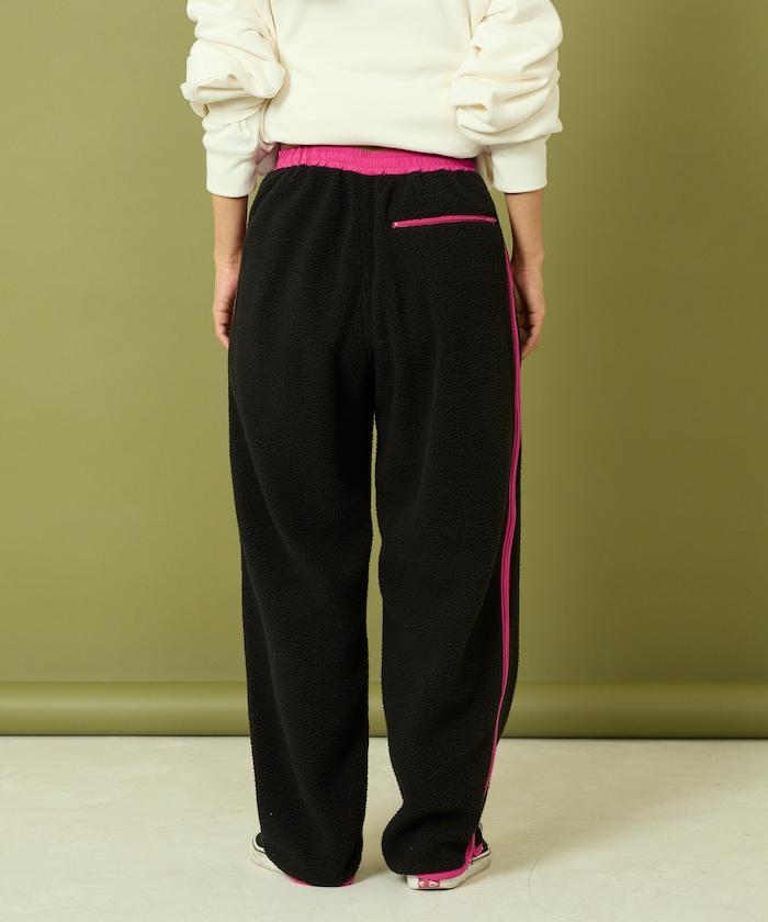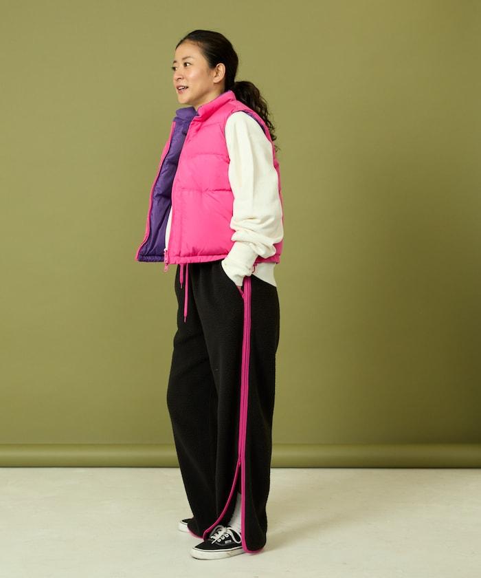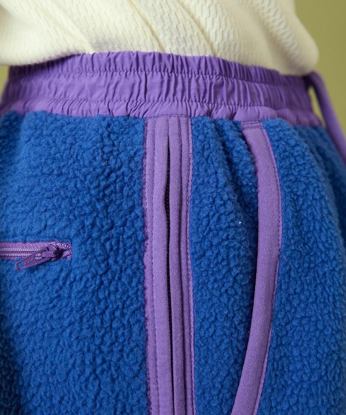 這款抓絨長褲的設計參考了戶外抓絨的細節,從兩側下襬到腰部都可以用拉鍊開合。