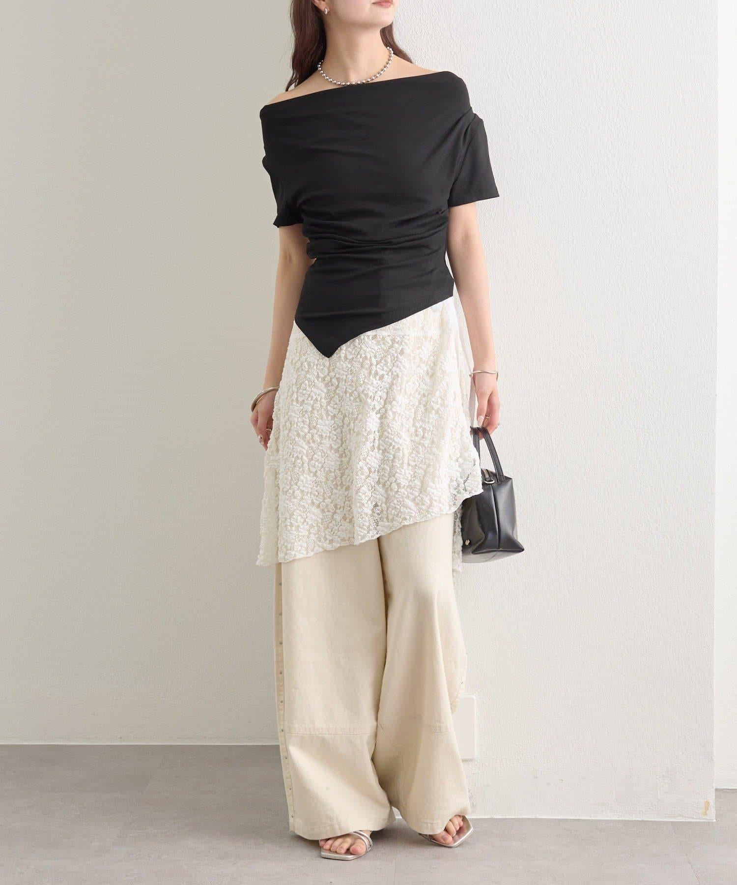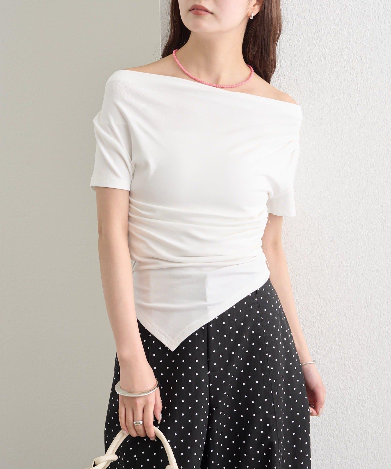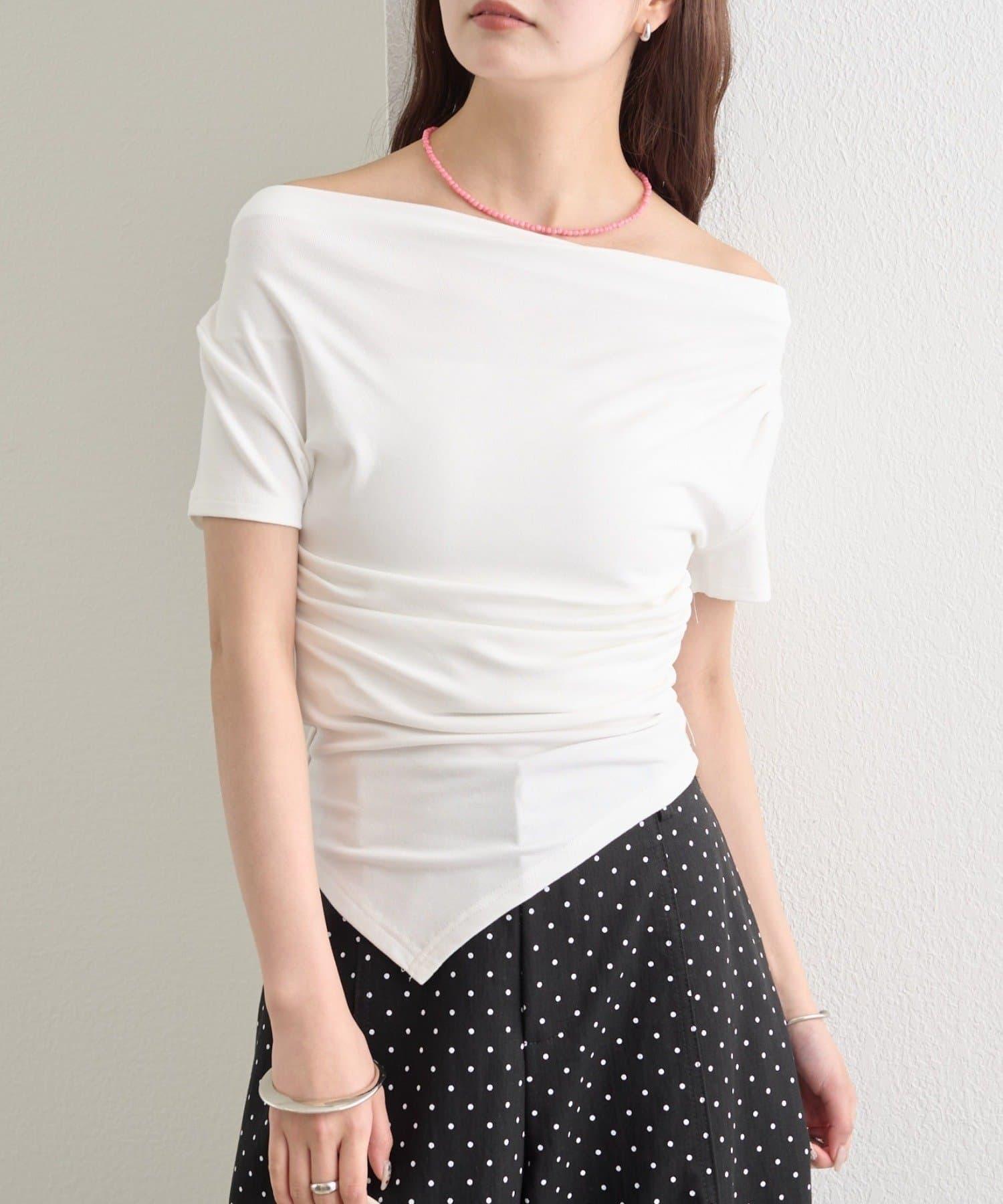 側邊的褶皺設計營造出立體效果,只需穿上這件 T 恤,就能給人一種時尚的感覺。