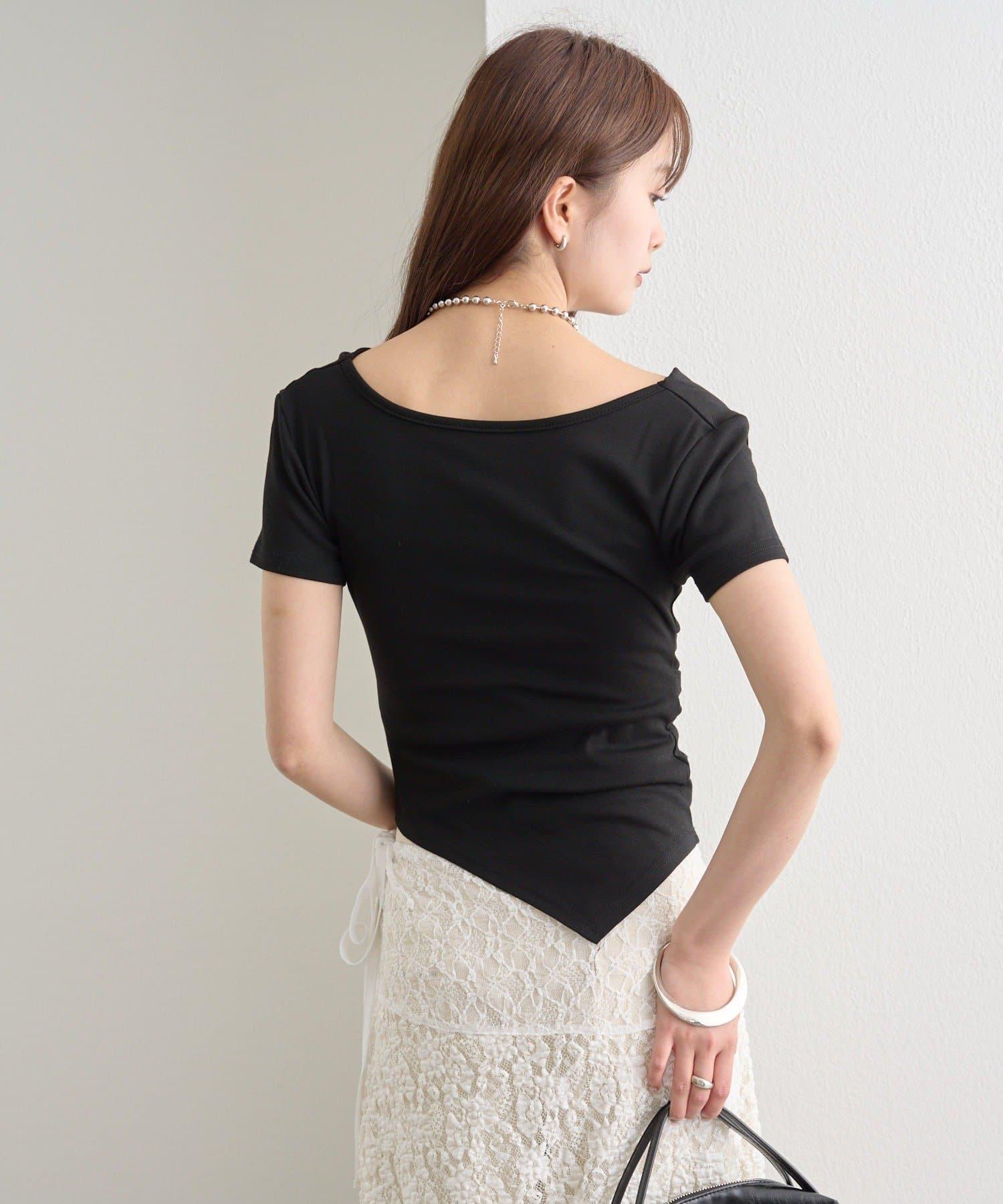 側褶扭結設計 彈力面料 T恤
