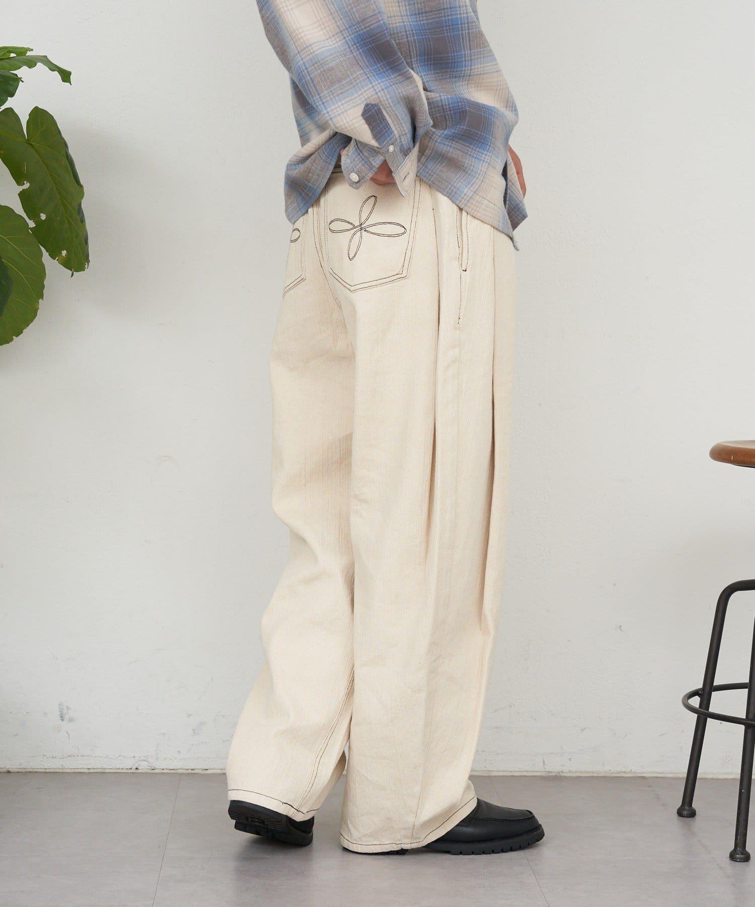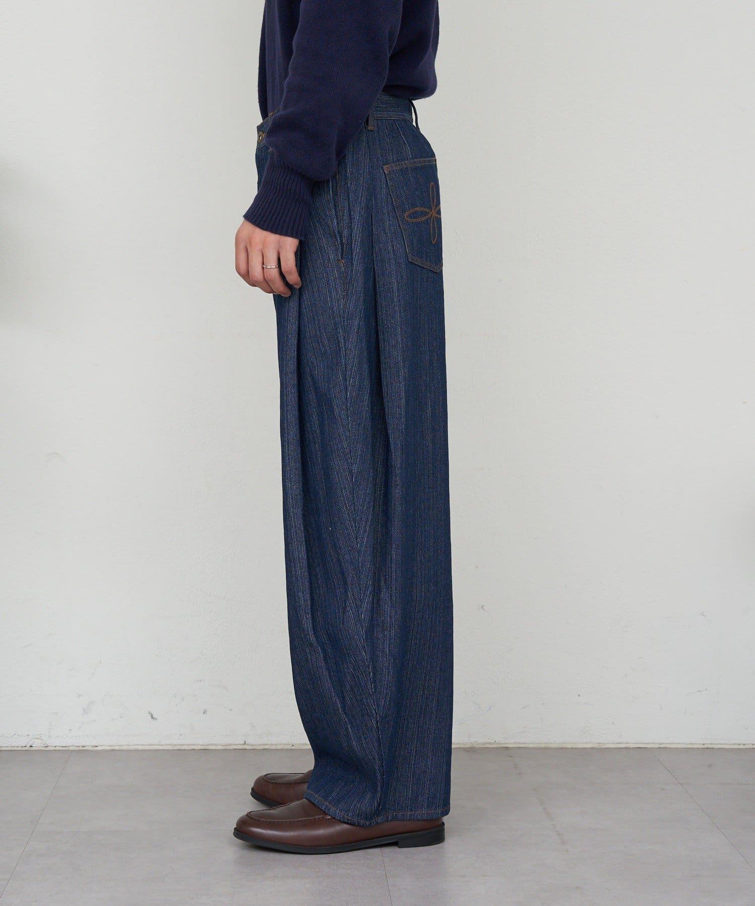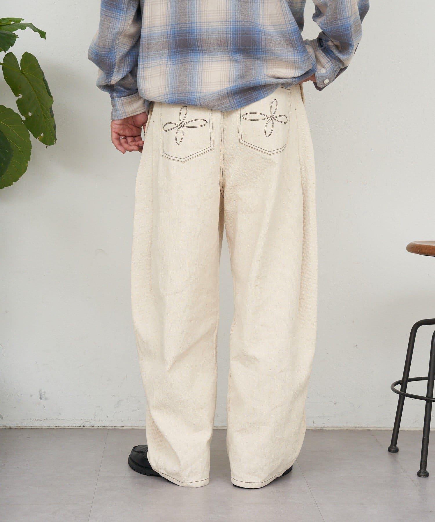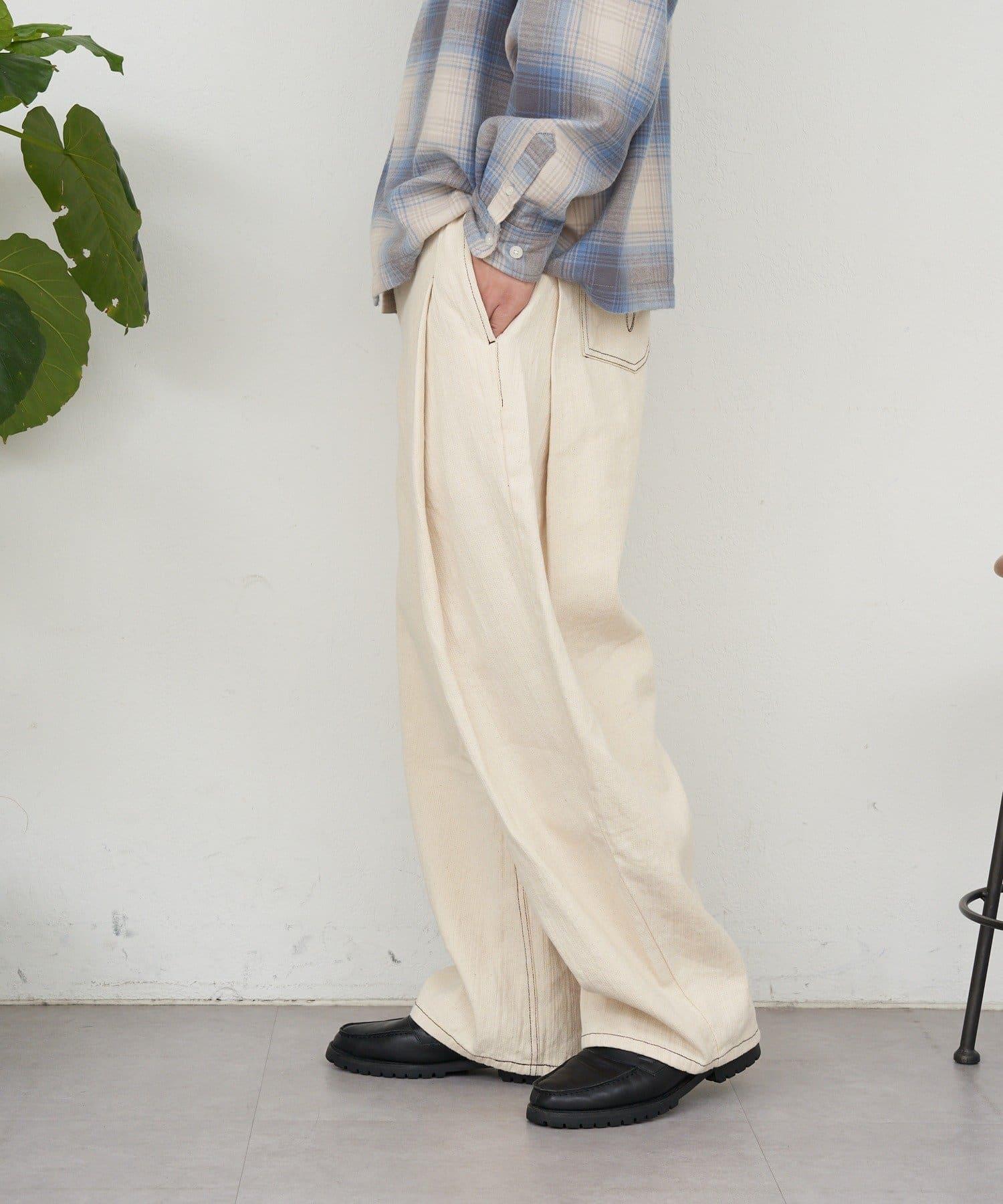 棉質斜紋軟呢長褲,側邊褶襉帶來立體效果。