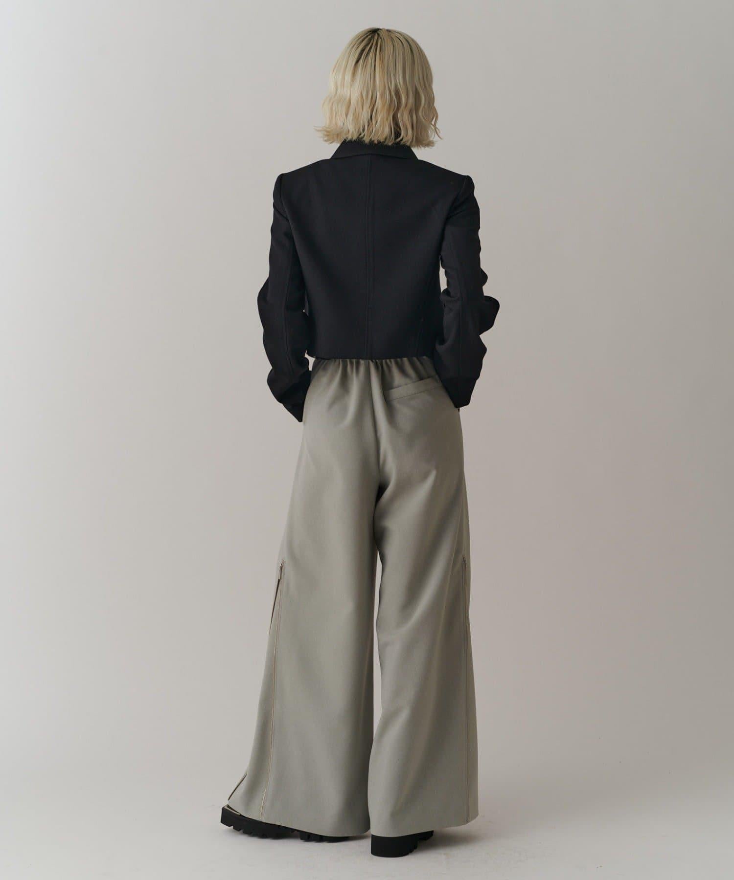 褲子側面的拉鍊搭配簡單的上衣非常好看。