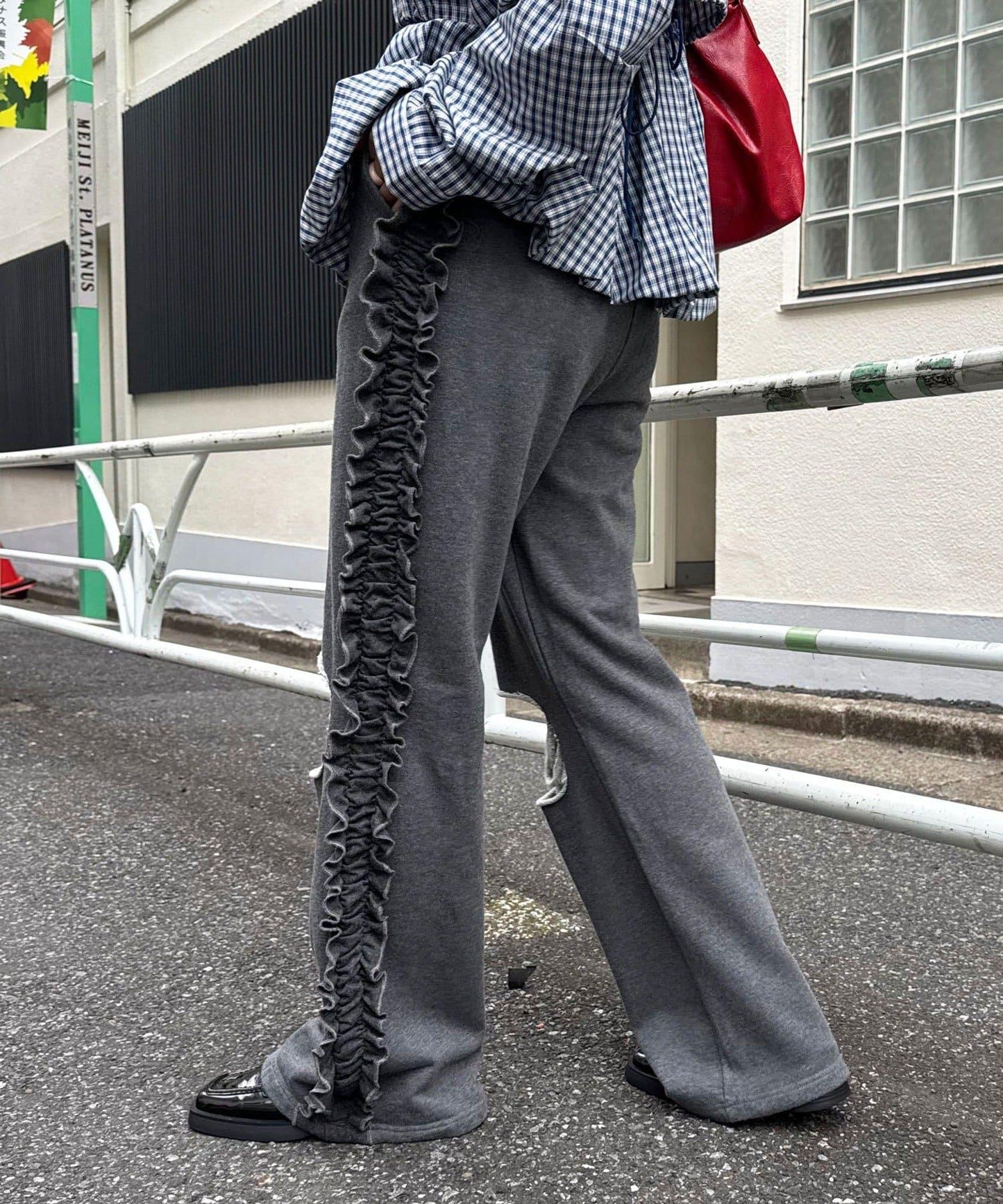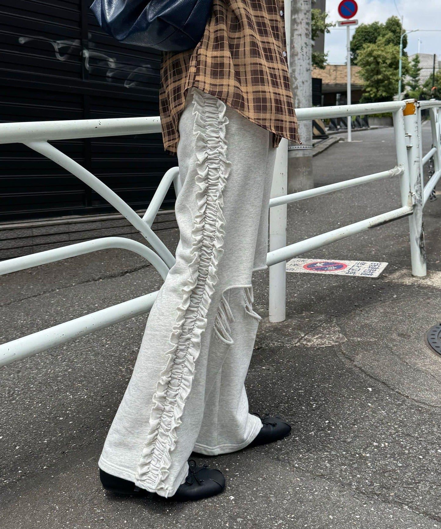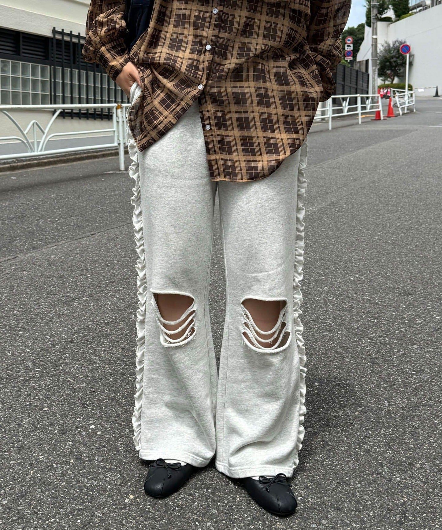 設計運動褲,褶邊帶來甜美感,破損處理帶來寬鬆感。