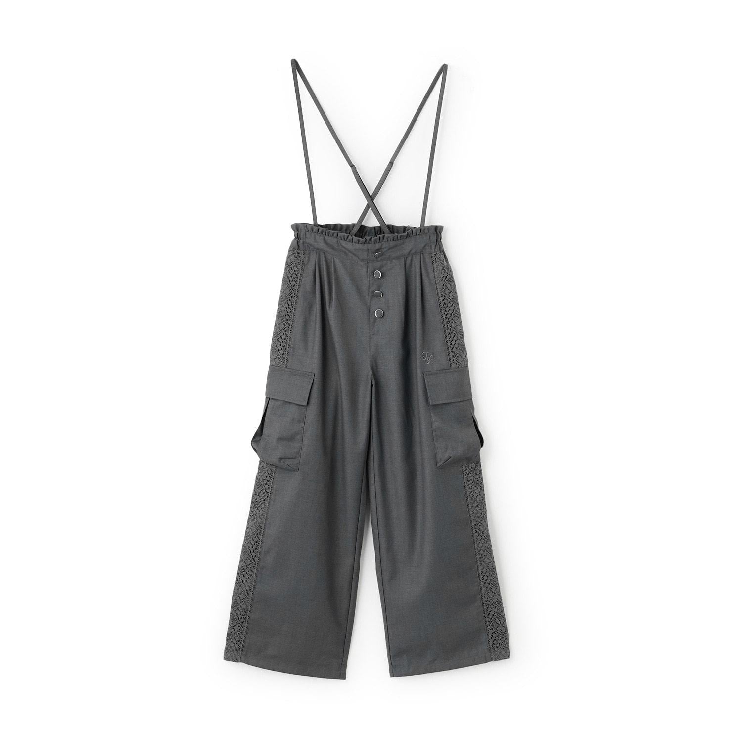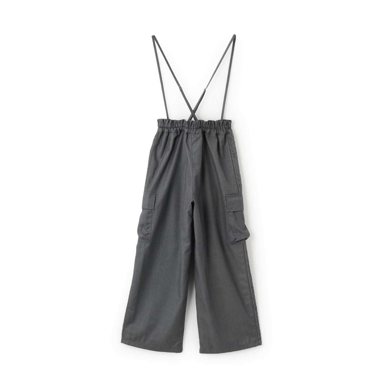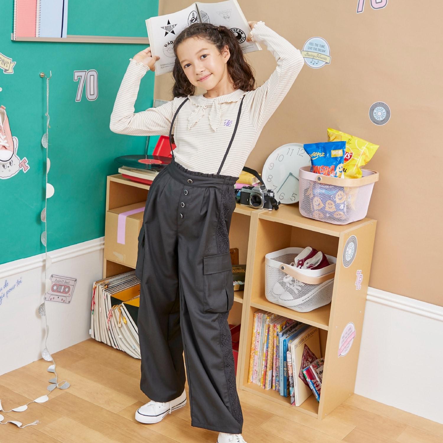 Salopettes 採用貨郎褲式設計,兩側的色調花邊增添了少女氣息。前部的裝飾紐扣和腰部的流蘇也增添了亮點。後腰處的鬆緊設計方便穿著,肩帶可拆卸,因此您可以根據自己的心情和搭配選擇兩種穿著方式。