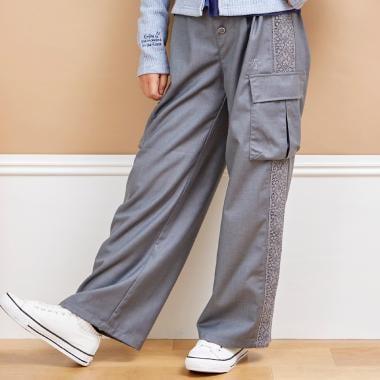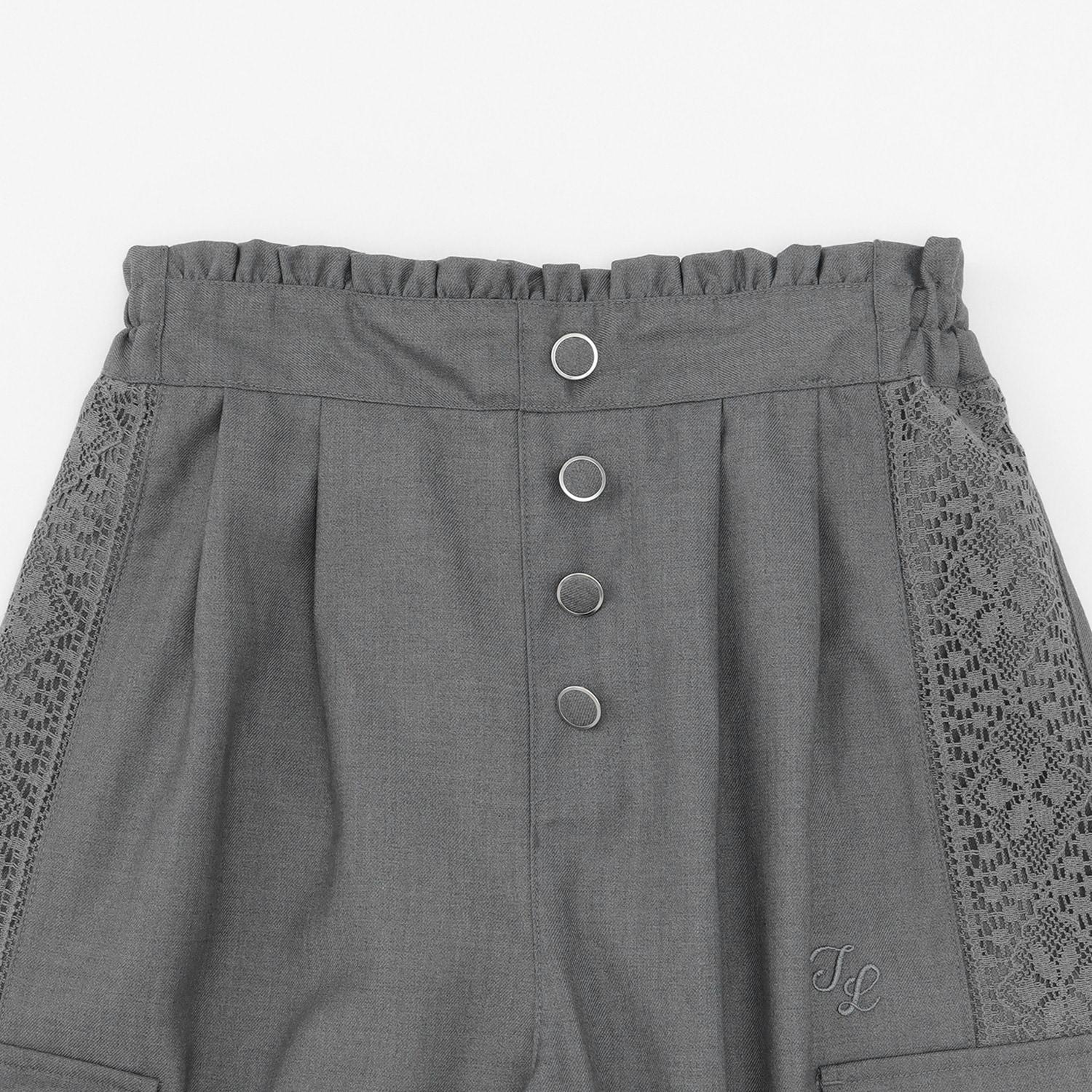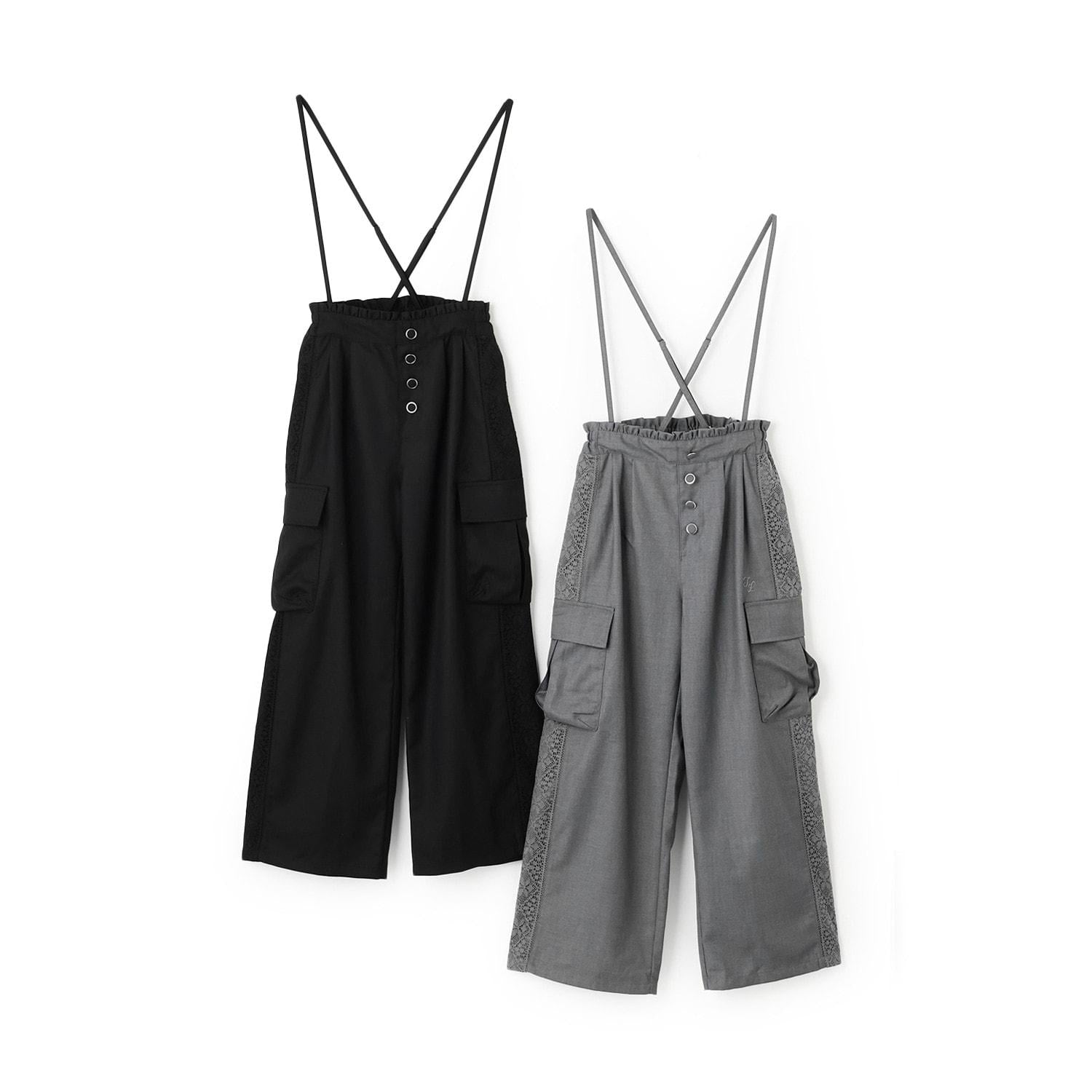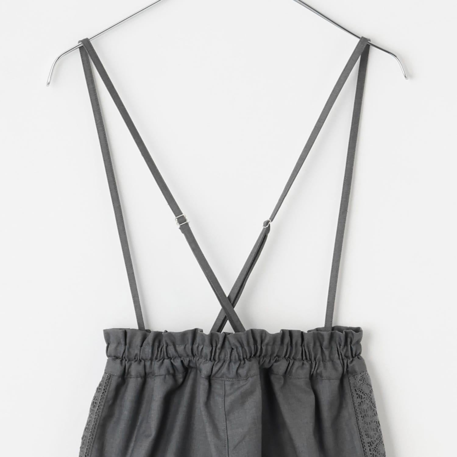 Salopettes 採用貨郎褲式設計,兩側的色調花邊增添了少女氣息。前部的裝飾紐扣和腰部的流蘇也增添了亮點。後腰處的鬆緊設計方便穿著,肩帶可拆卸,因此您可以根據自己的心情和搭配選擇兩種穿著方式。
