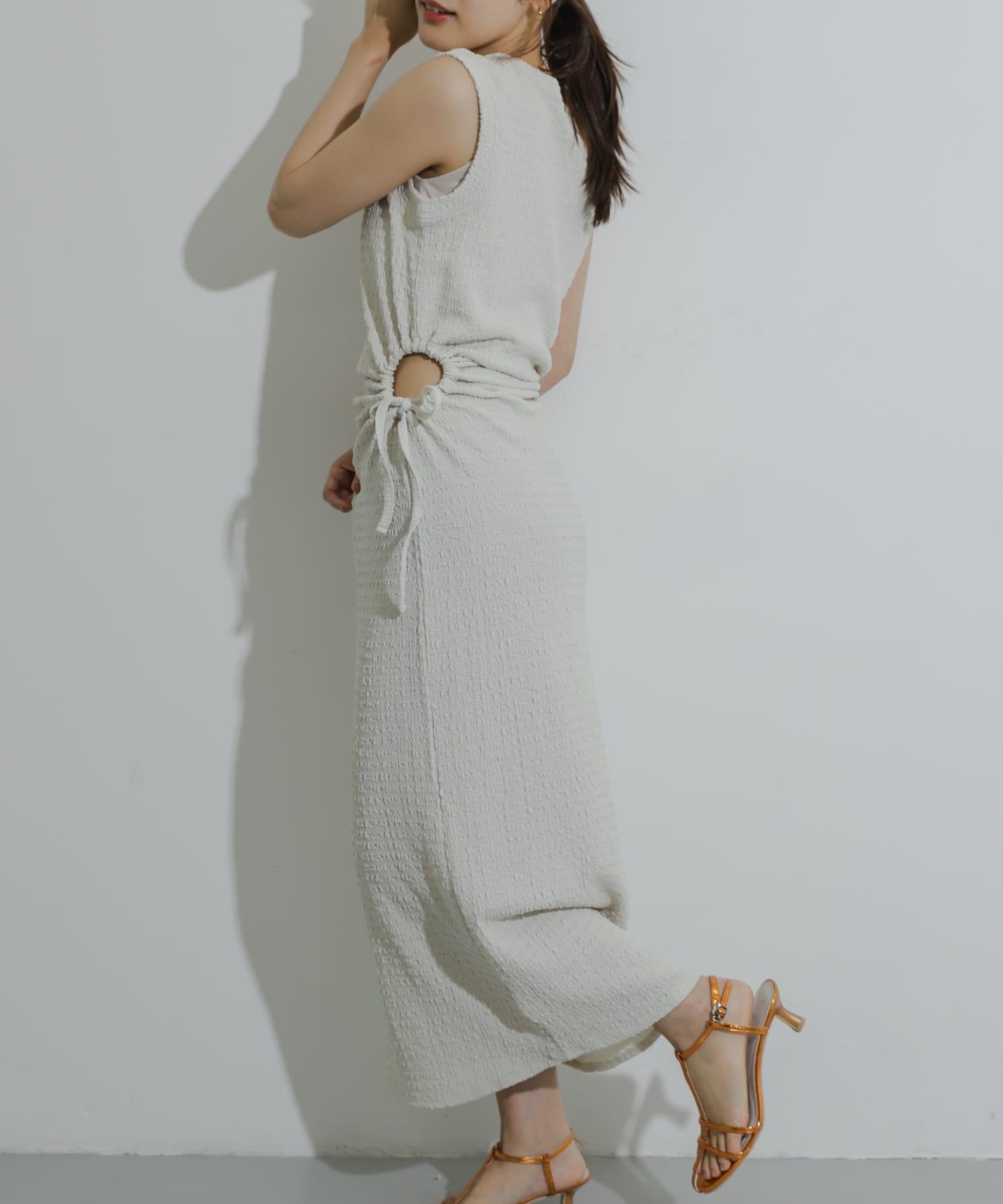 側邊開衩提花連衣裙