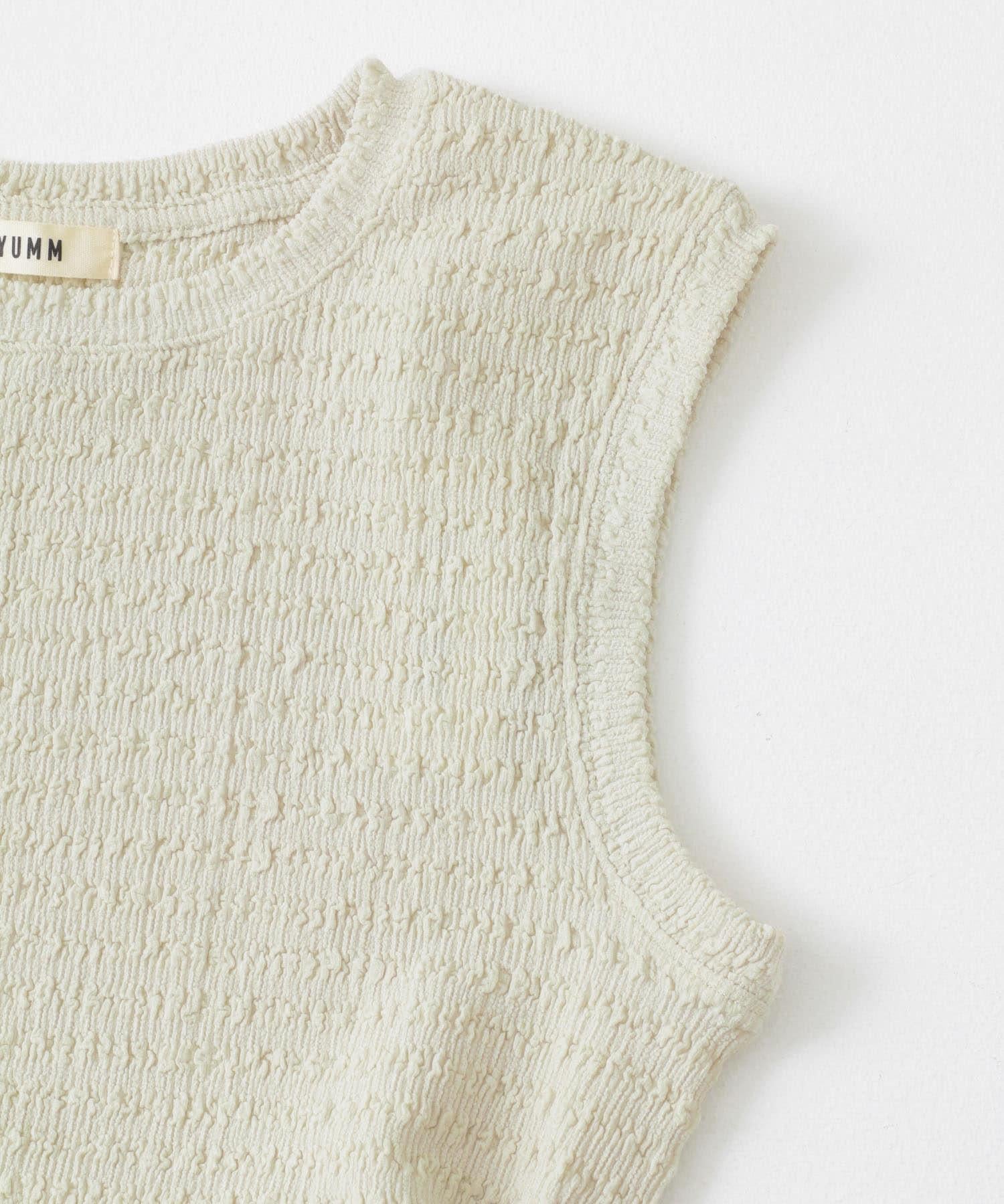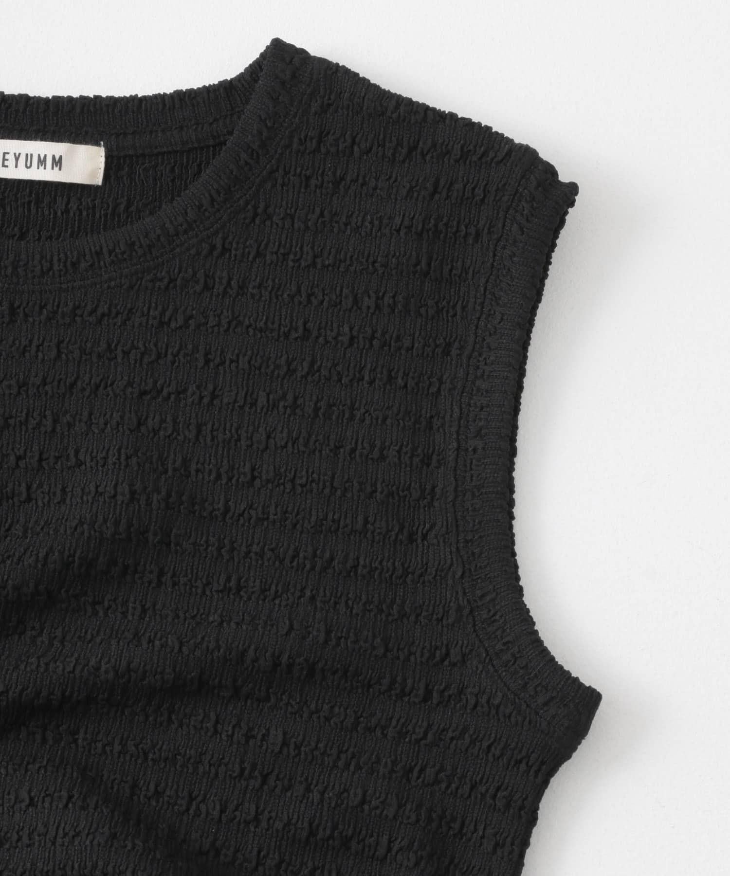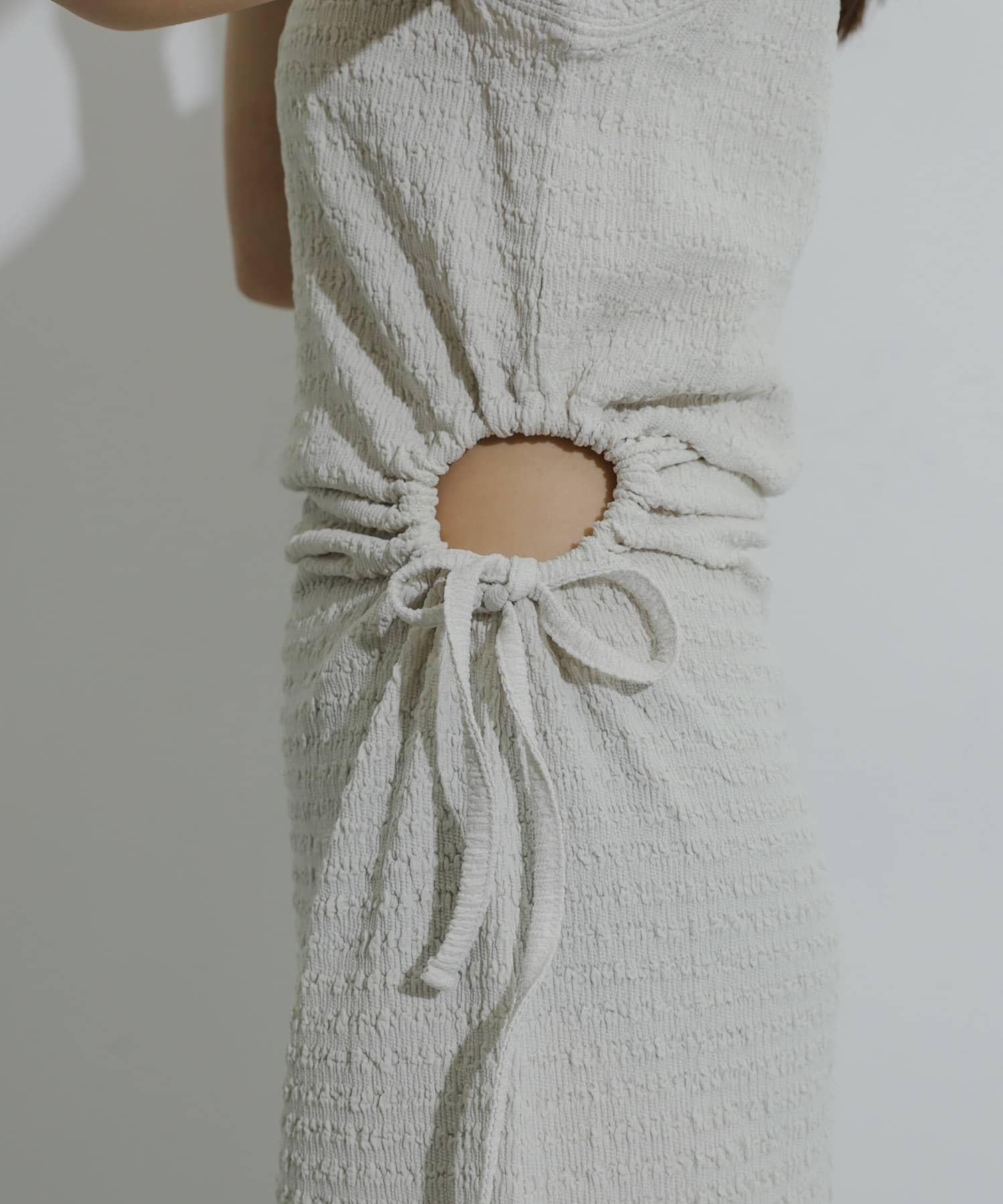 〇 提花剪裁和縫製的面料 〇 一件式的設計讓造型更加完美。