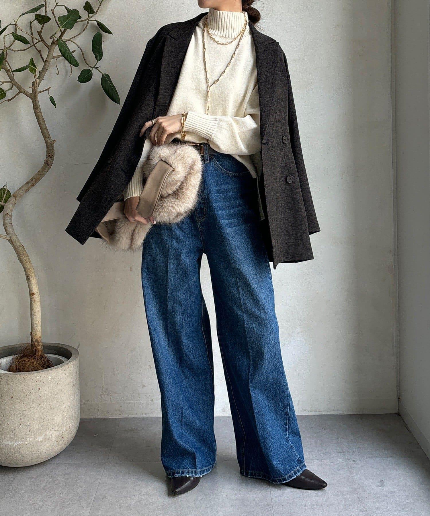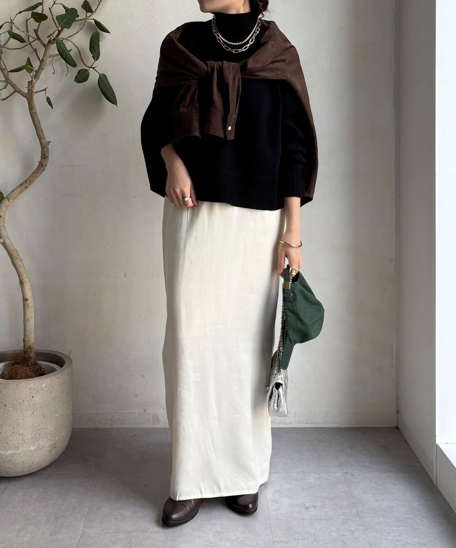 經過計算的長度和開衩位置使其看起來非常均衡,同時給人一種輕鬆的感覺。