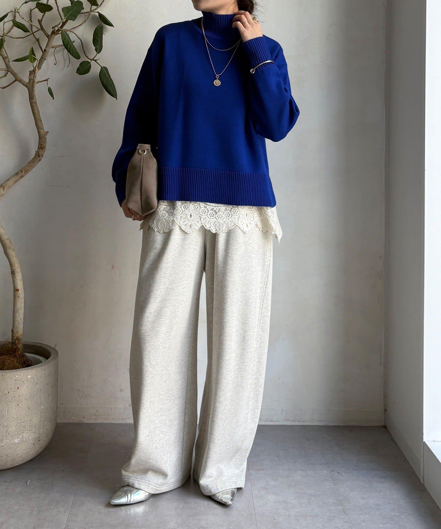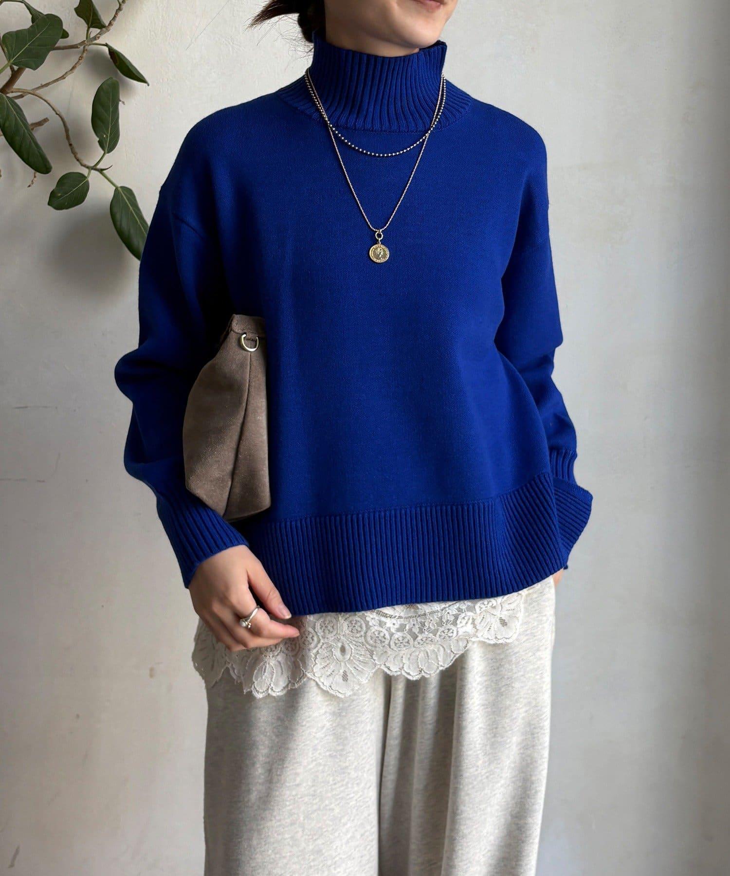 側開叉高領針織衫