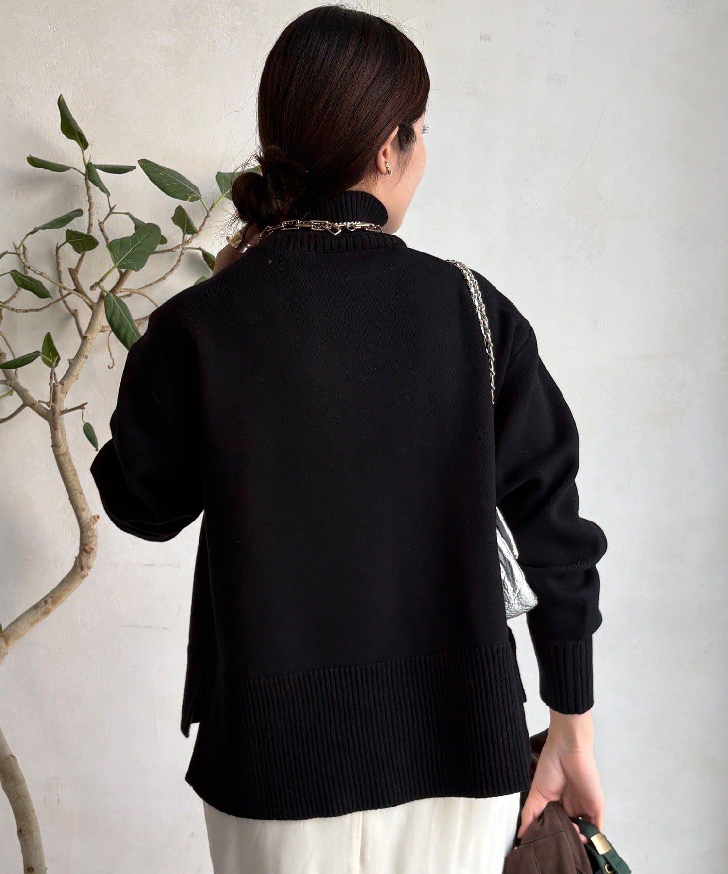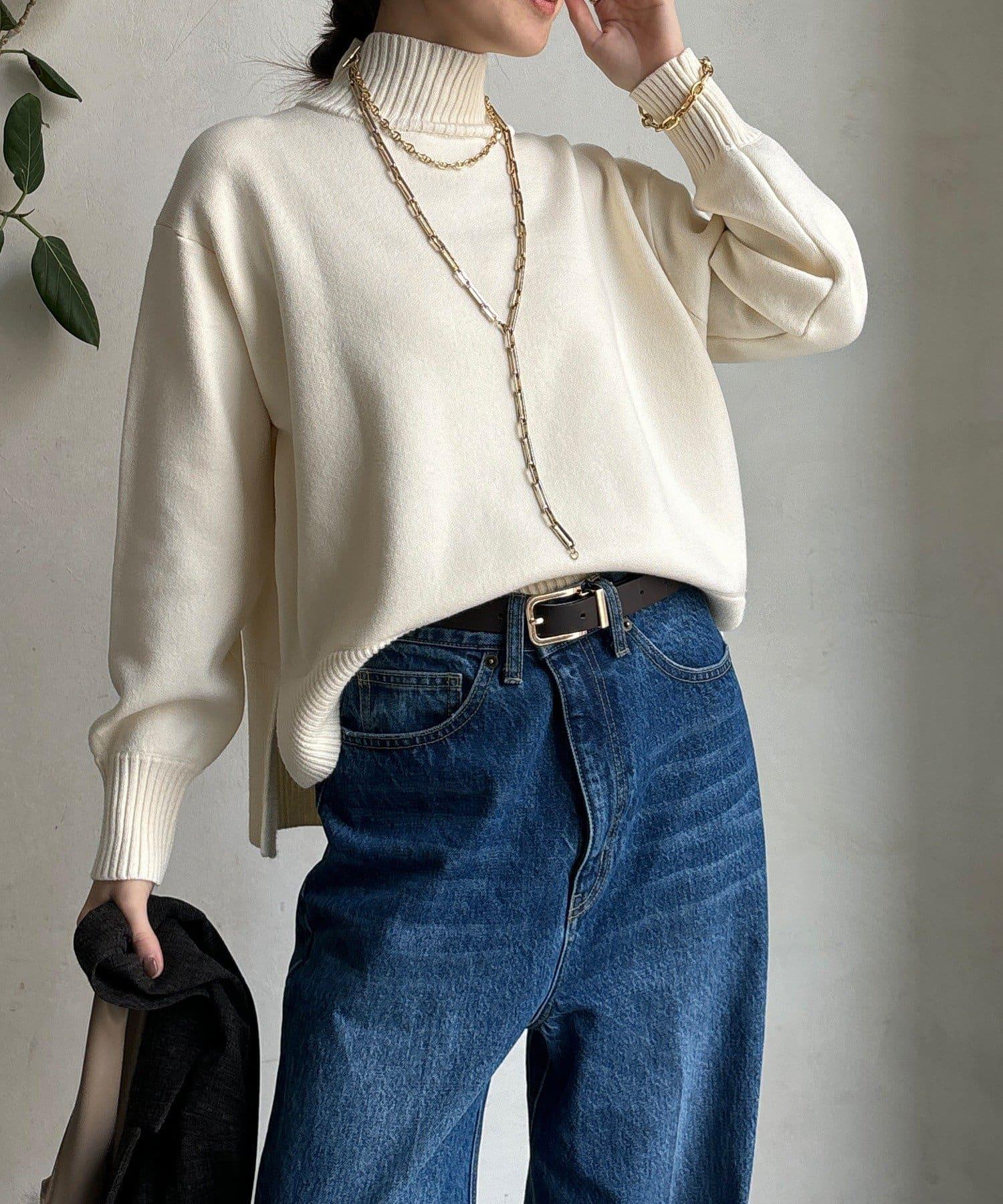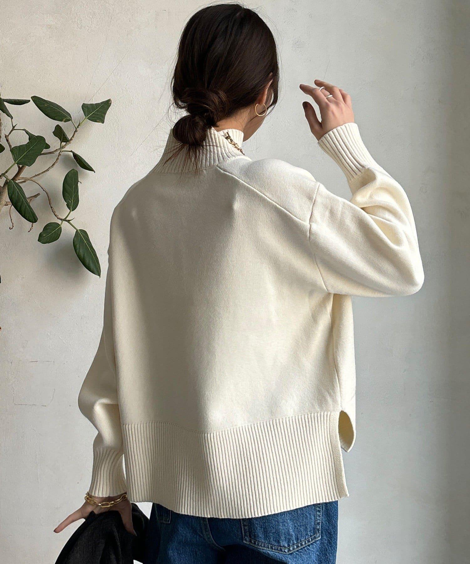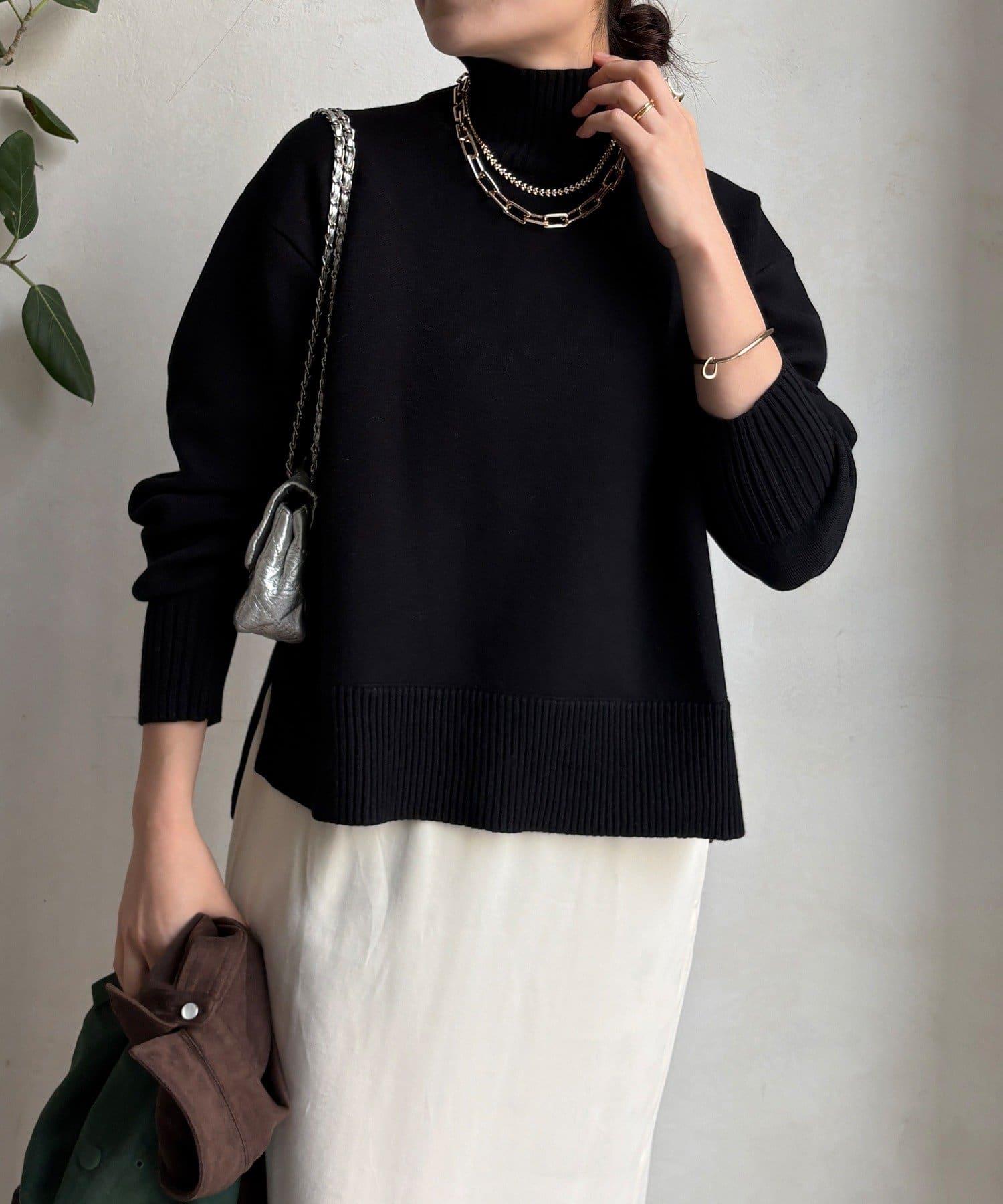 寬鬆剪裁的高領套頭衫,側面開衩。
