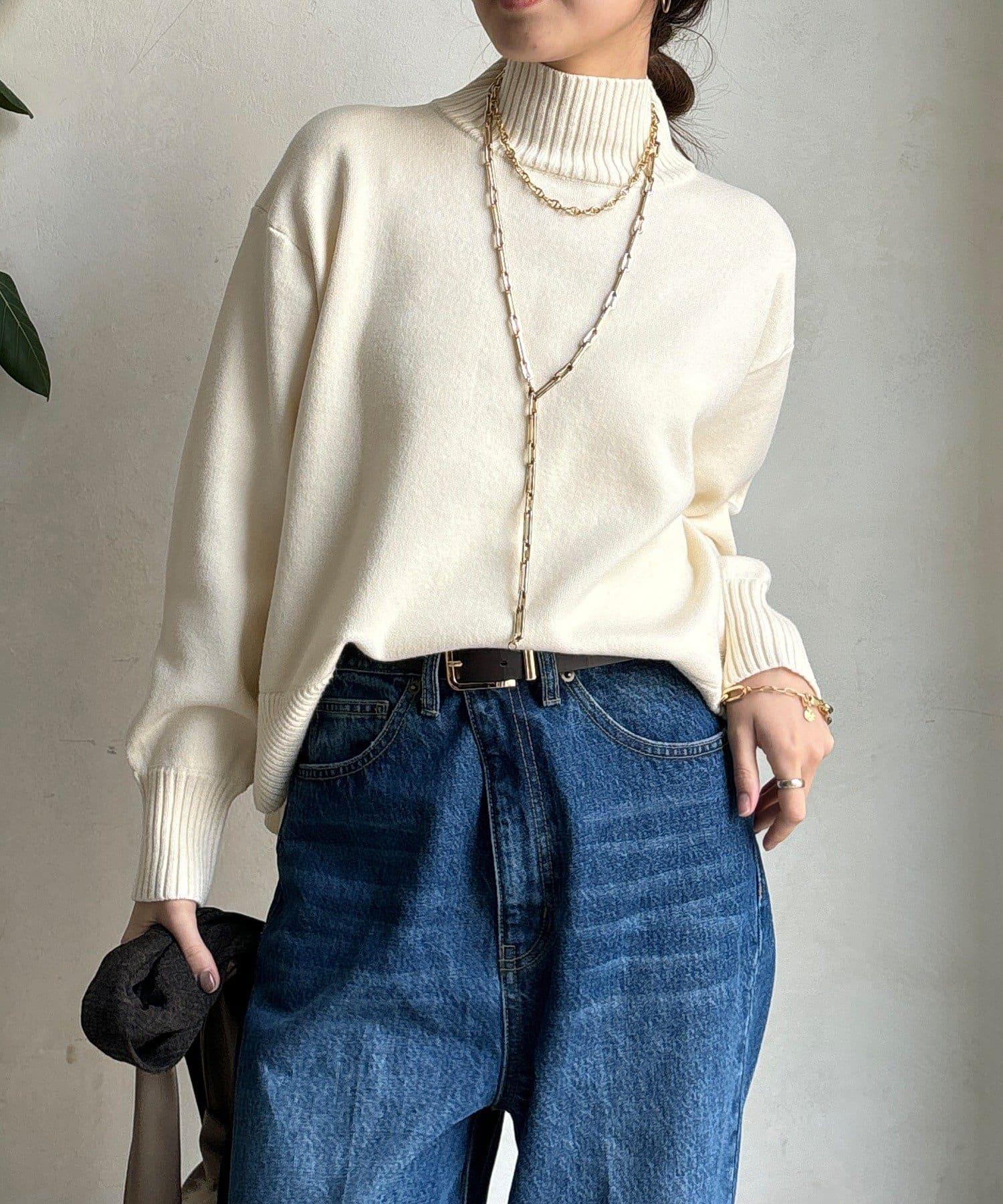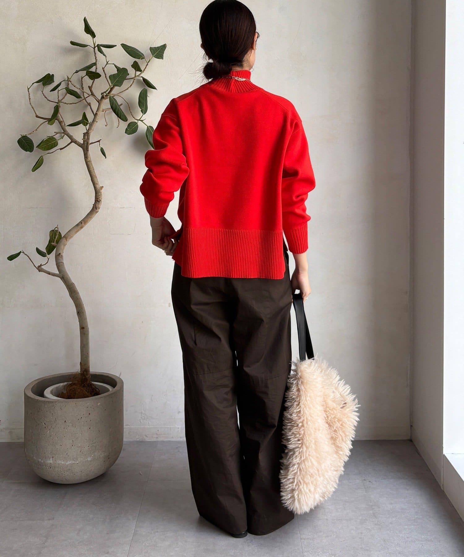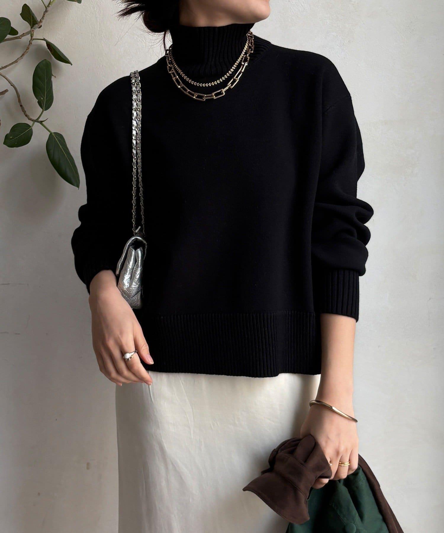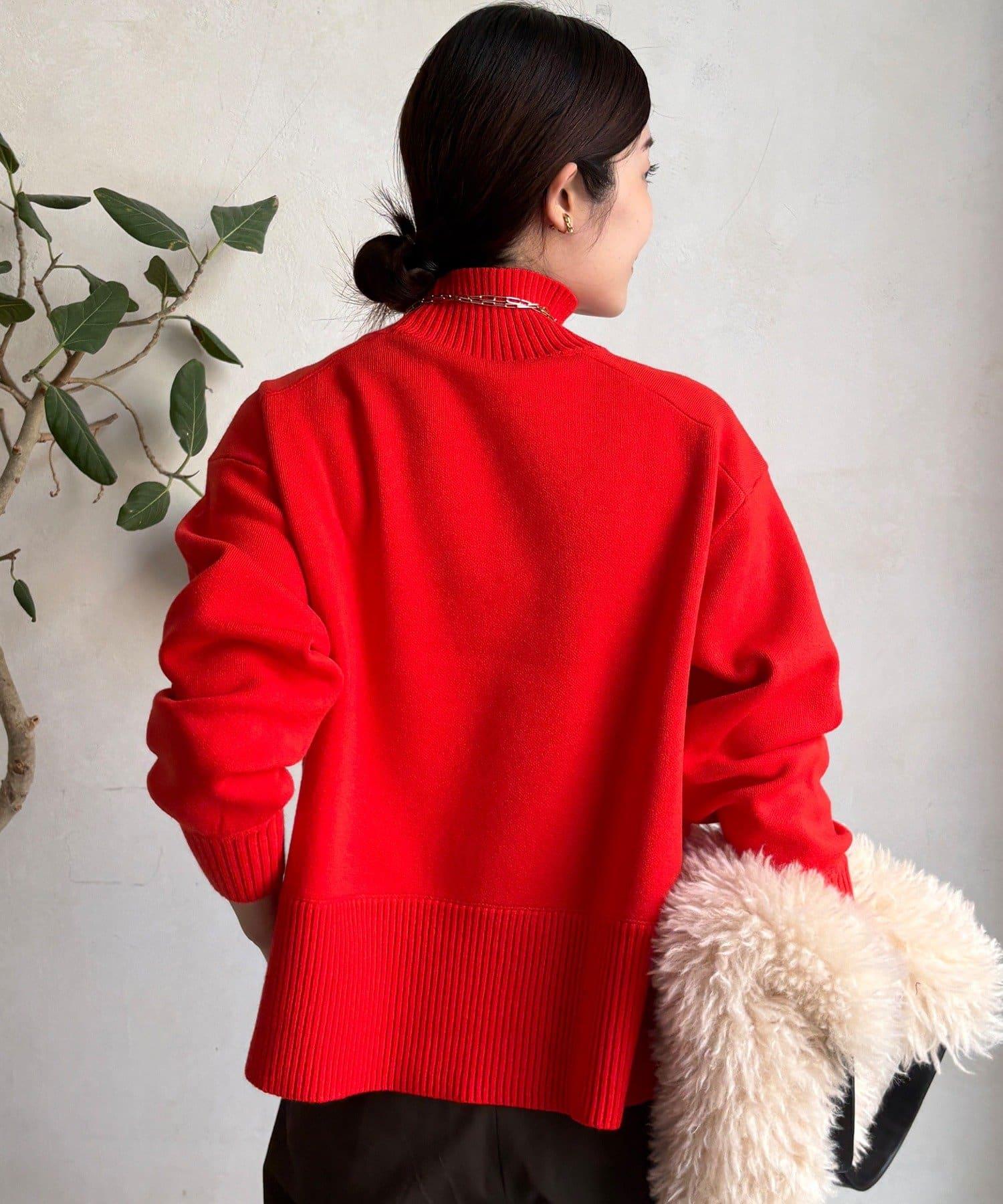 寬鬆剪裁的高領套頭衫,側面開衩。