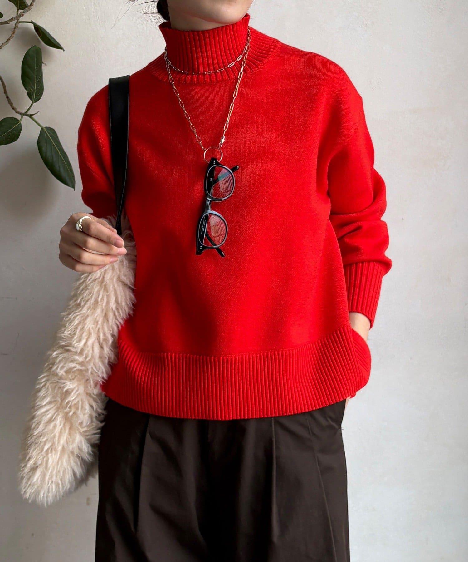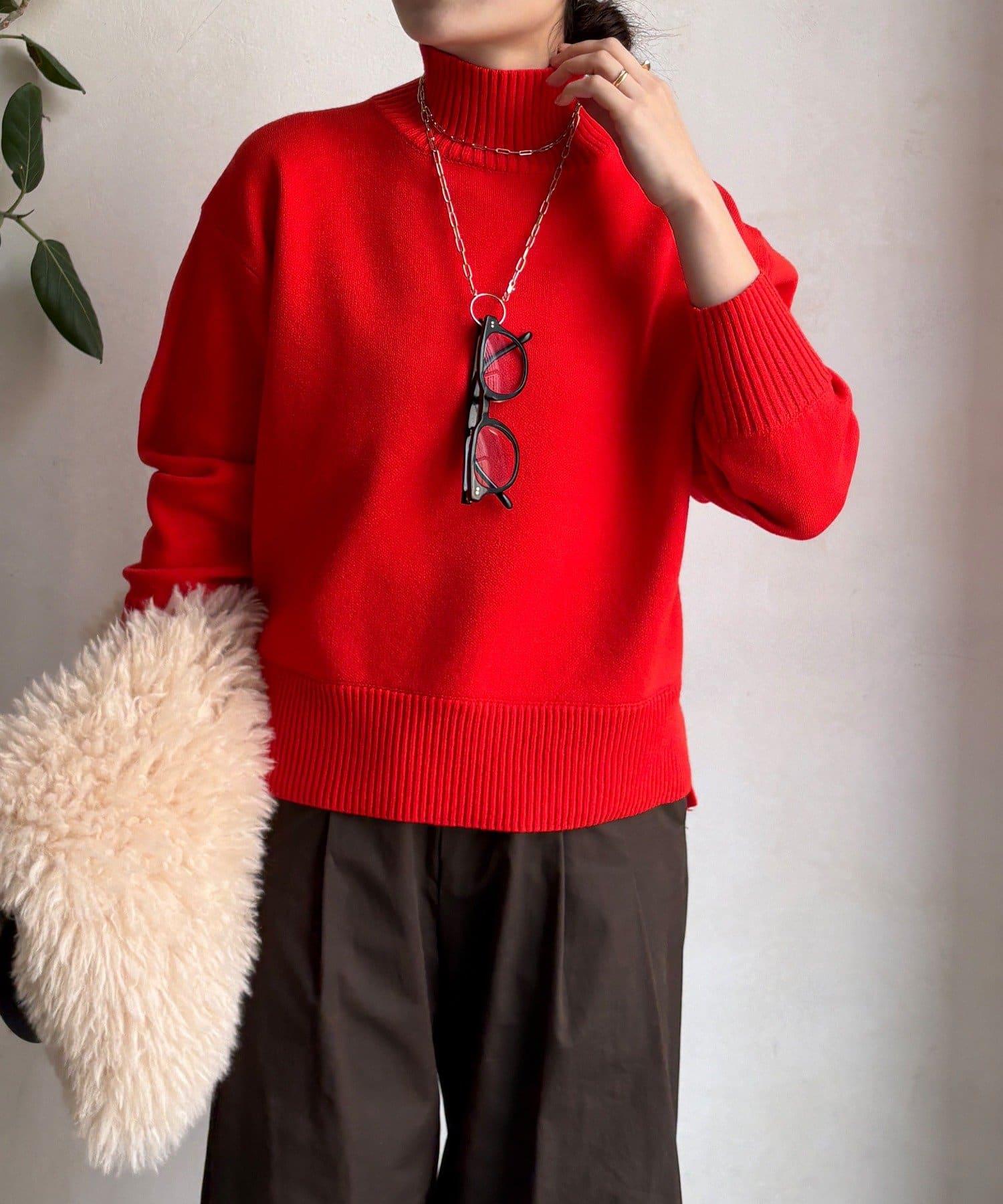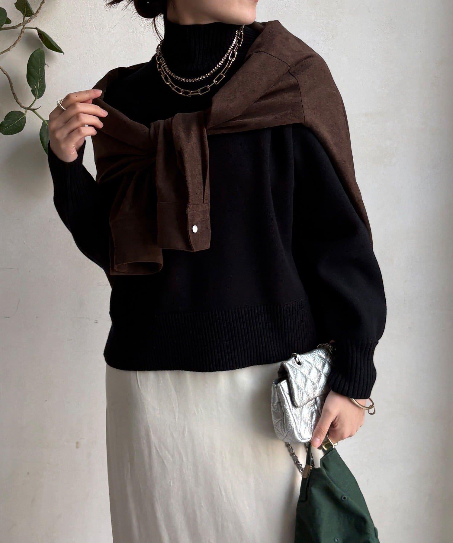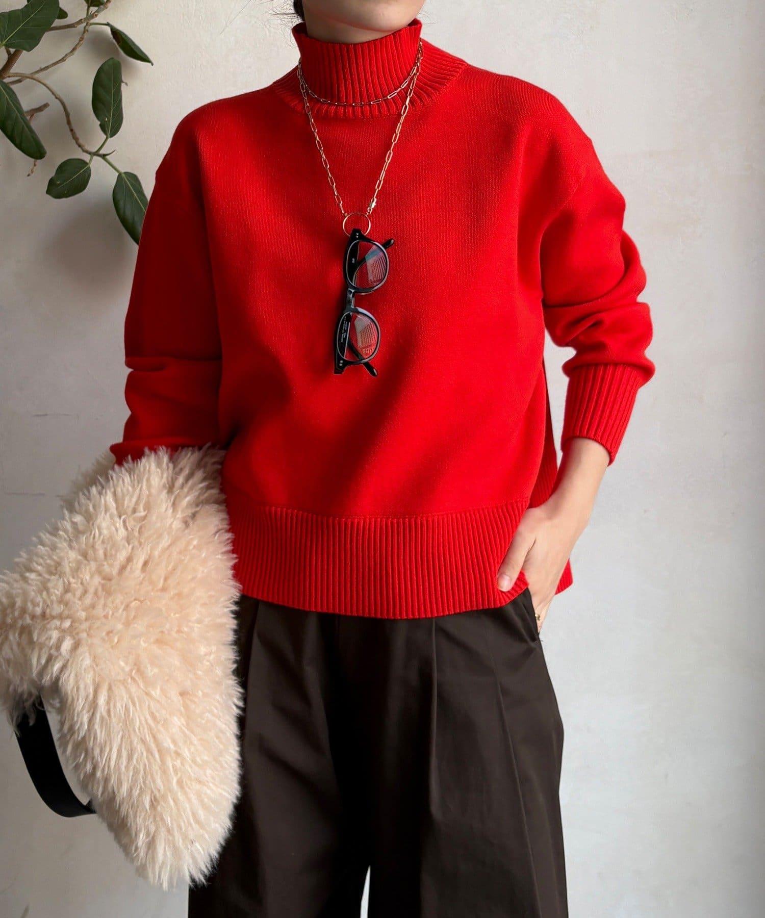 寬鬆剪裁的高領套頭衫,側面開衩。