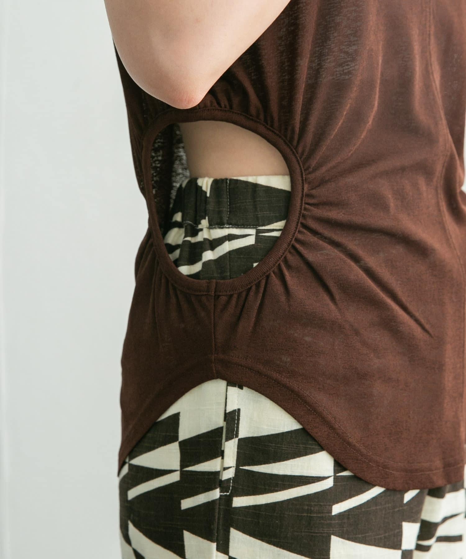 剪裁和縫製上的腰部開孔,巧妙地露出肌膚。恰到好處的清爽面料和圓形下襬也是其鮮明特點。它能為您的日常著裝帶來點睛之筆。