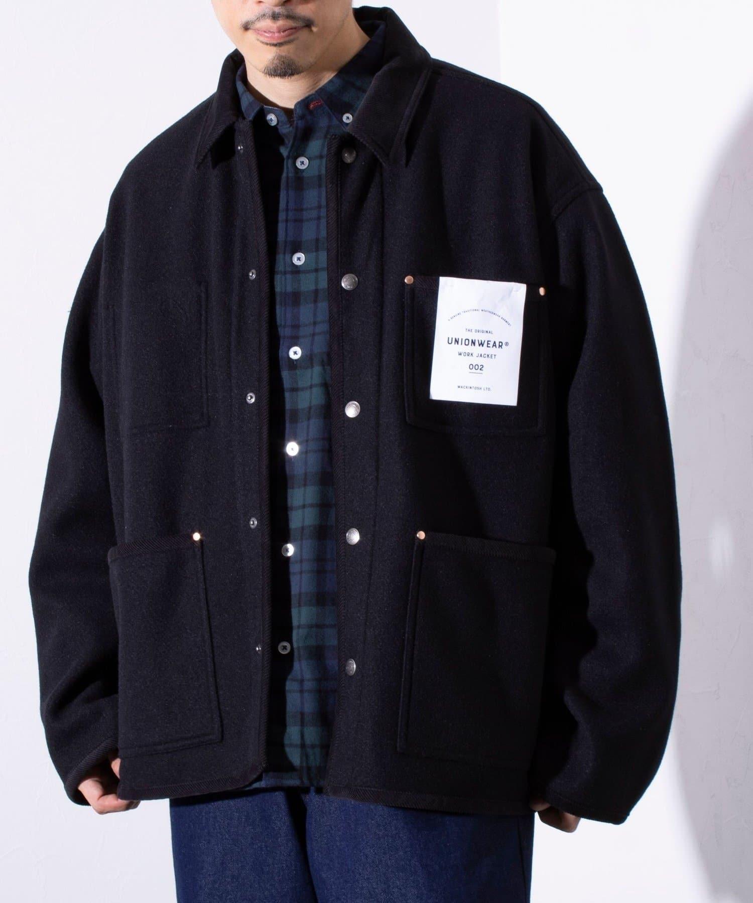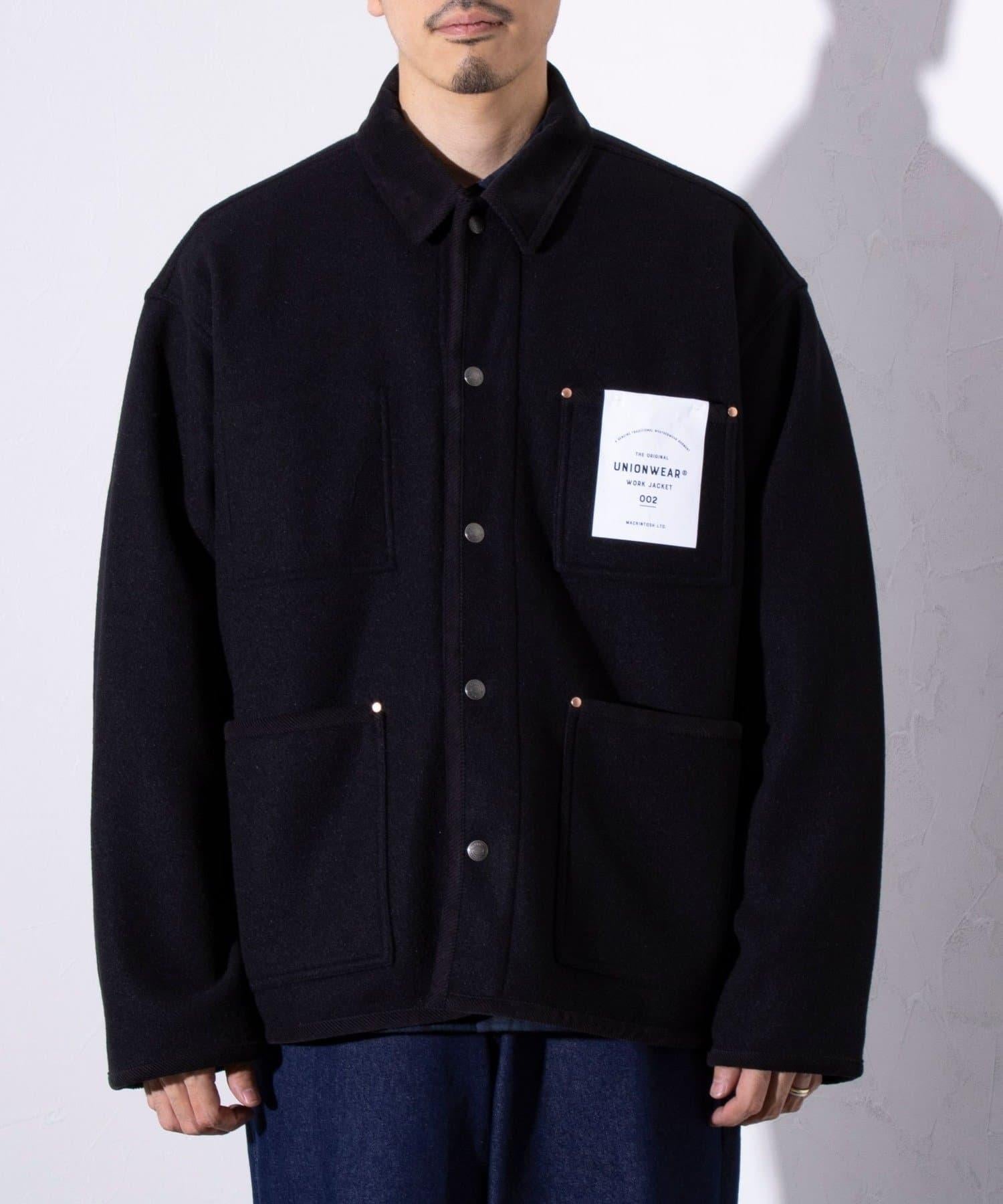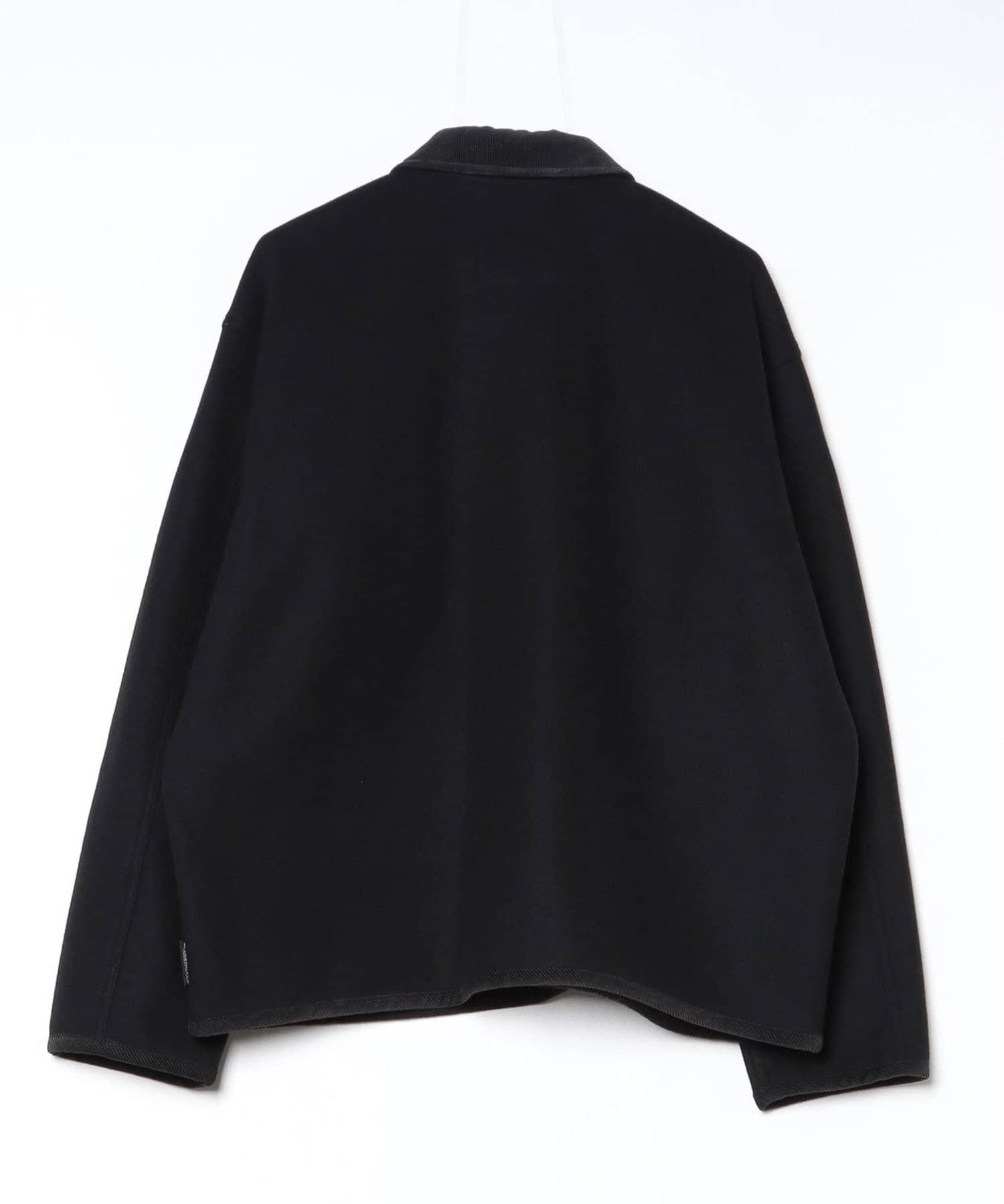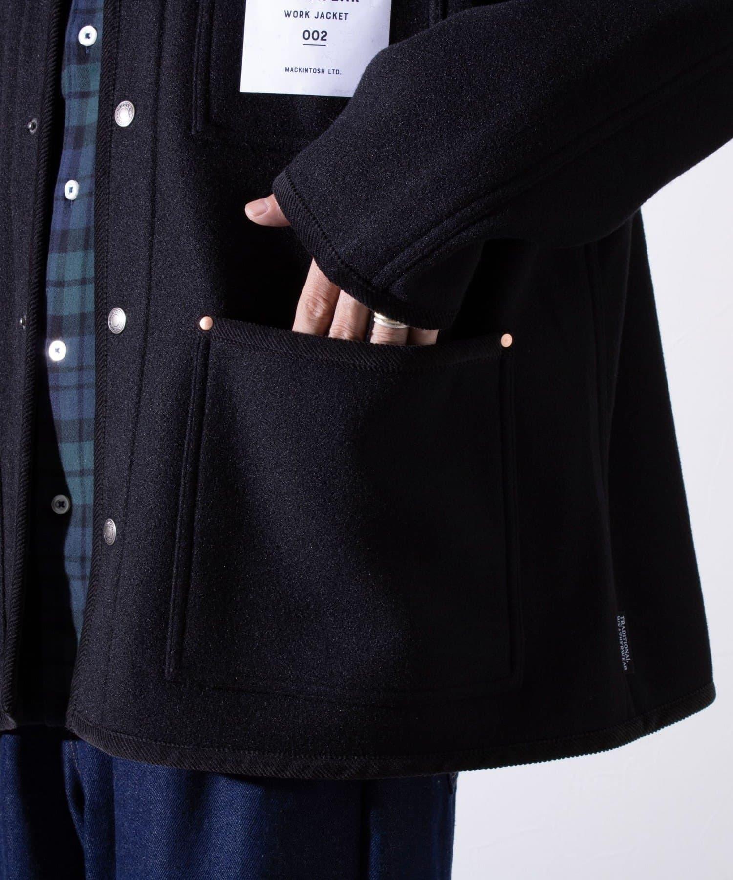 這款工作夾克 002 是一款連體服夾克,肩部下垂,剪裁整潔而方正。