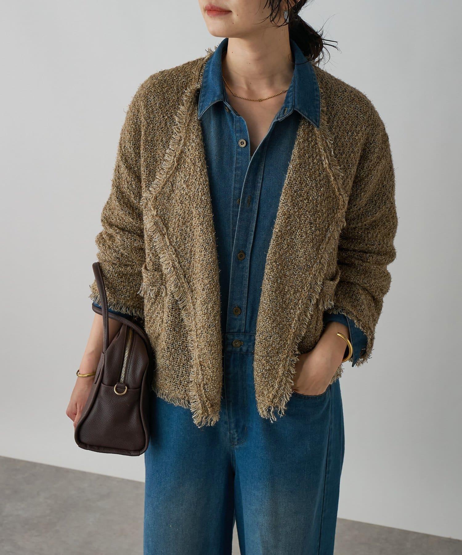 【優雅穿搭】菱形花紋粗花呢開衫/預計9月下旬發貨