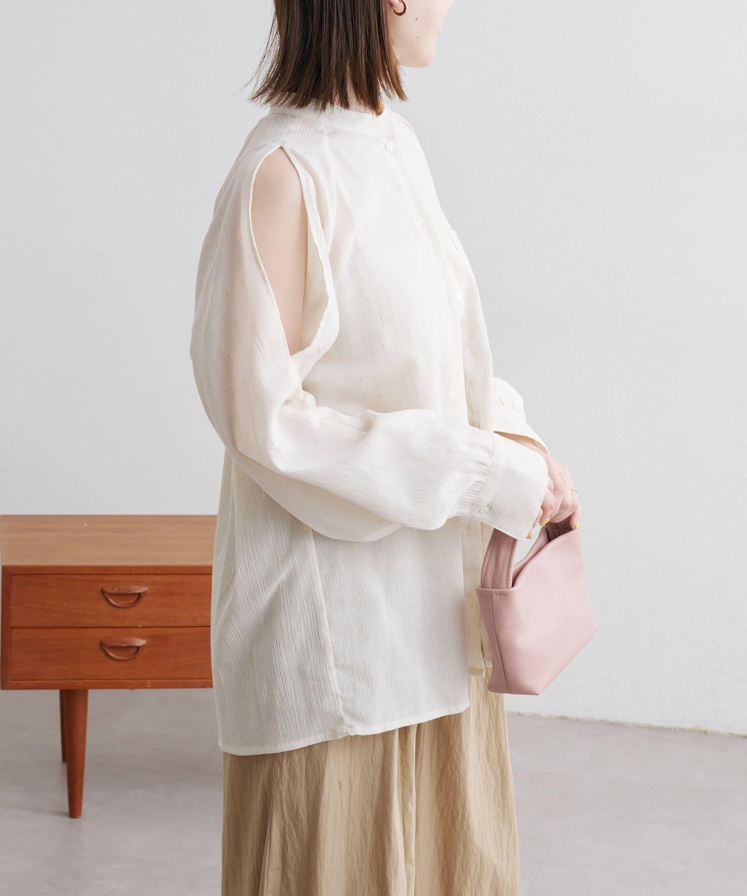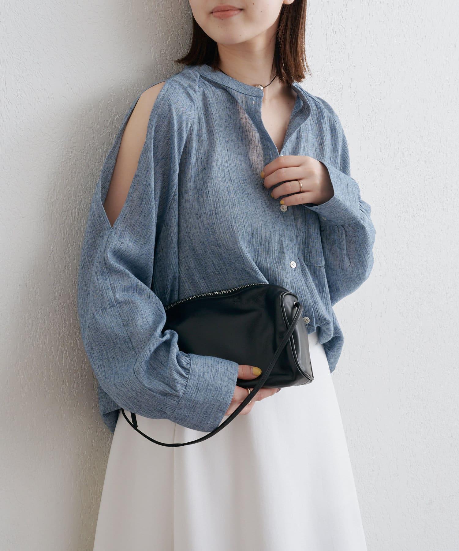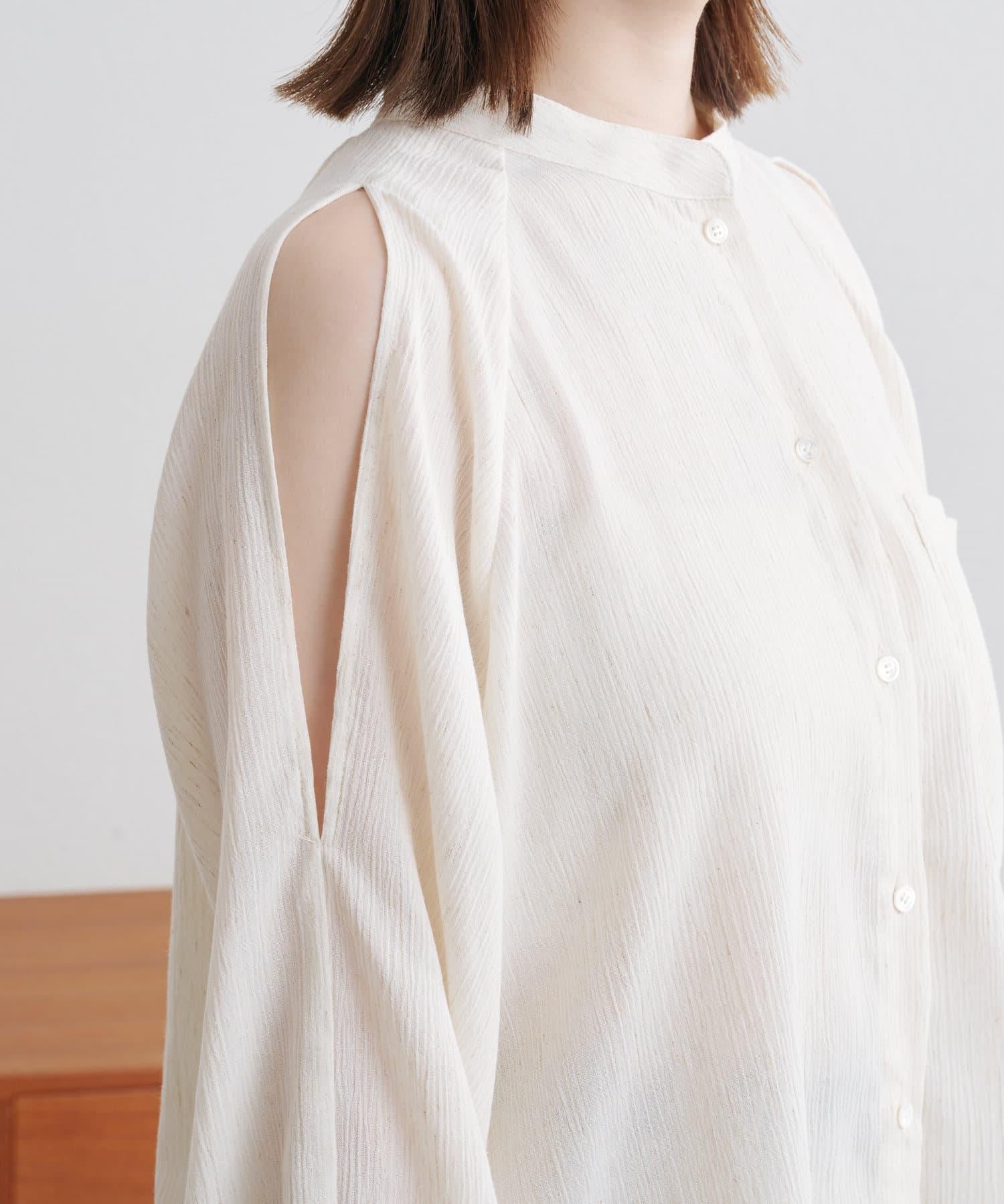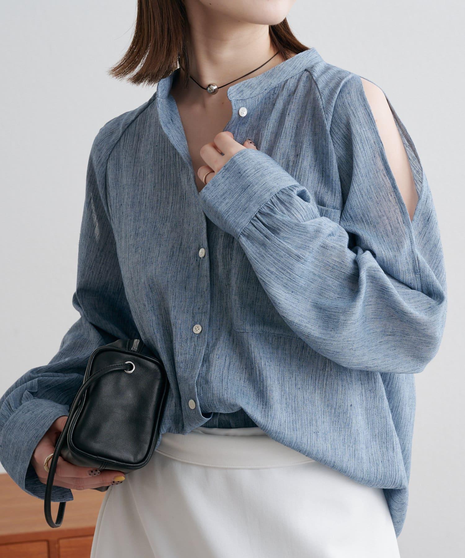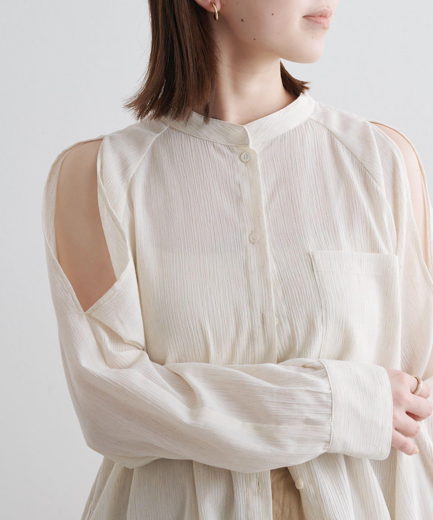 肩部的開衩設計巧妙地展現了肌膚的光澤。