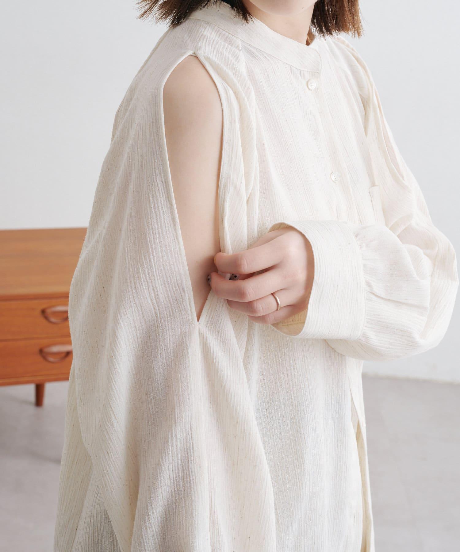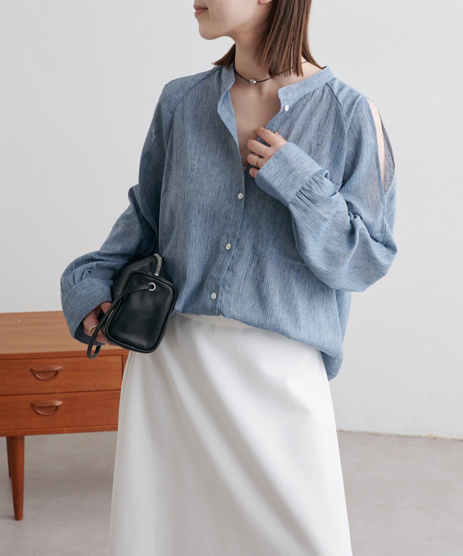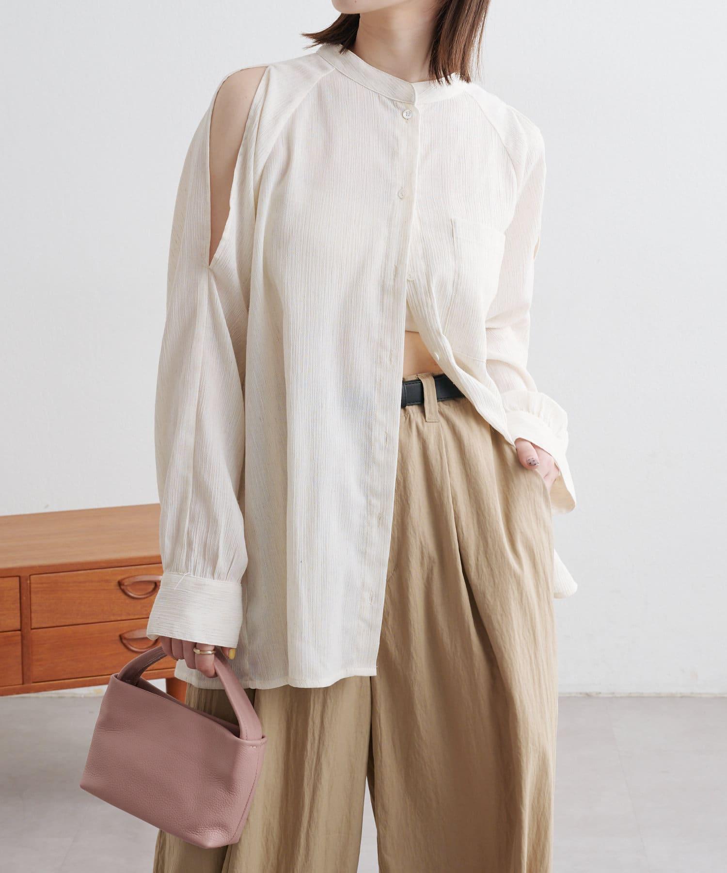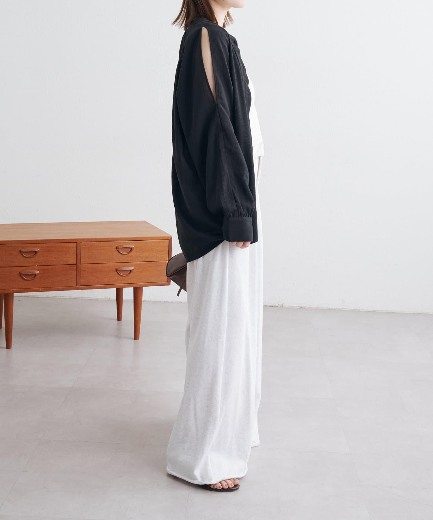 肩部的開衩設計巧妙地展現了肌膚的光澤。
