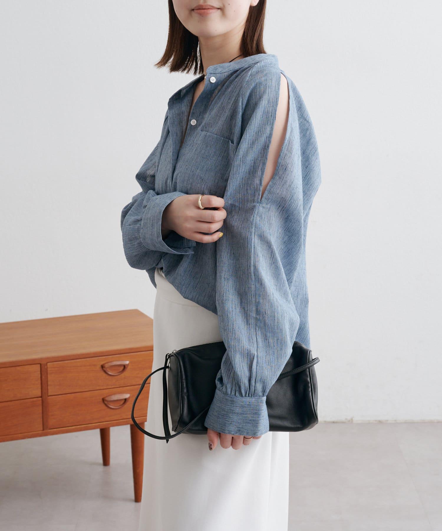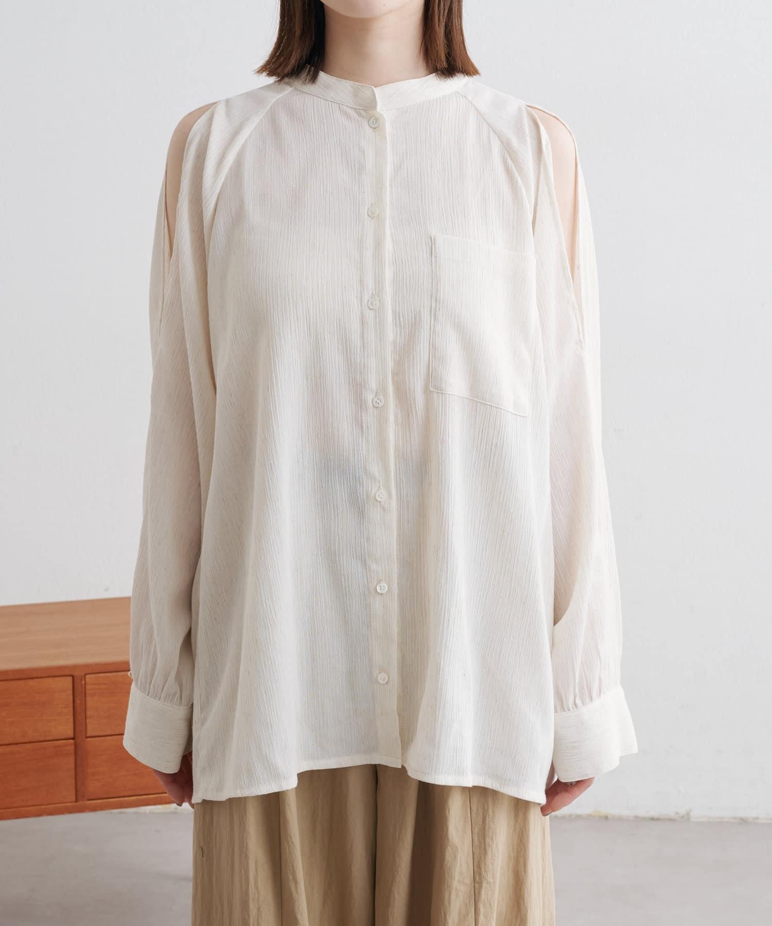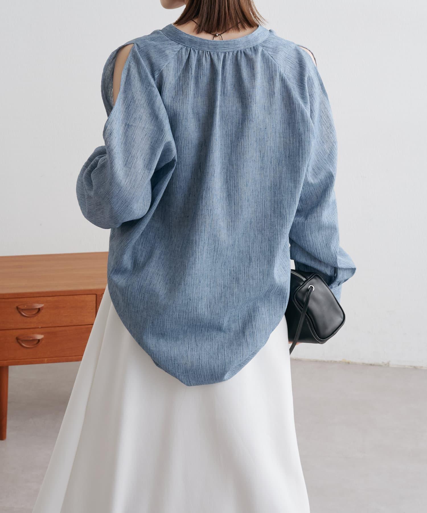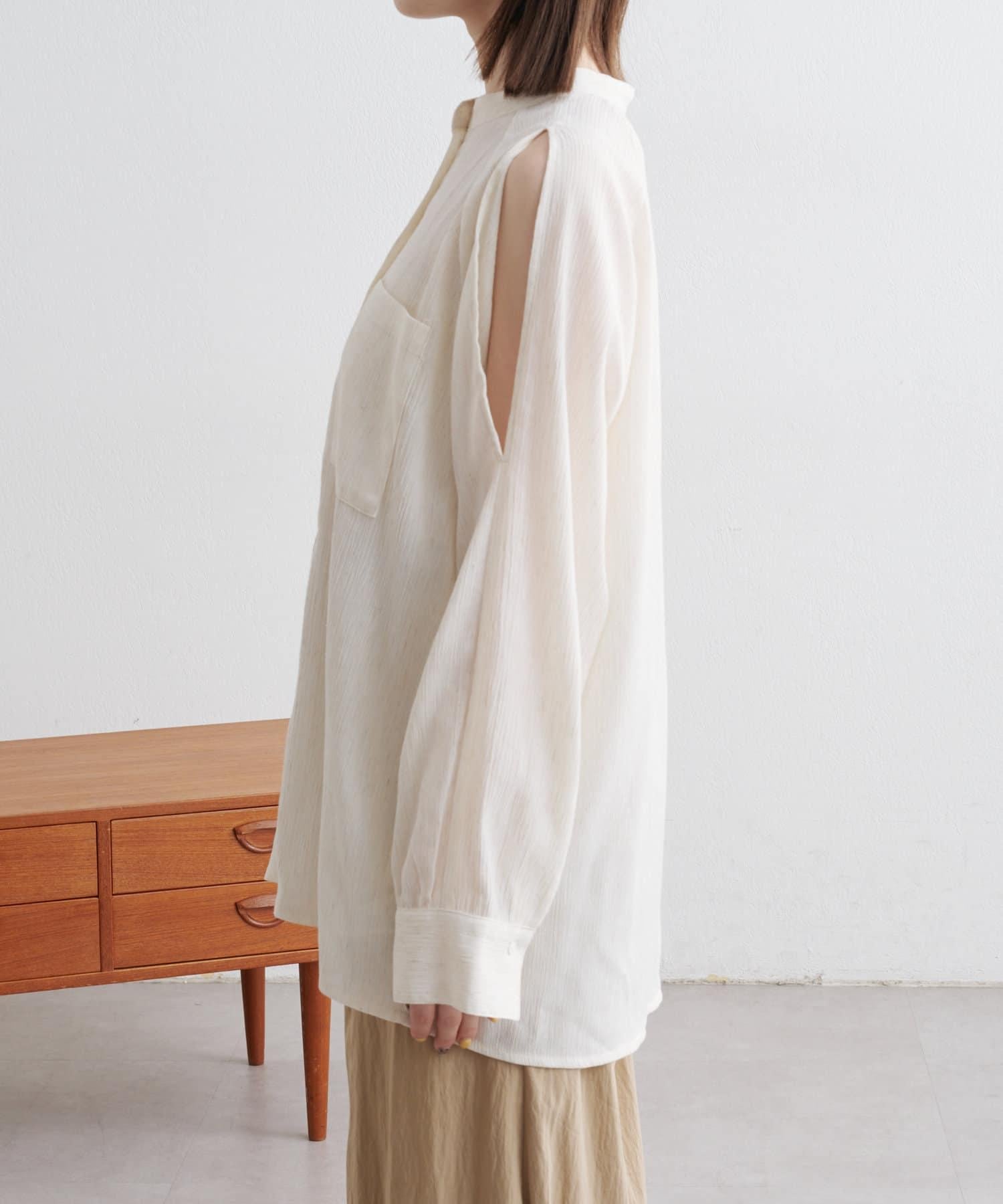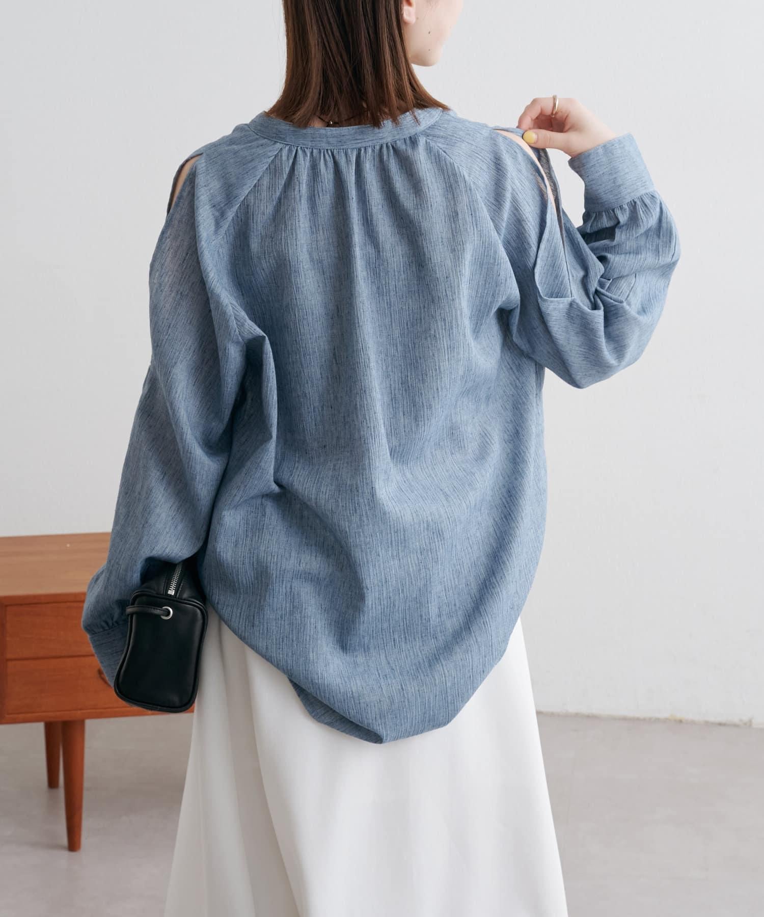 肩部的開衩設計巧妙地展現了肌膚的光澤。