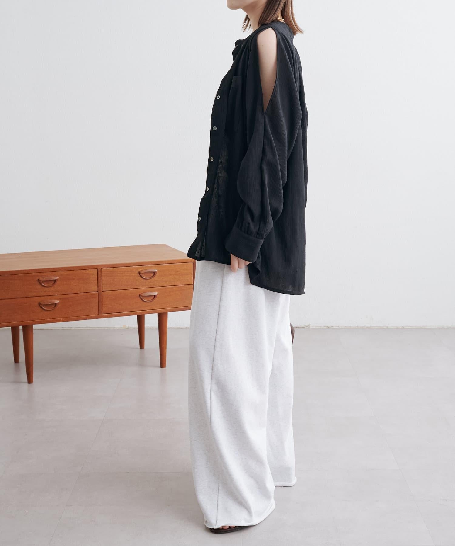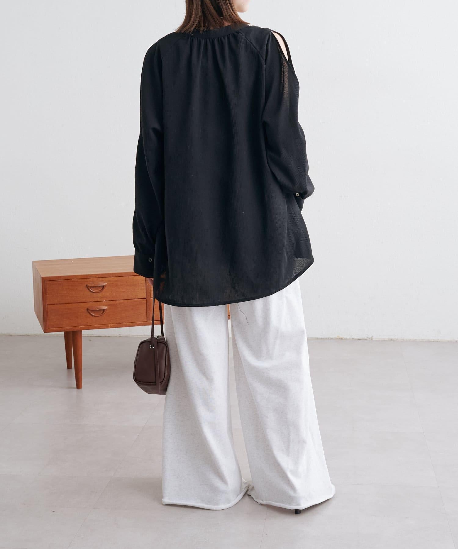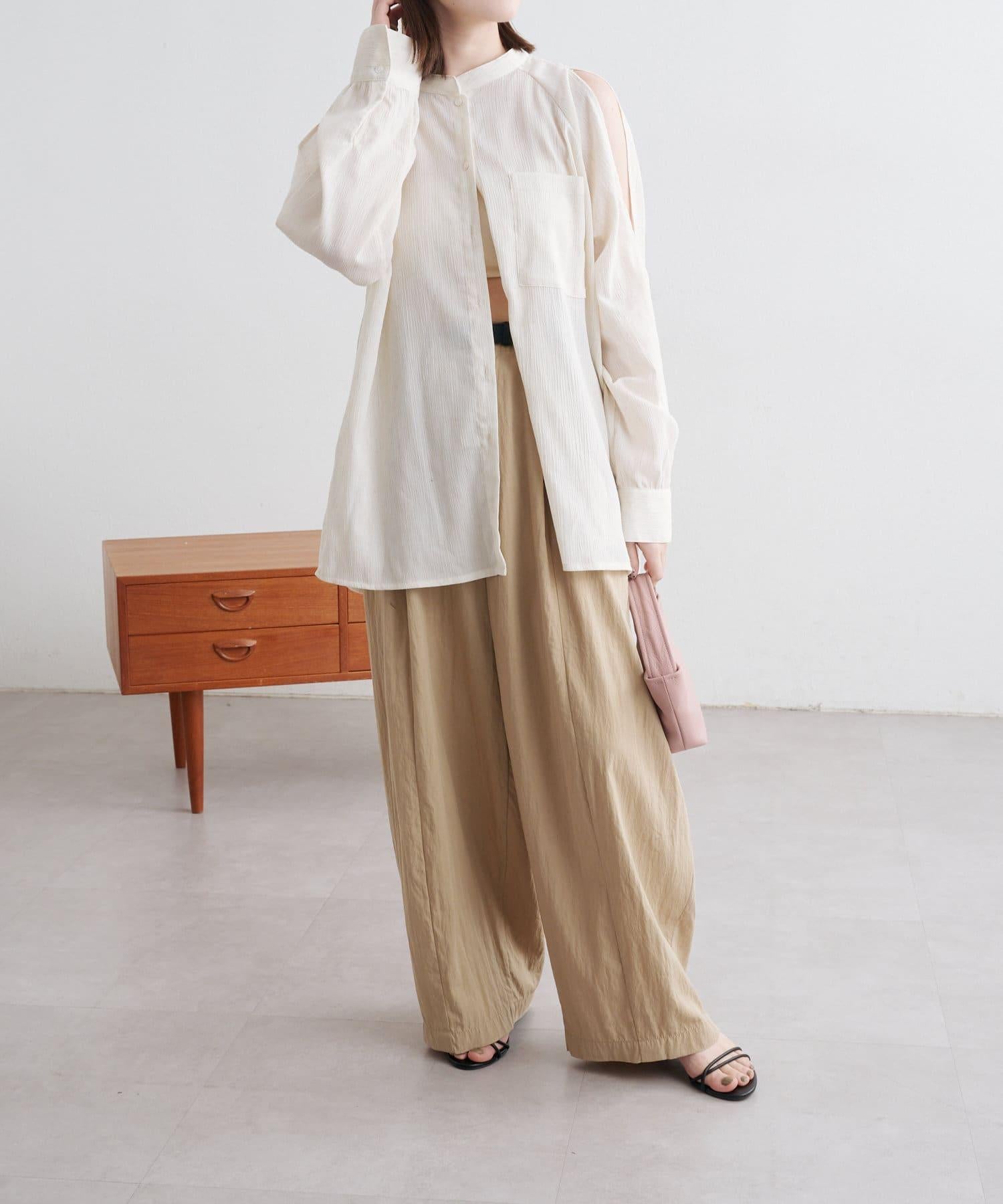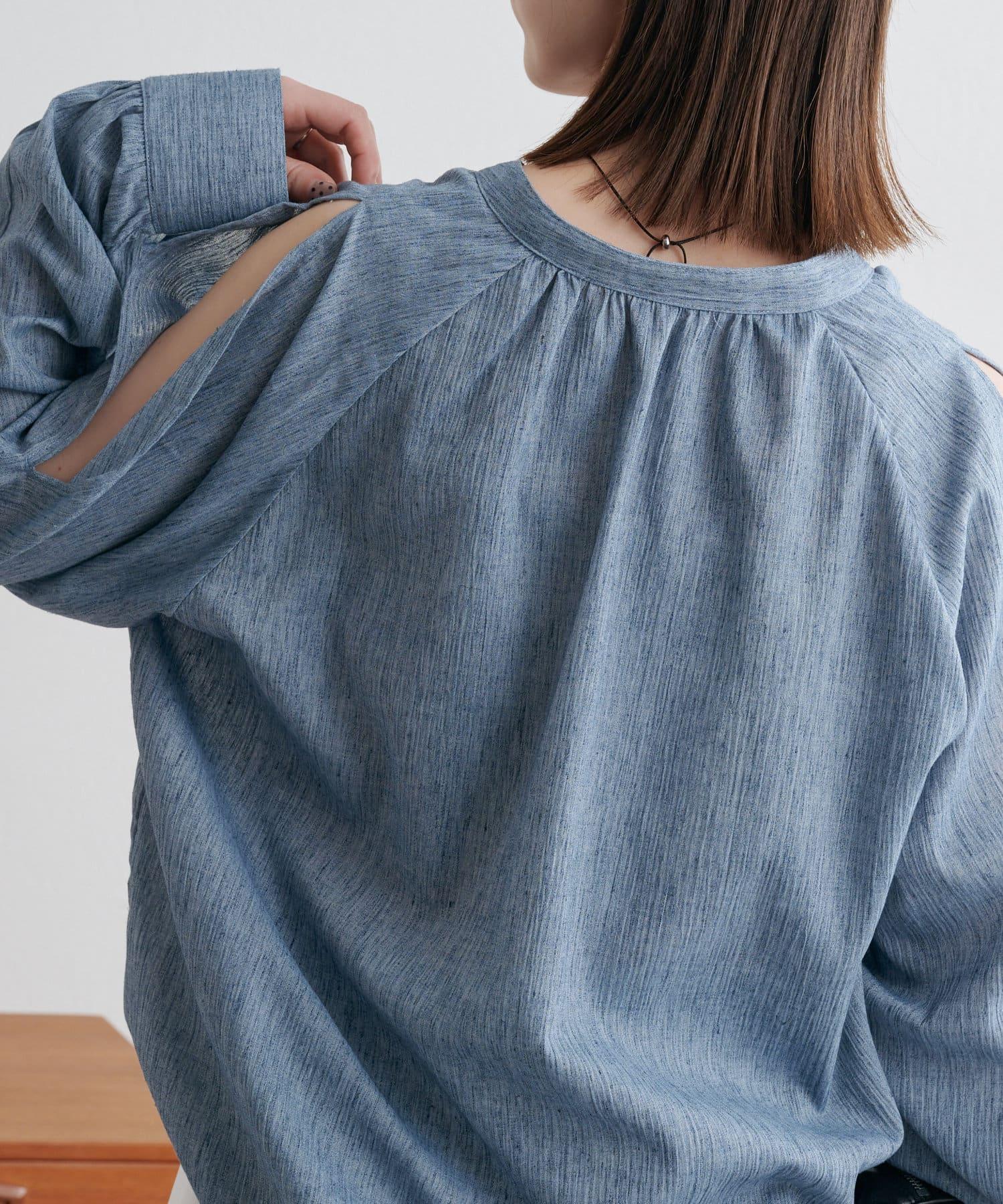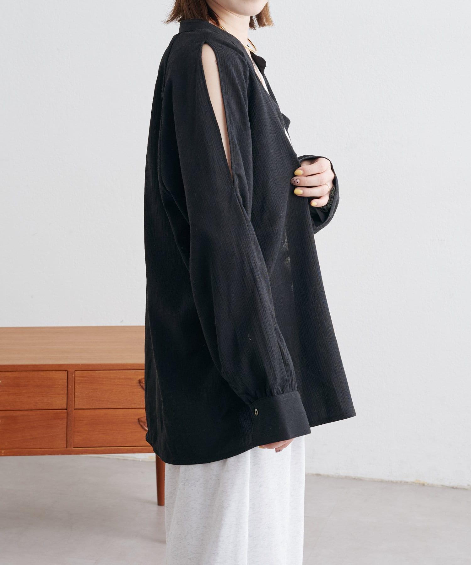 肩部的開衩設計巧妙地展現了肌膚的光澤。