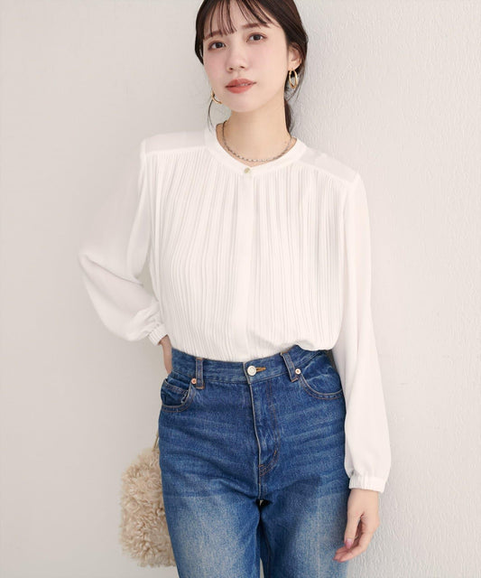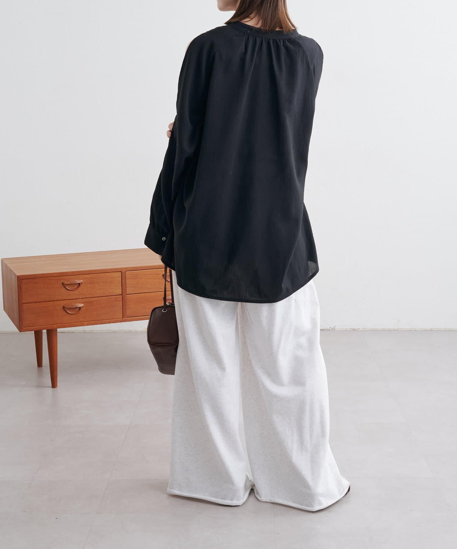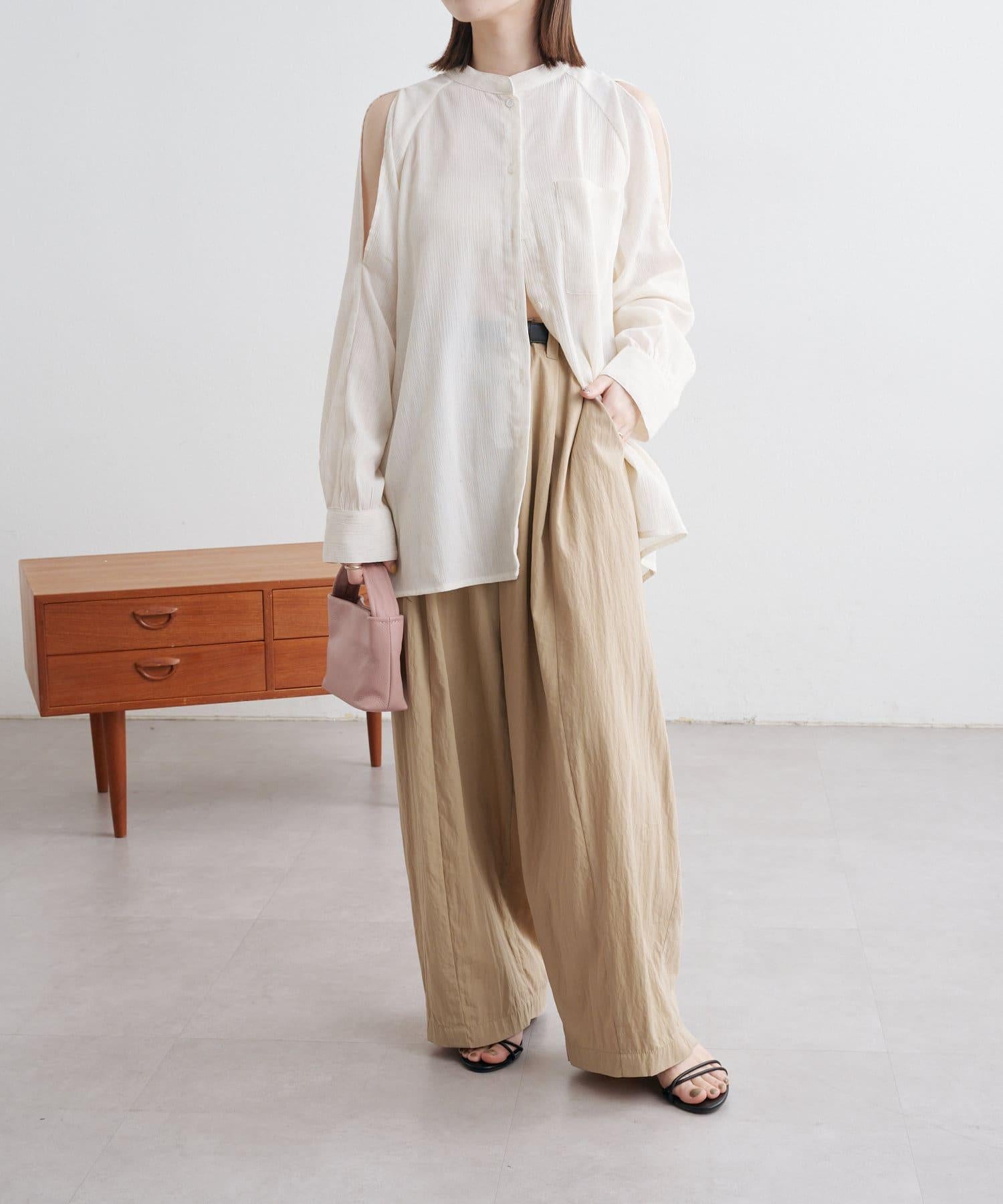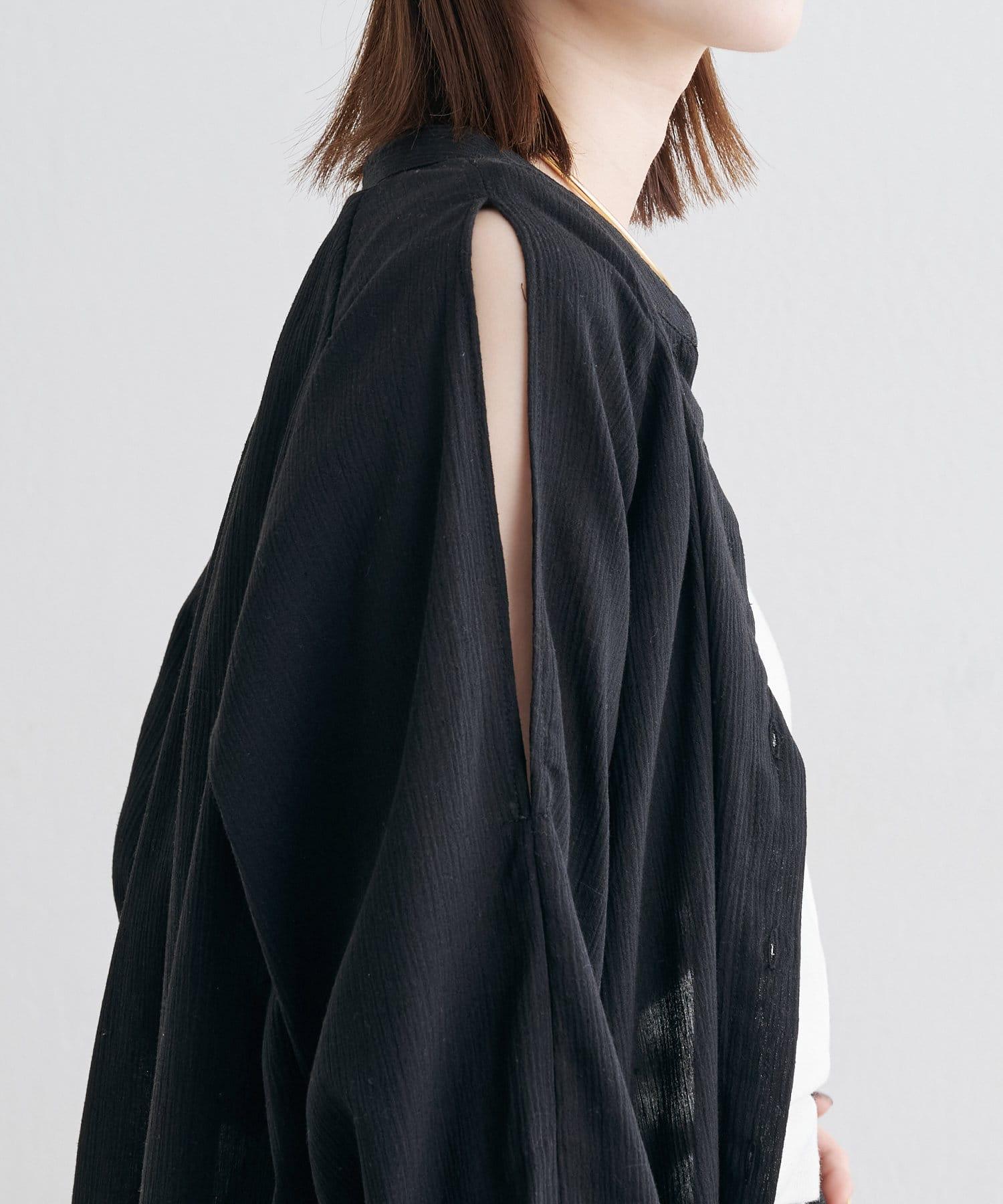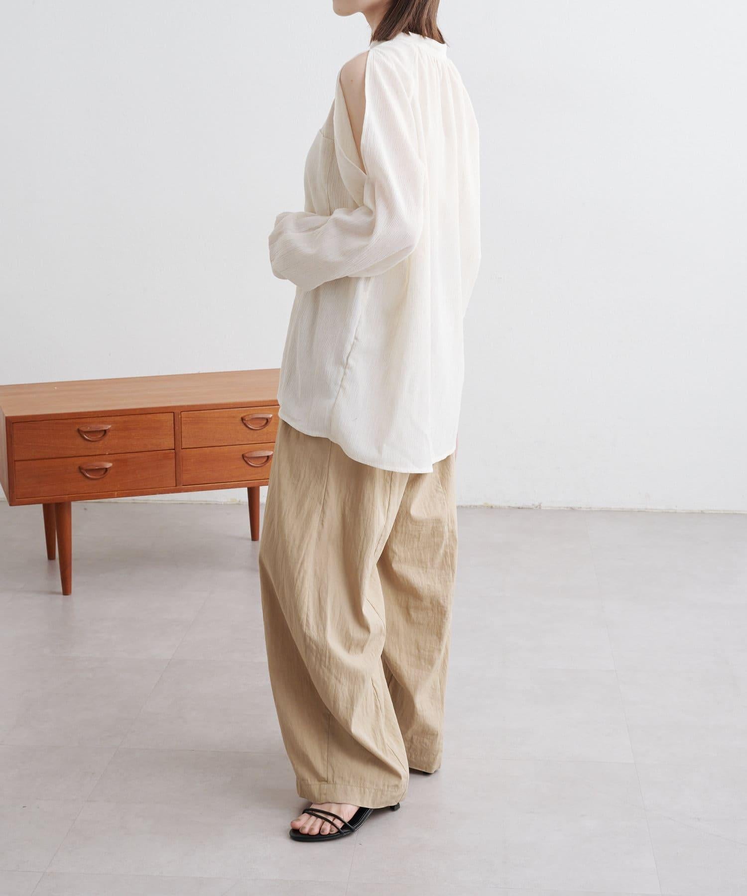 肩部的開衩設計巧妙地展現了肌膚的光澤。