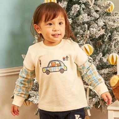 先染格紋汽車貼布繡衛衣