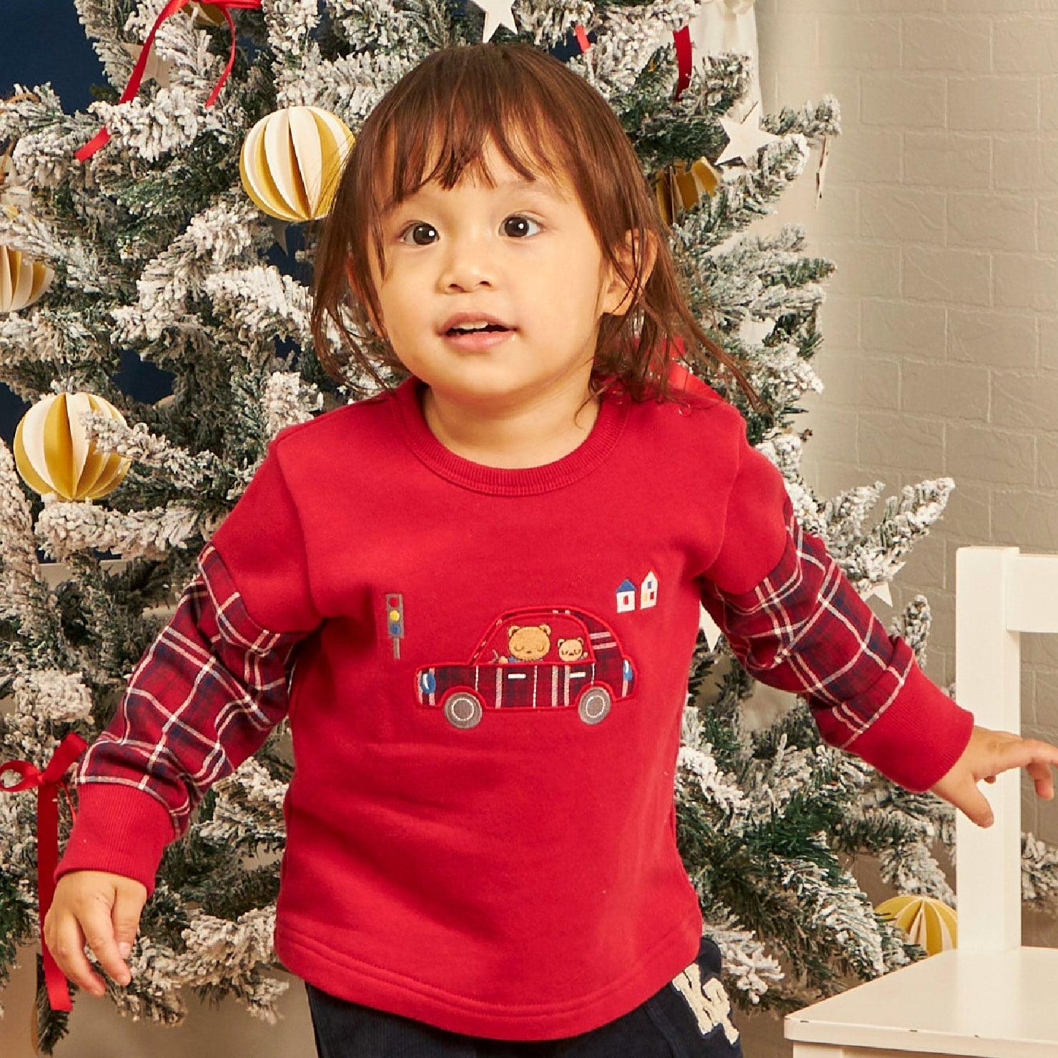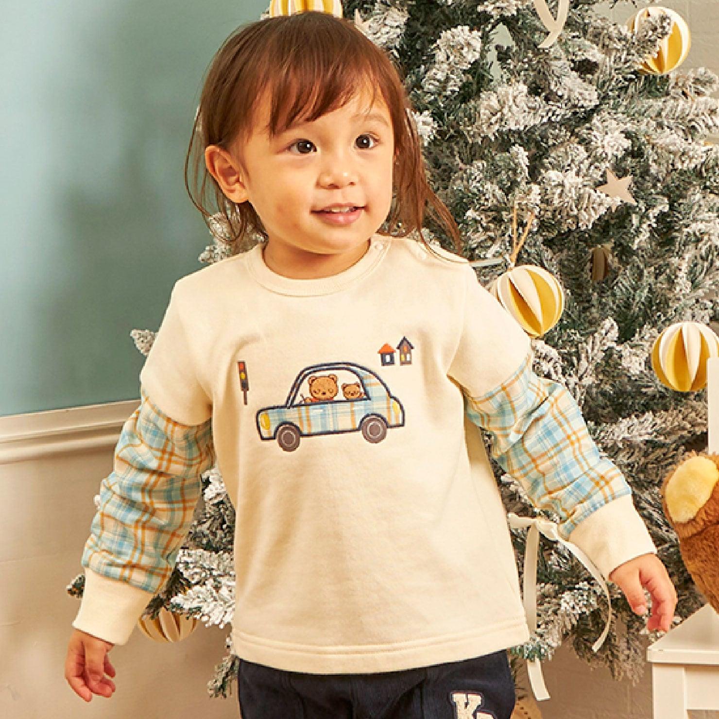 小熊身上的貼花刺繡為這款運動鞋增添了一份塵封的可愛。貼花面料和袖子的變化採用了紗線染色格紋,巧妙地增添了傳統感,給人以休閒而優雅的印象。80 厘米和 90 厘米的左肩開口方便穿脫。