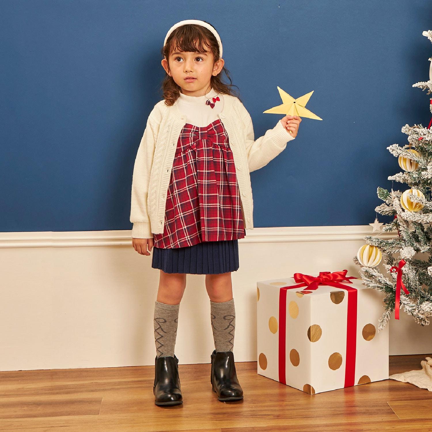 先染格紋×磨毛羅紋疊穿風格長款上衣