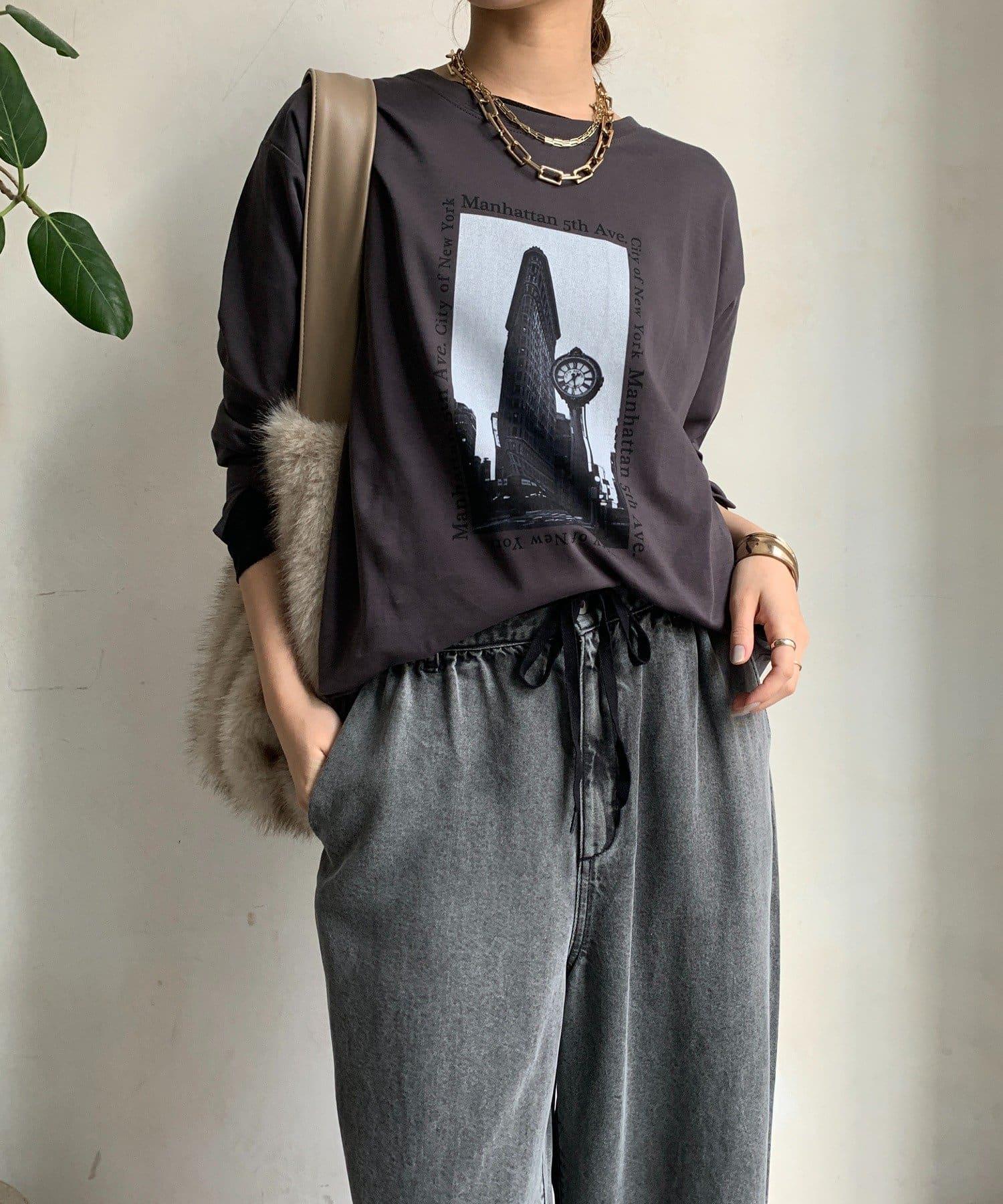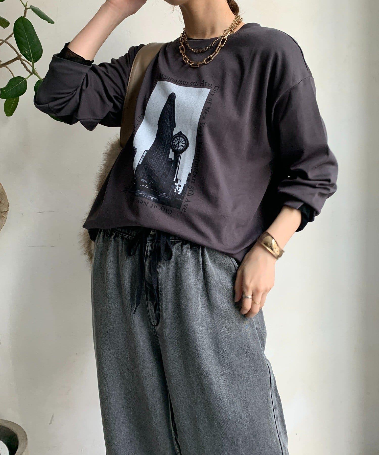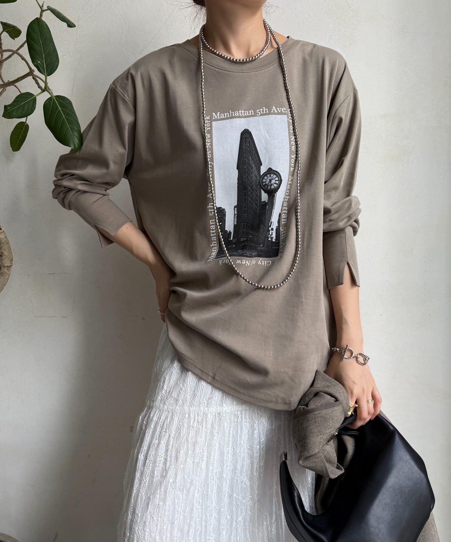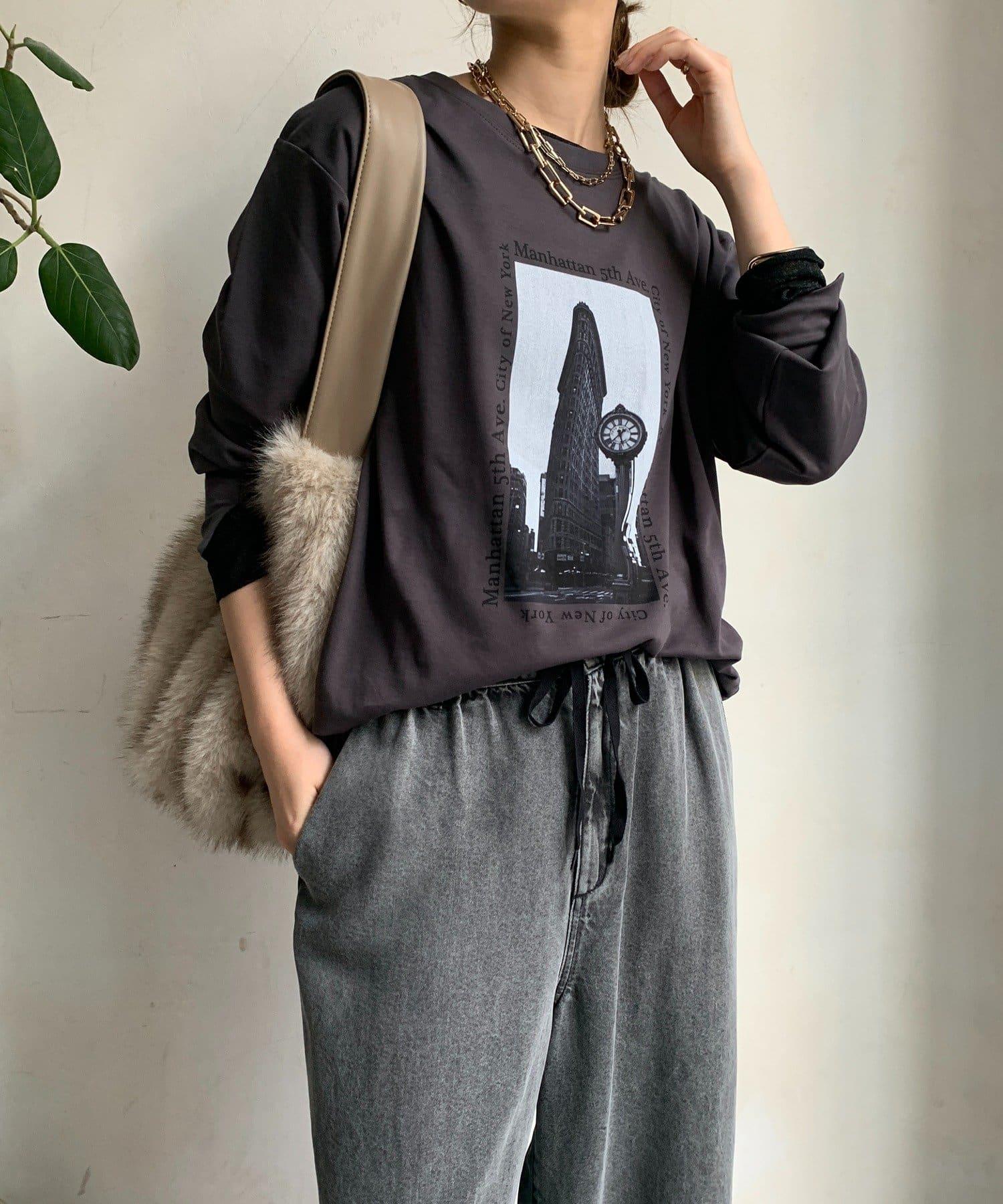 單調的風景印花給人休閒又不失時尚的印象。