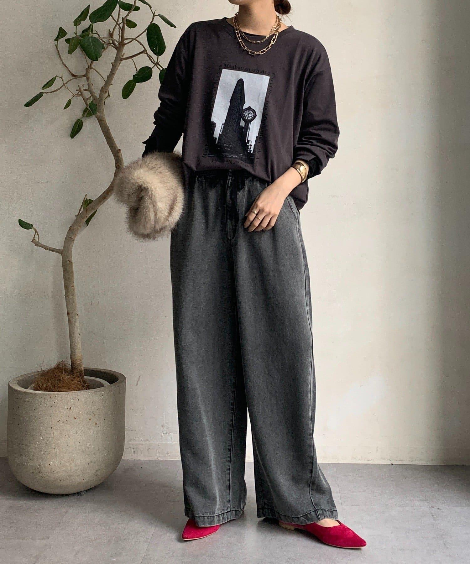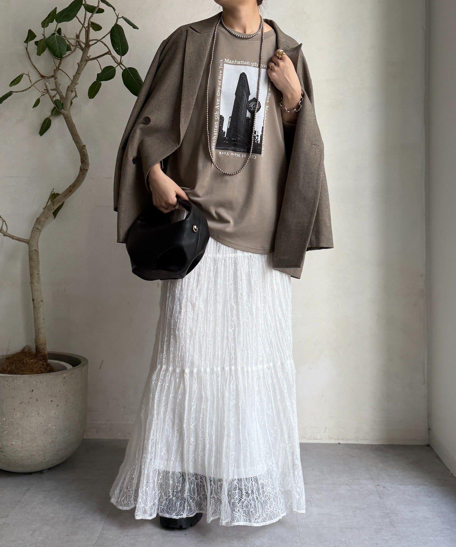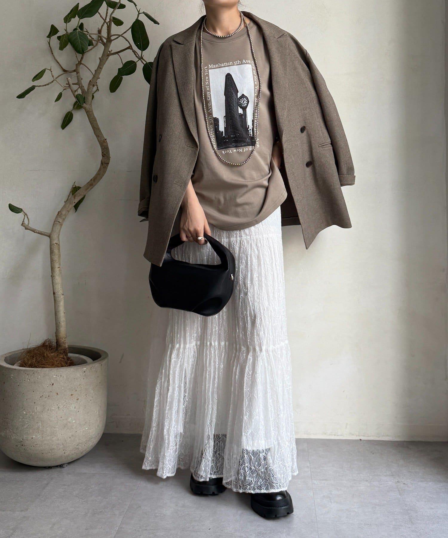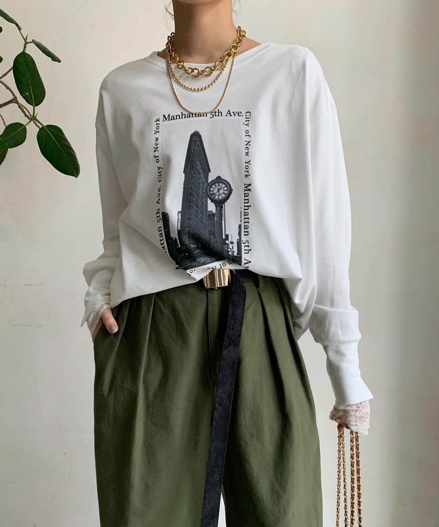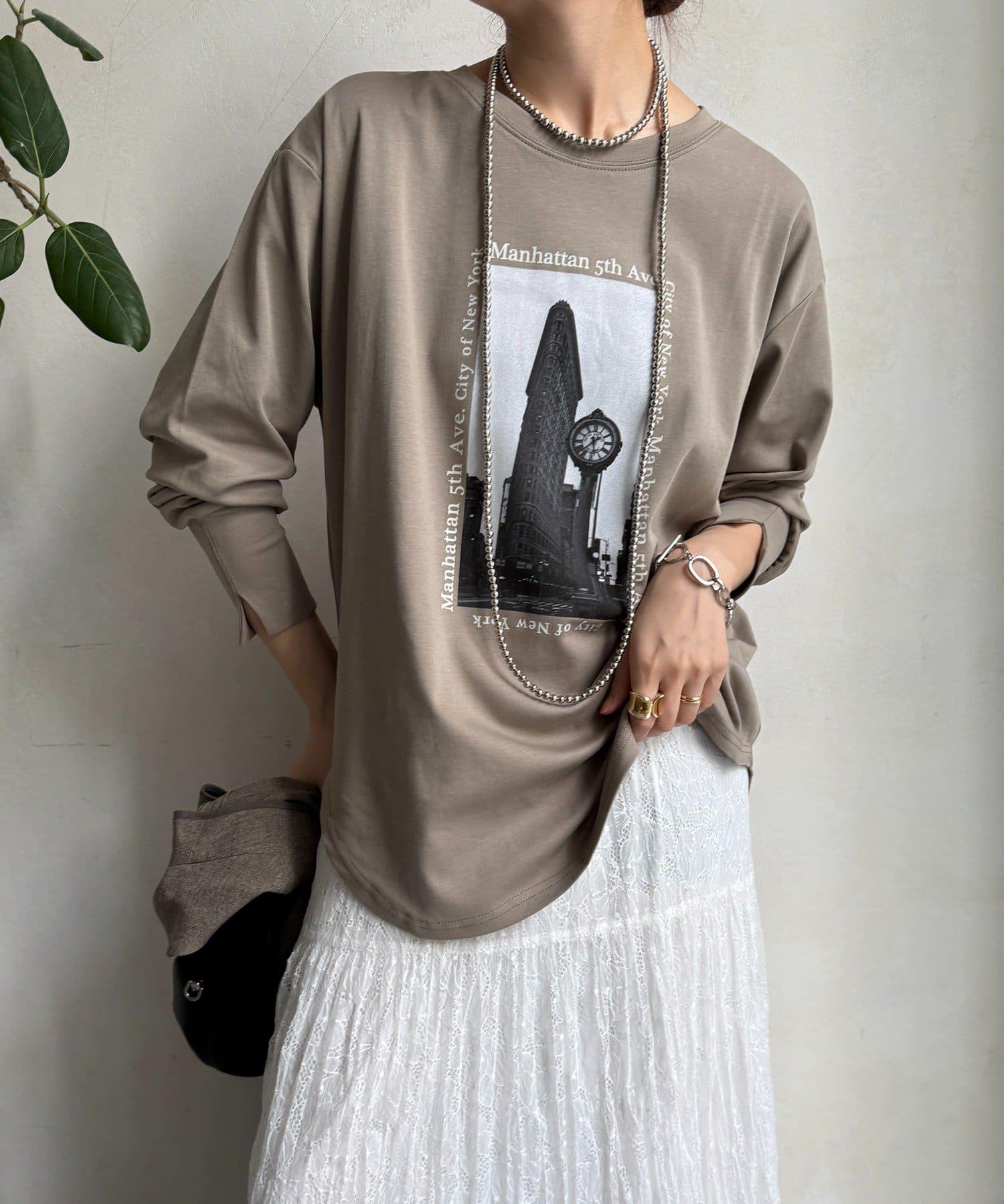 單調的風景印花給人休閒又不失時尚的印象。