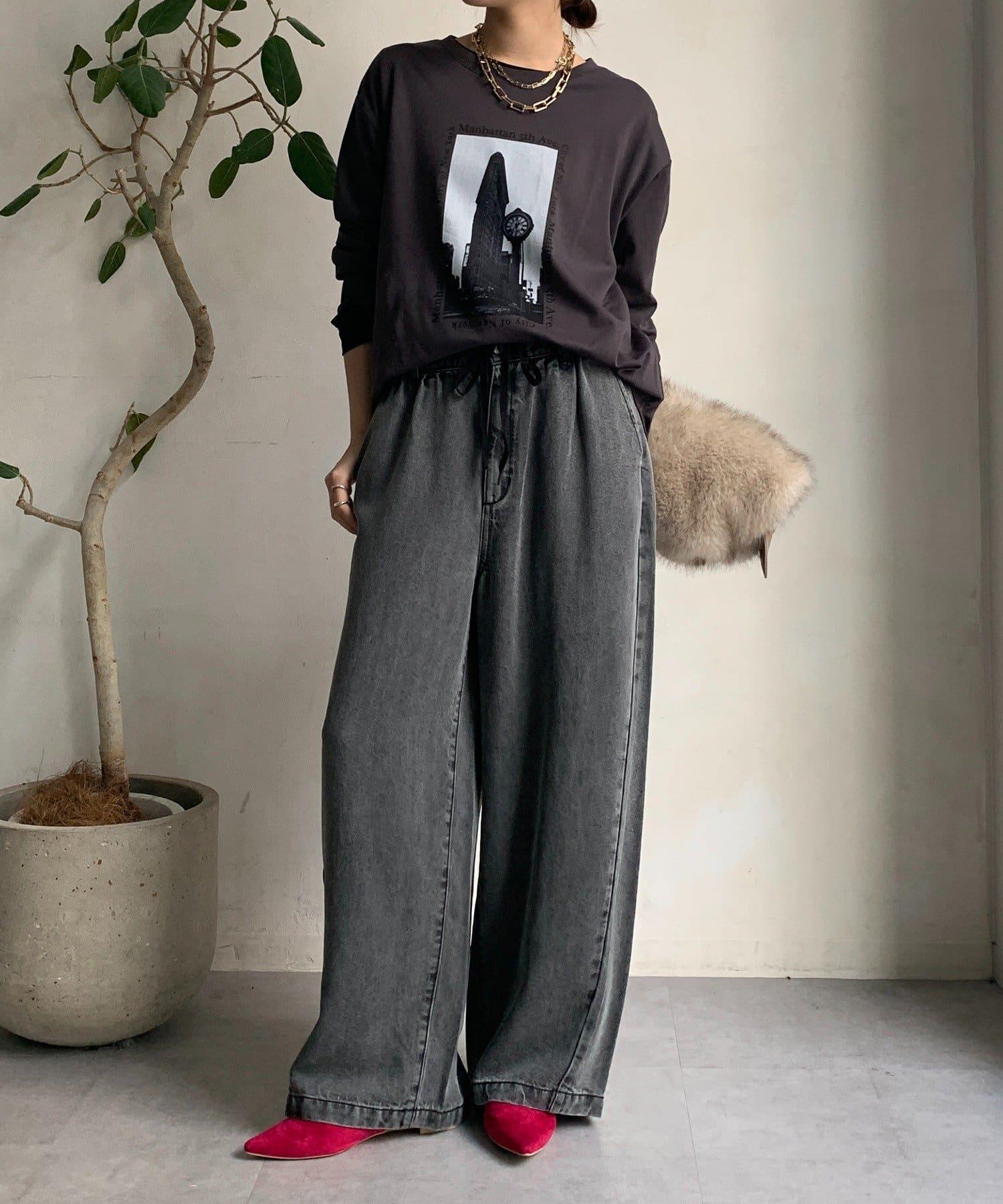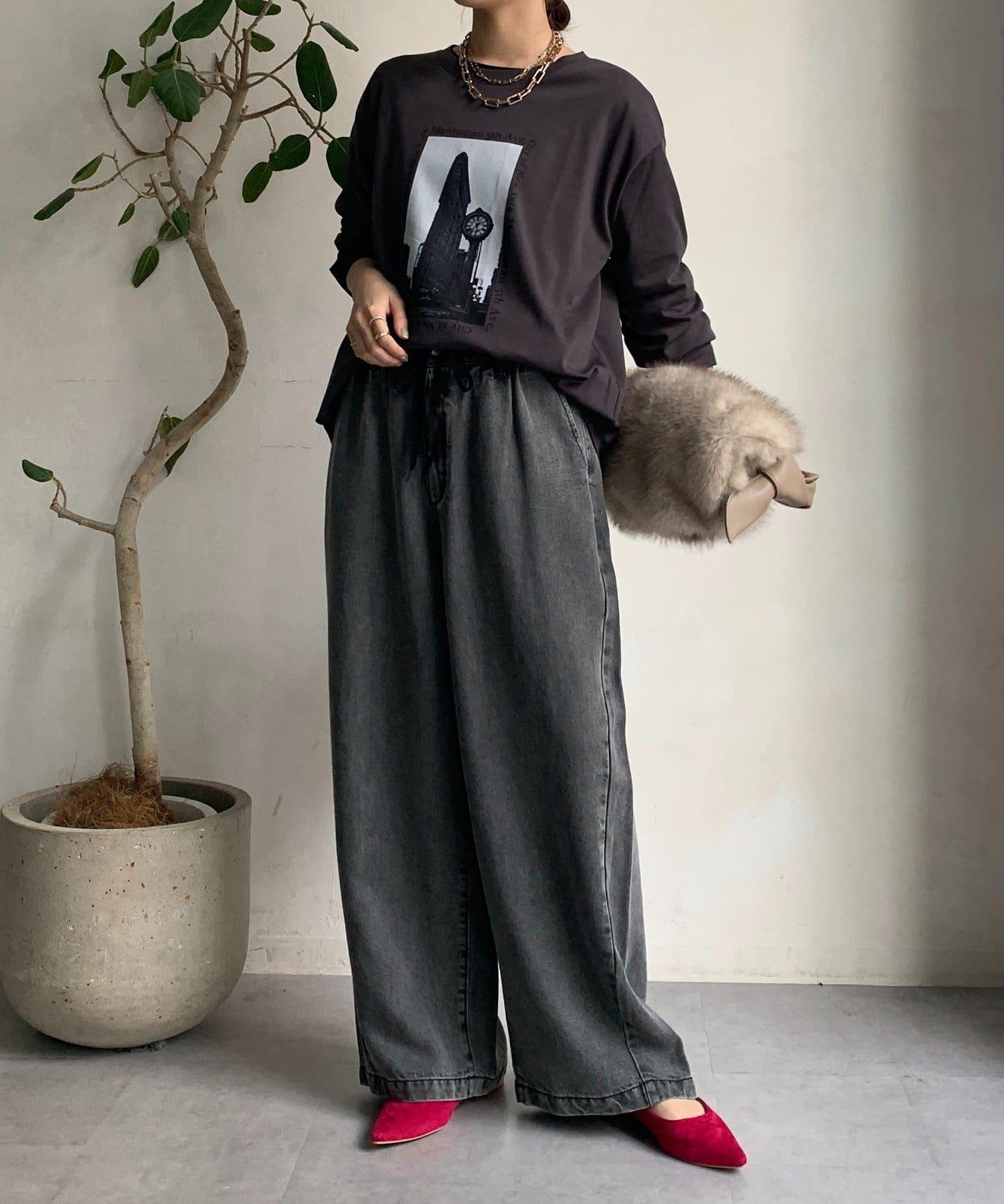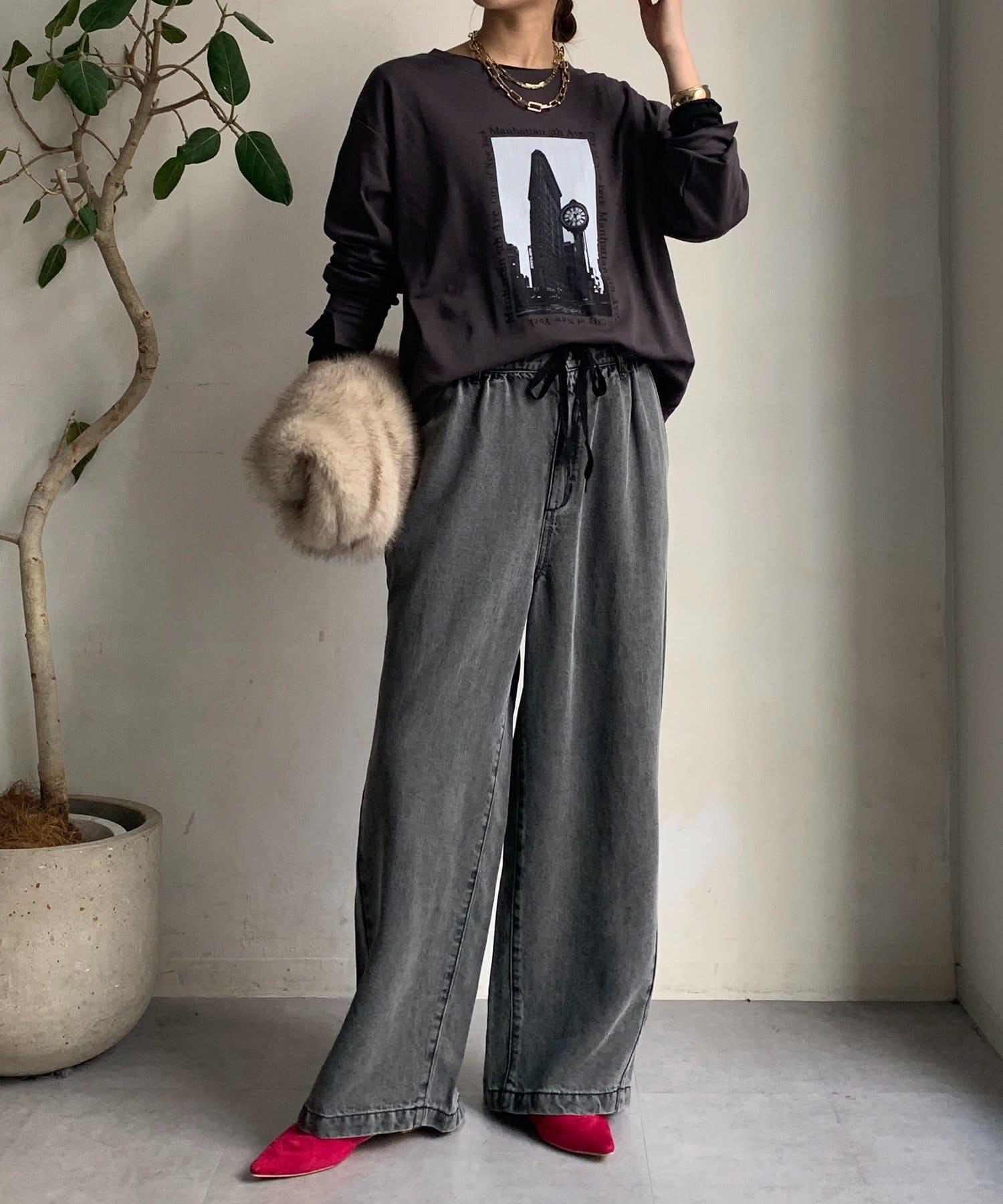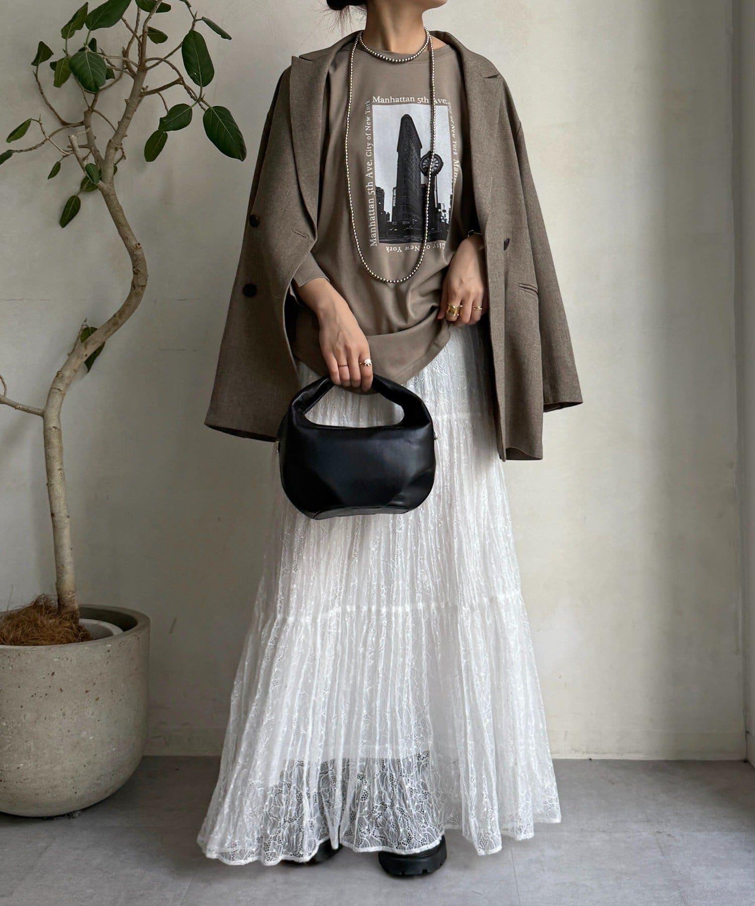 單調的風景印花給人休閒又不失時尚的印象。