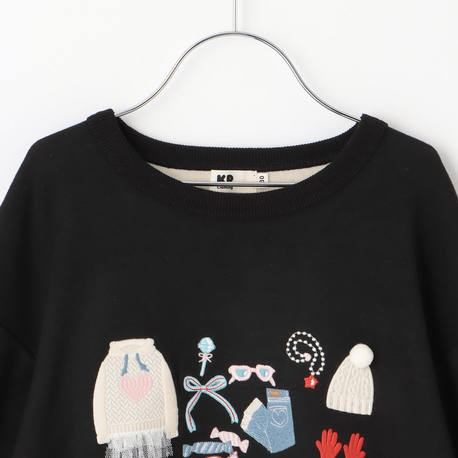 心形針織衫、絲帶、糖果、牛仔褲、項鍊、手套......繡有心愛物品圖案的運動衫。
