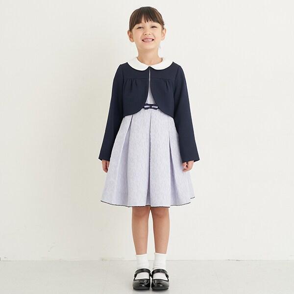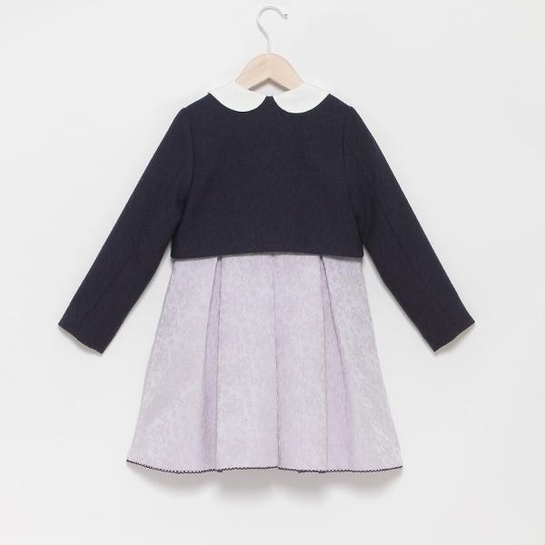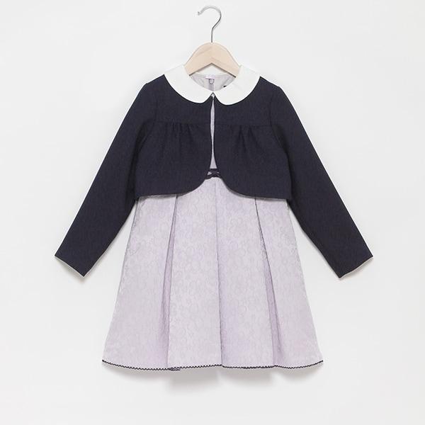 【兒童尺碼】短款開衫夾克+提花連衣裙套裝