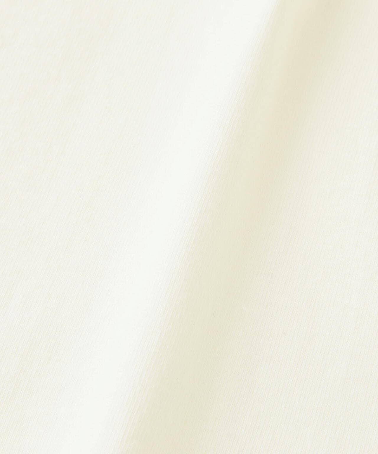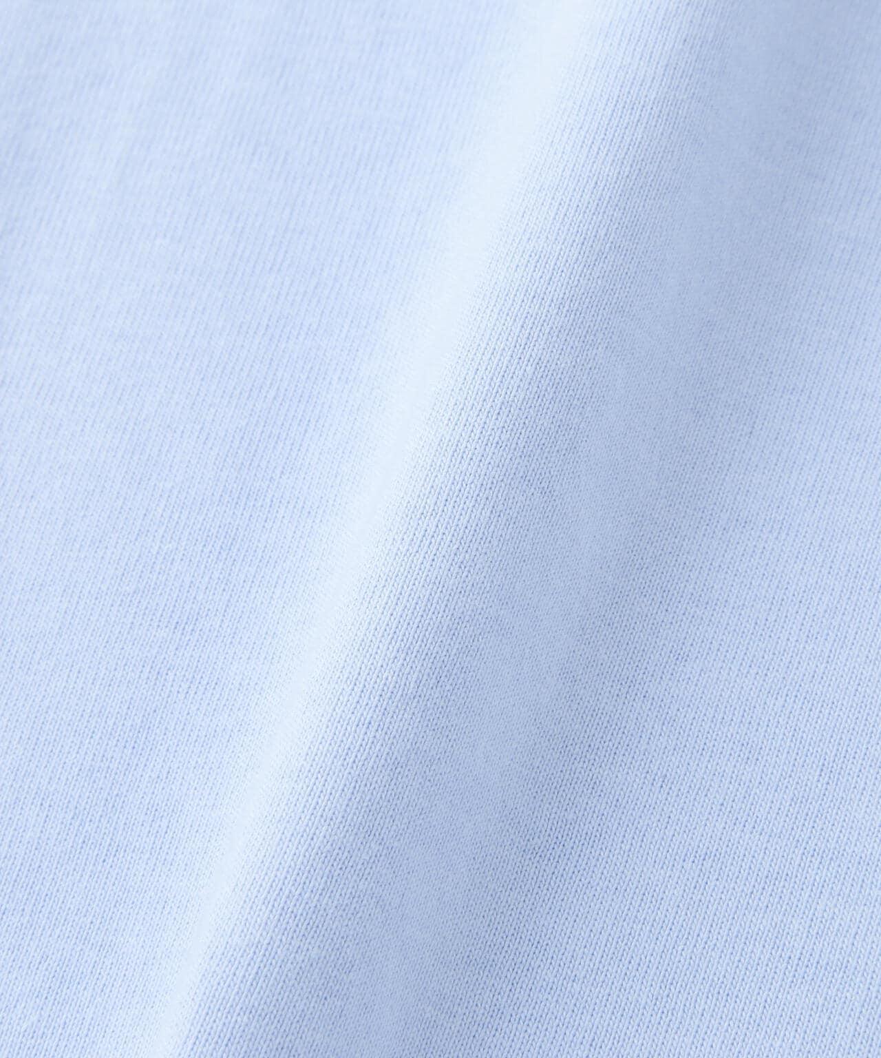 採用堅實厚實的 7 盎司紗體。硬、幹、粗糙的質地,加上只有開口紗才能帶來的蓬鬆、豐滿的手感,給人一種美國品牌的印象。採用粘合劑頸部縫製,使帶狀衣領部分包裹住衣身。這是一種可以大量使用的規格,不會讓厚實的衣身退居二線。👍的圖案,僅用輪廓表達基本標識。