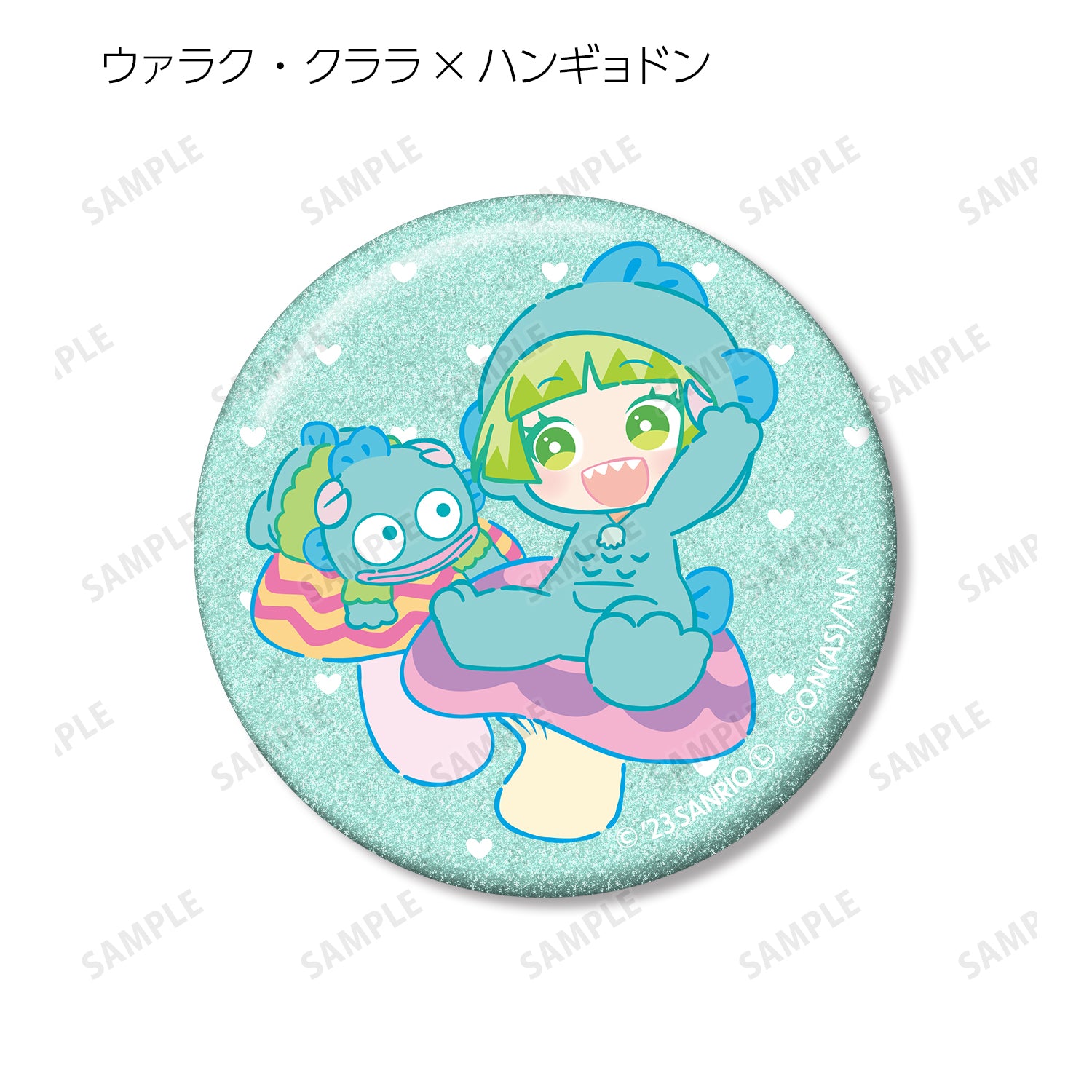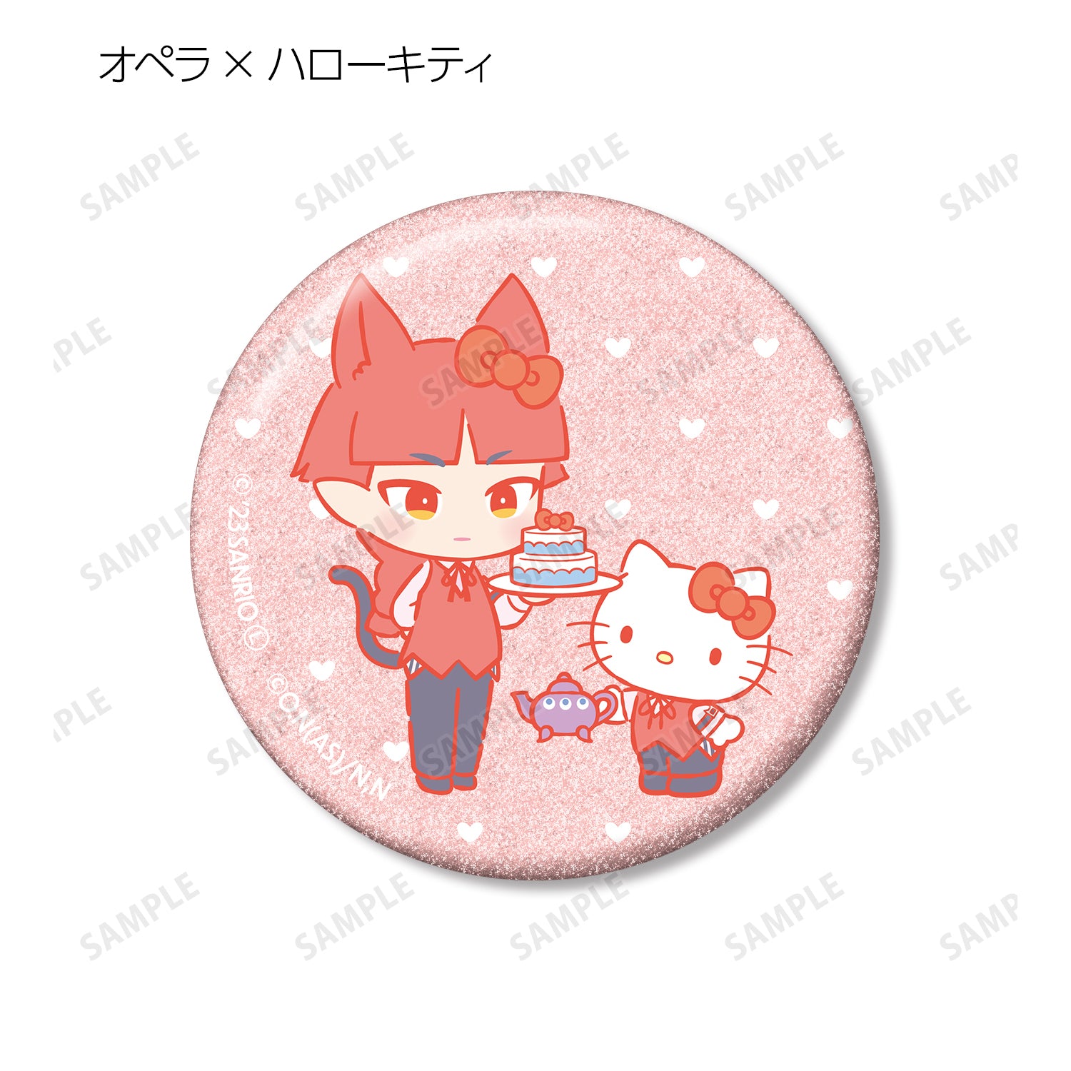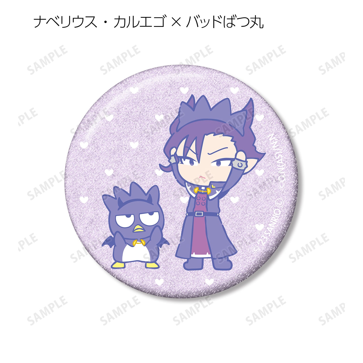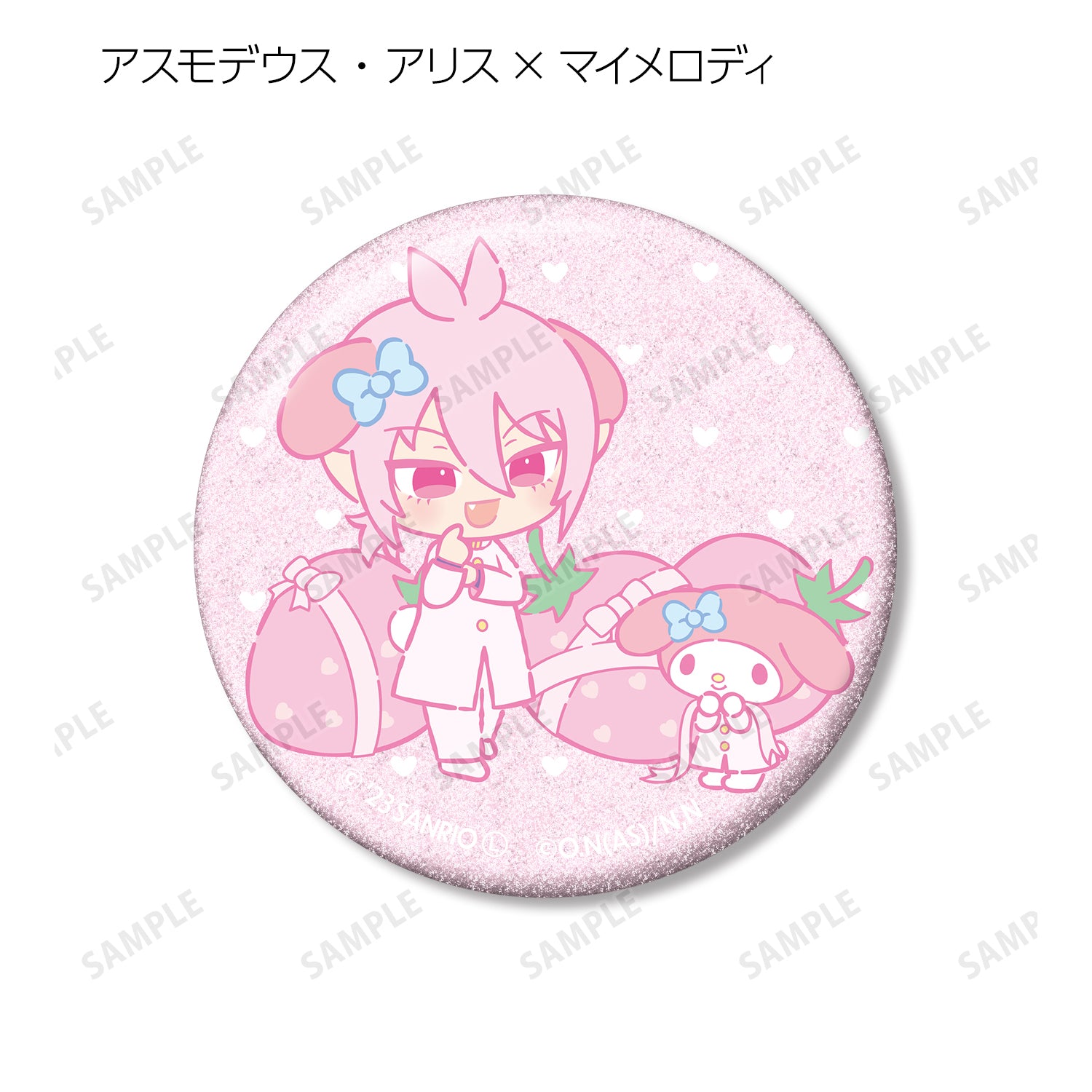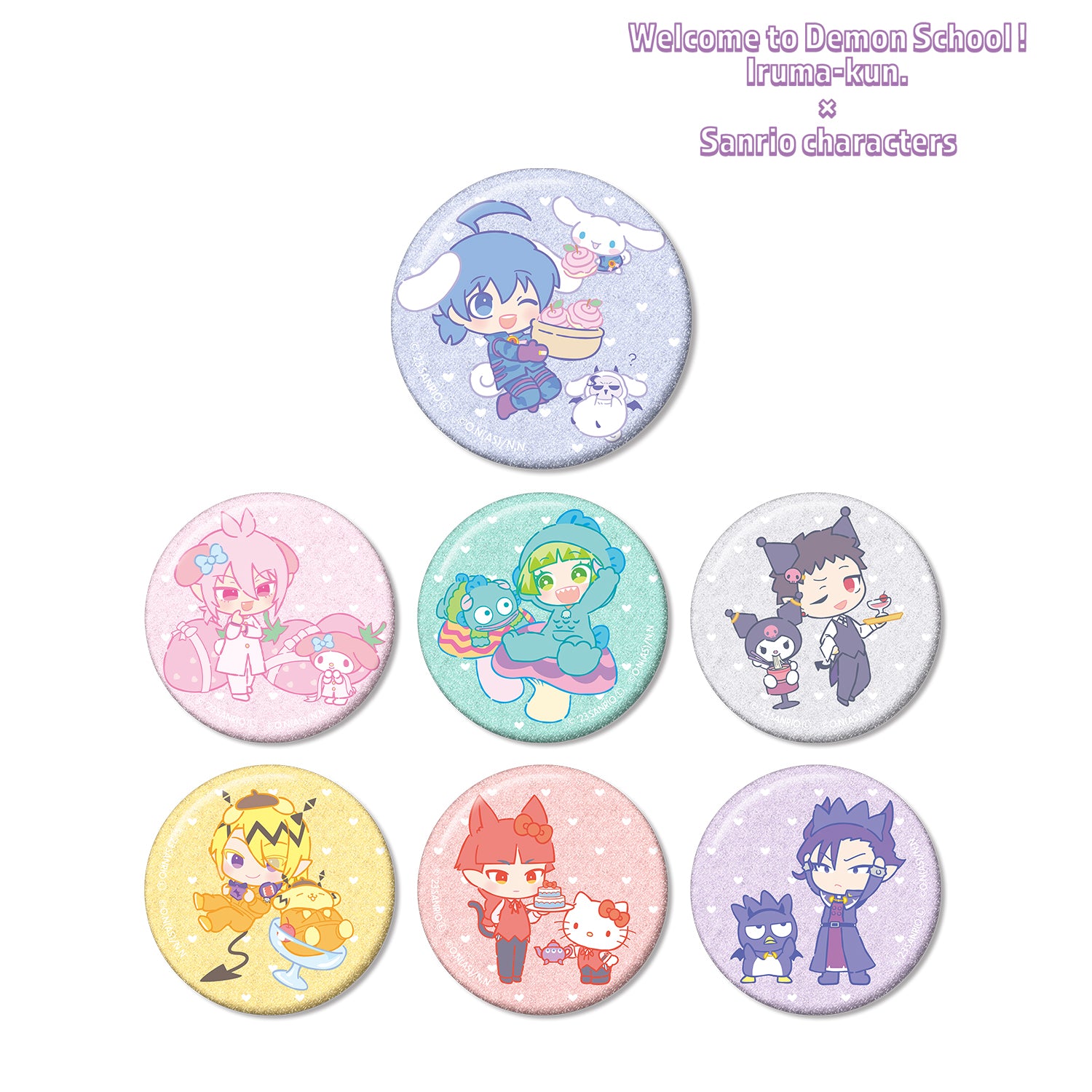 Suzuki Iruma x Cinnamoroll、Asmodeus Alice x My Melody、Uaraku Clara x Hangyodon、Andro M. Jazz x Kuromi、Shax Reed x Pom Pom Pudding、Opera x Hello Kitty 和 Naberius Callego x Bad Badtz Maru 被製作成閃閃發光的徽章。.