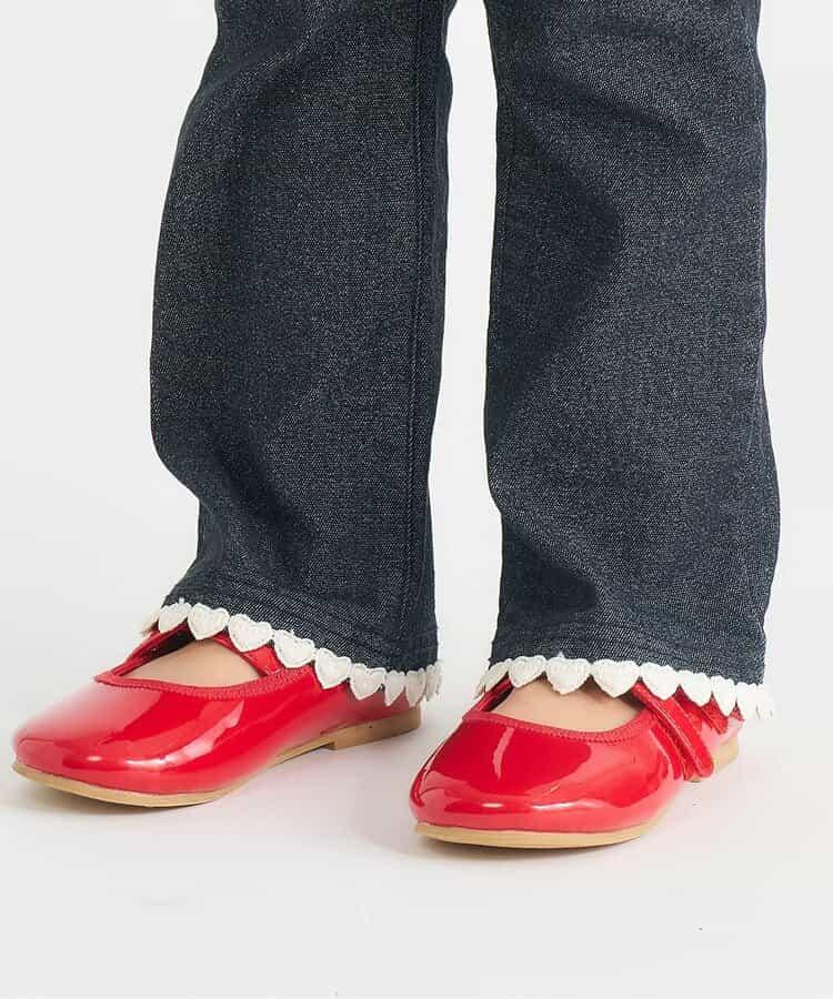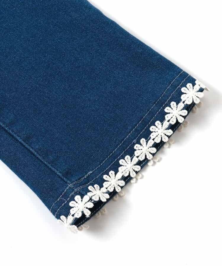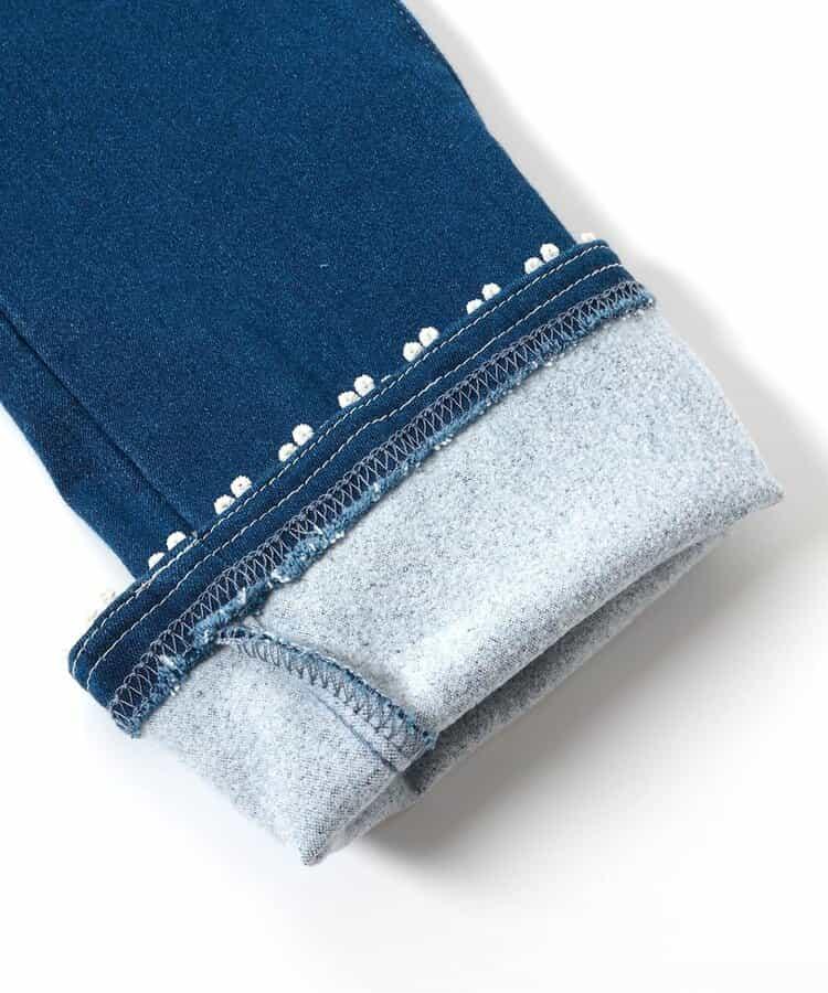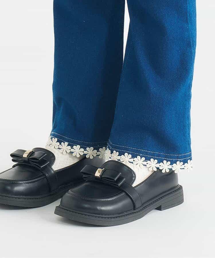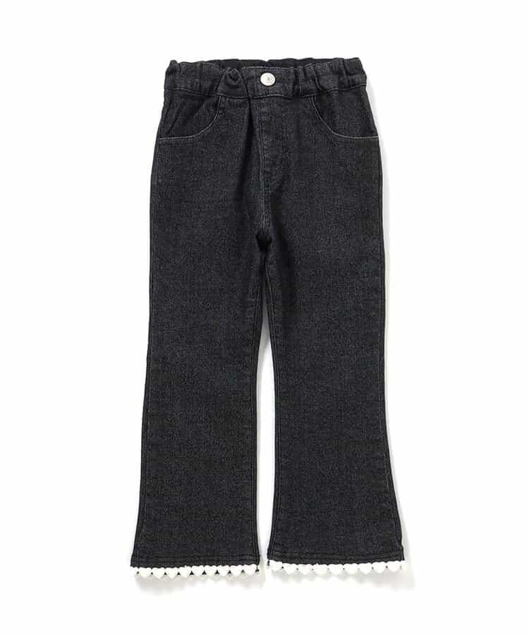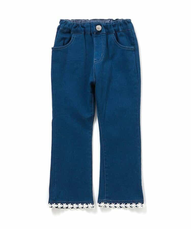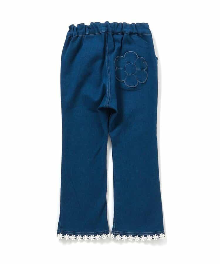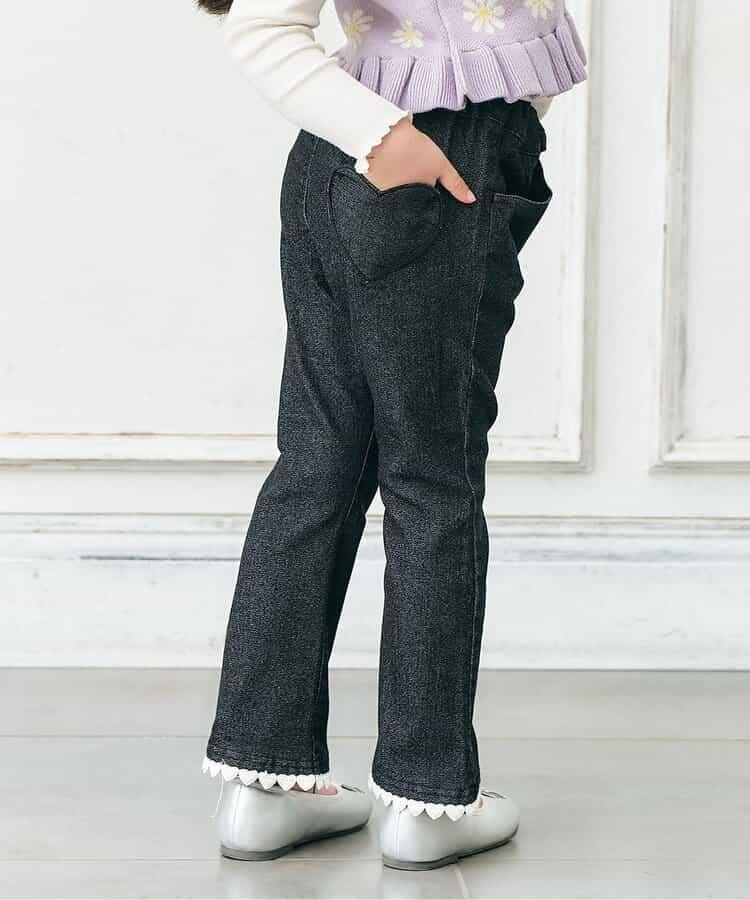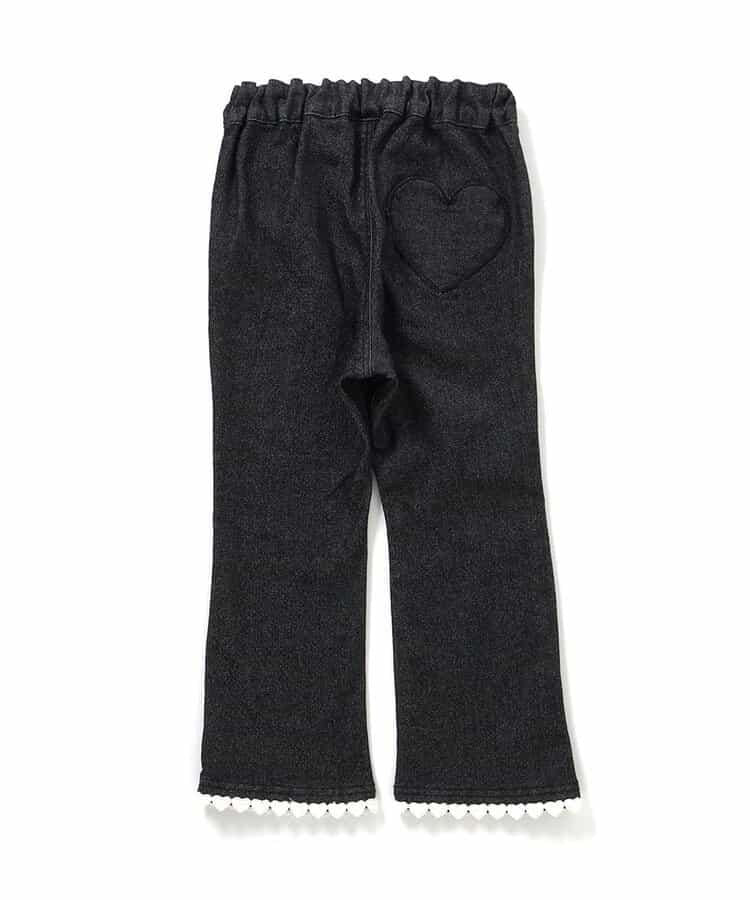 內加絨愛心・花朵口袋喇叭褲 十分褲