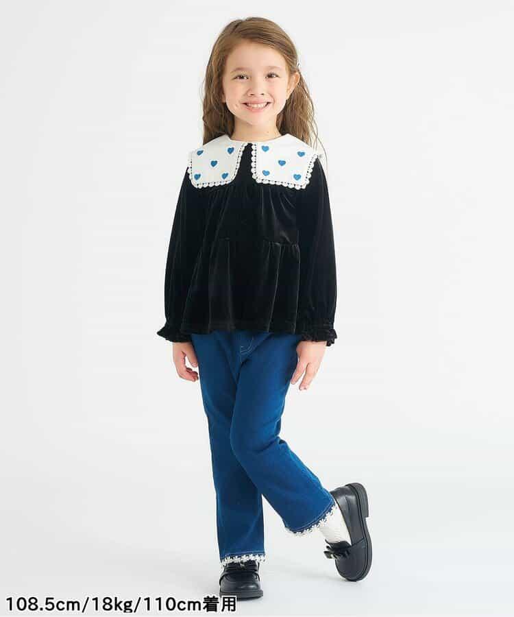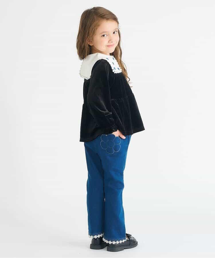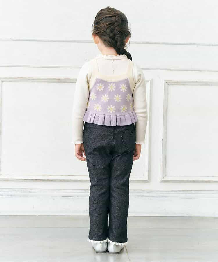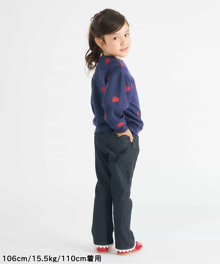apres les cours 長褲 "揹帶心花口袋喇叭褲 "是一款時尚單品,在自然風格中加入了精巧的設計*。