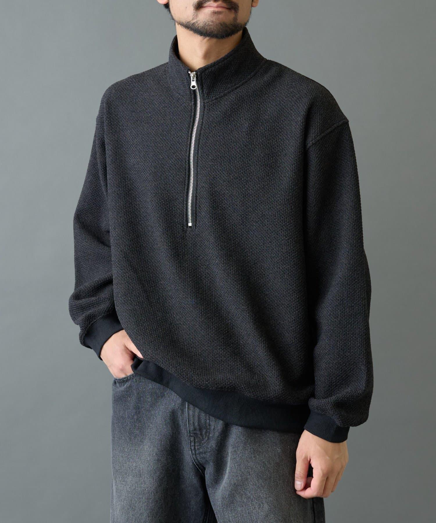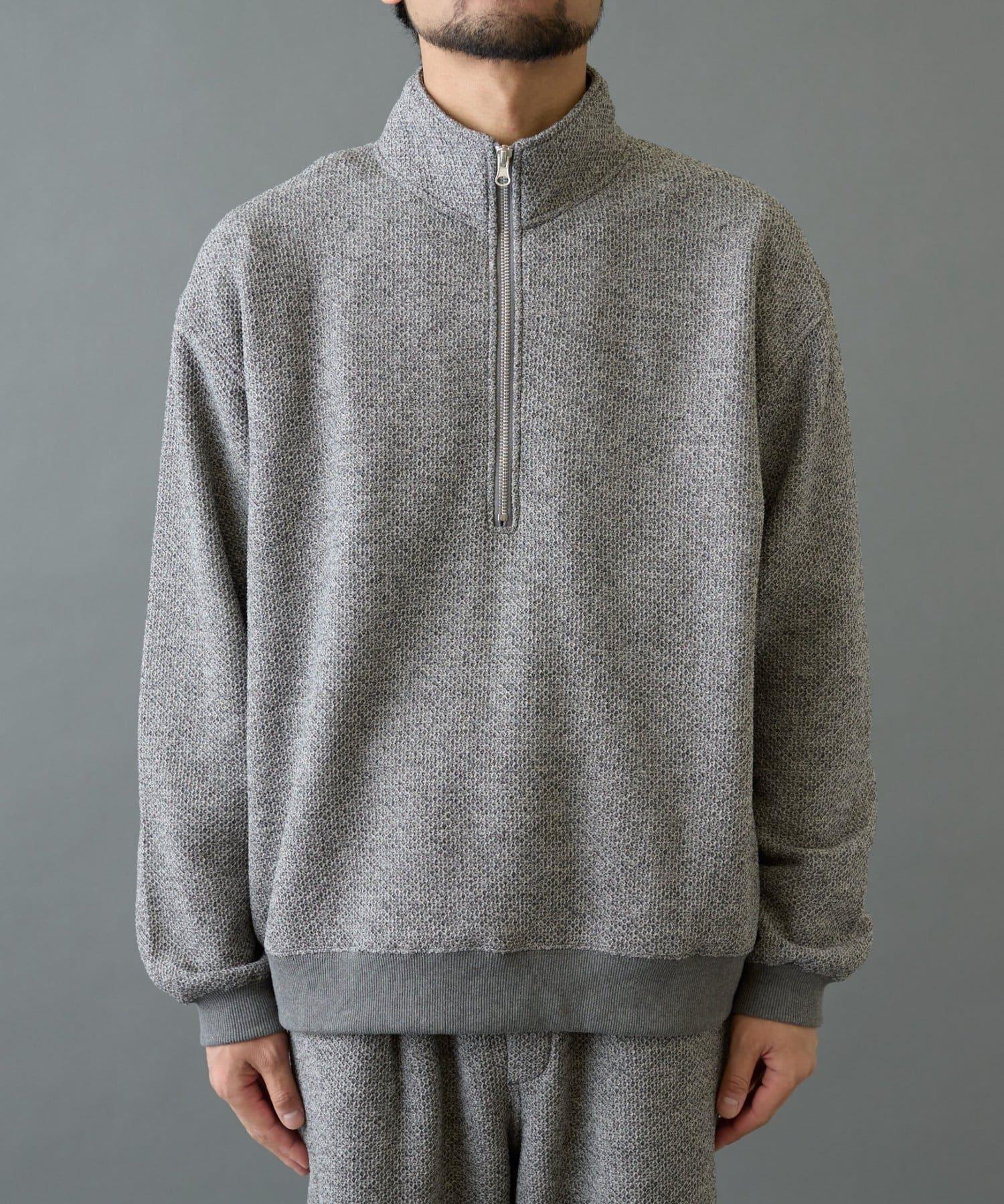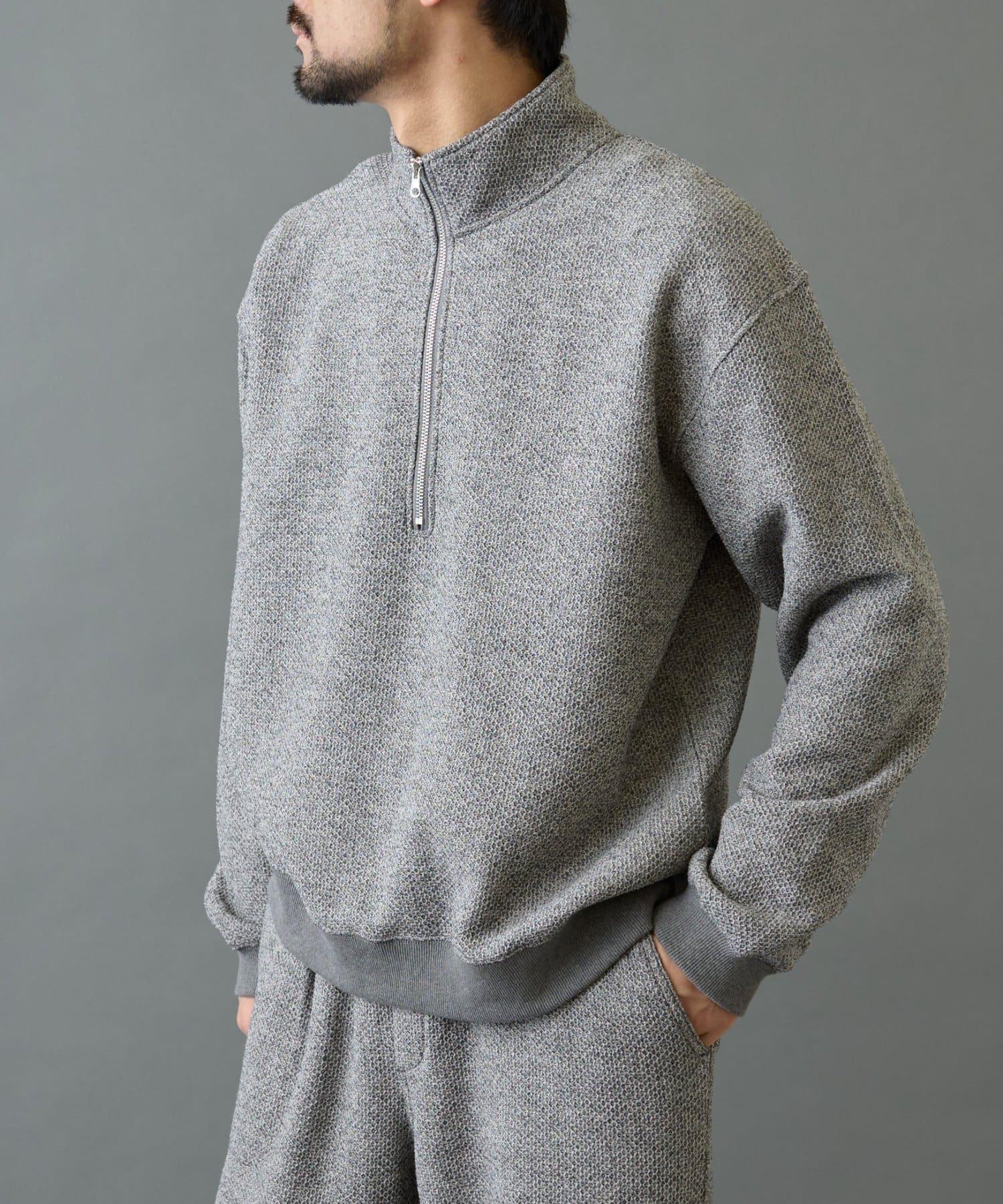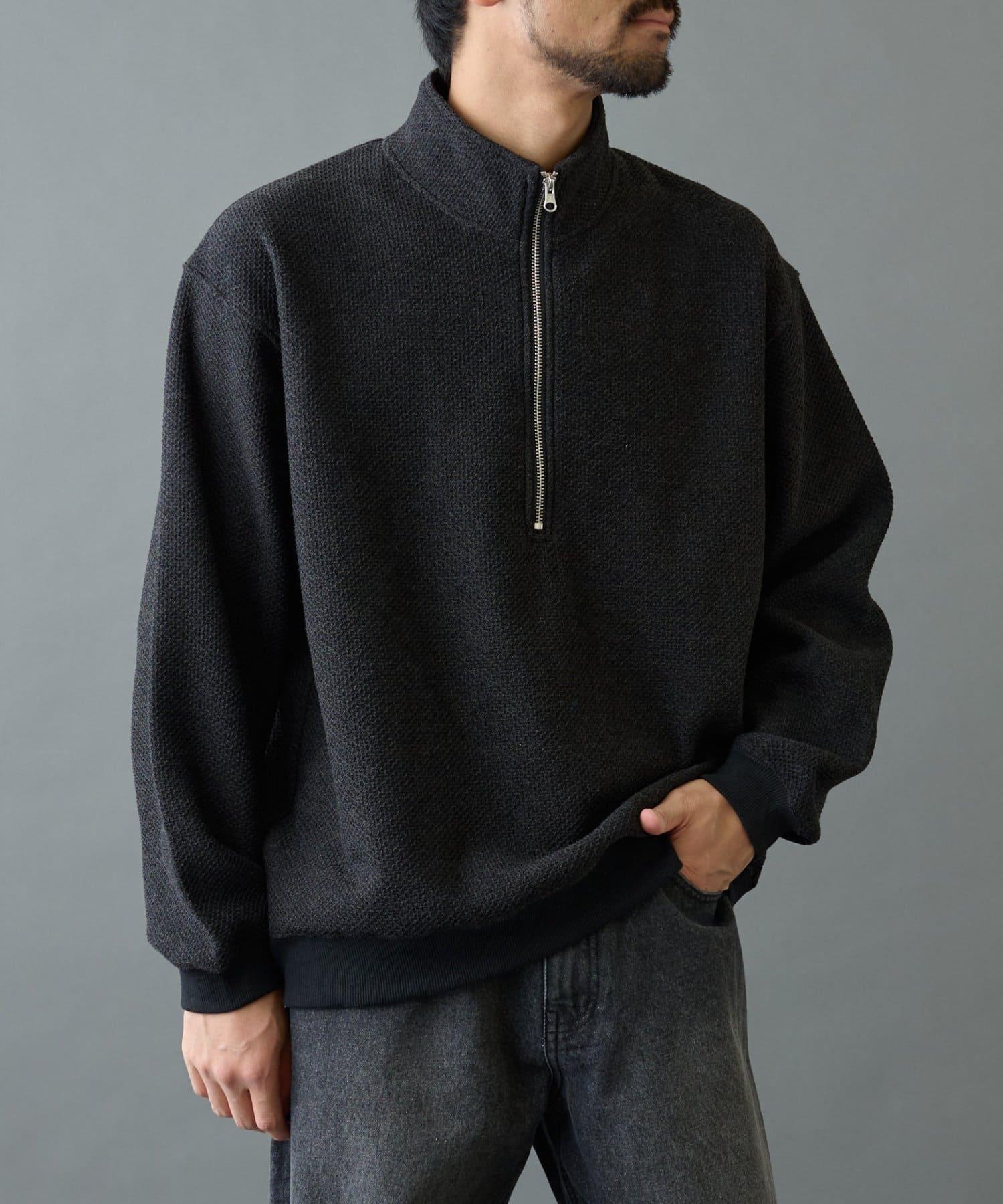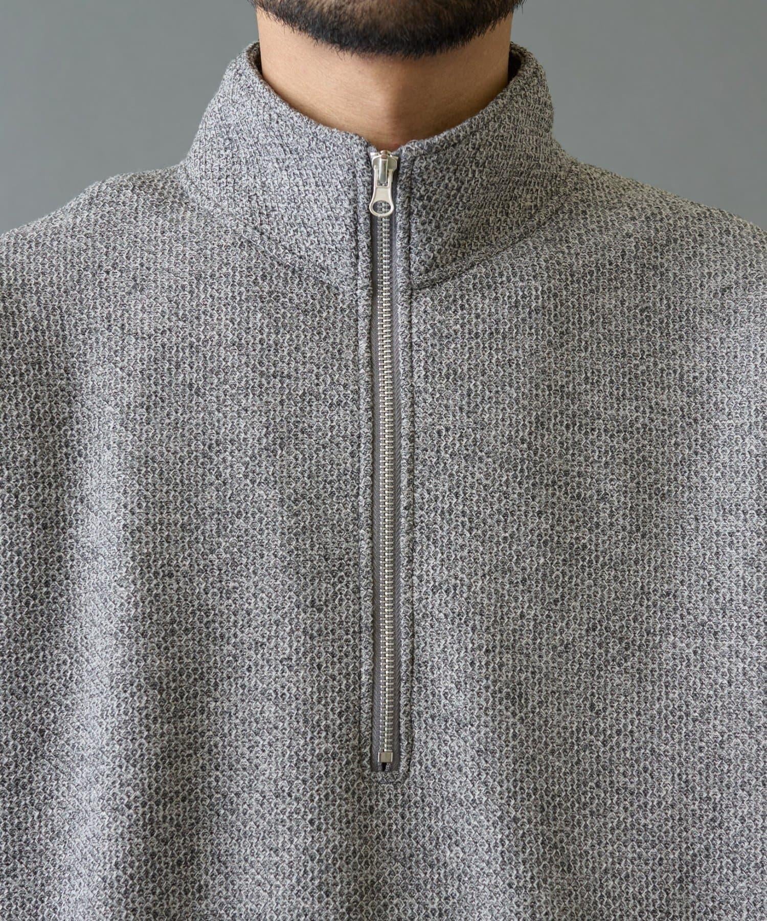 這款半拉鍊上衣結合了斜紋軟呢的表面紋理和背部拉絨的柔軟保暖性。