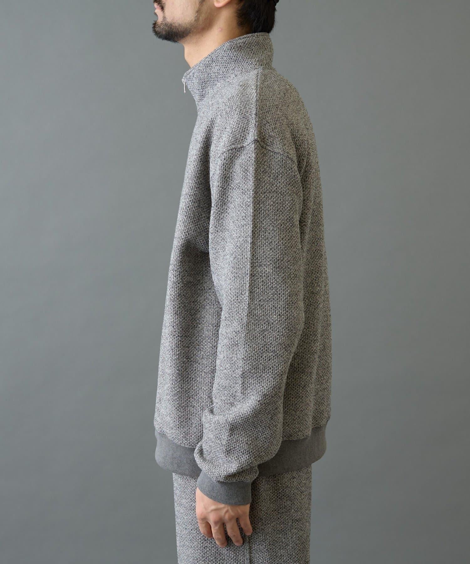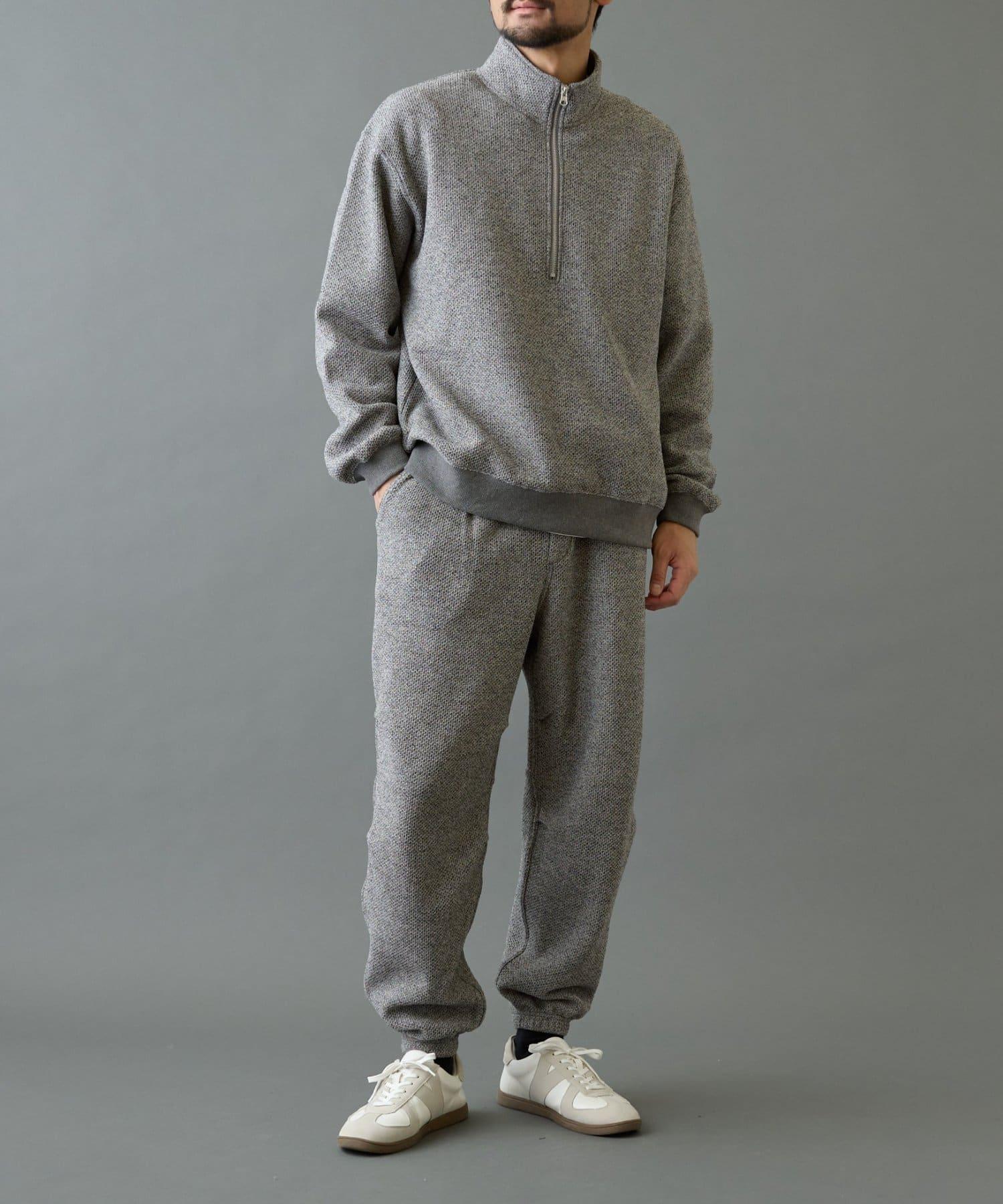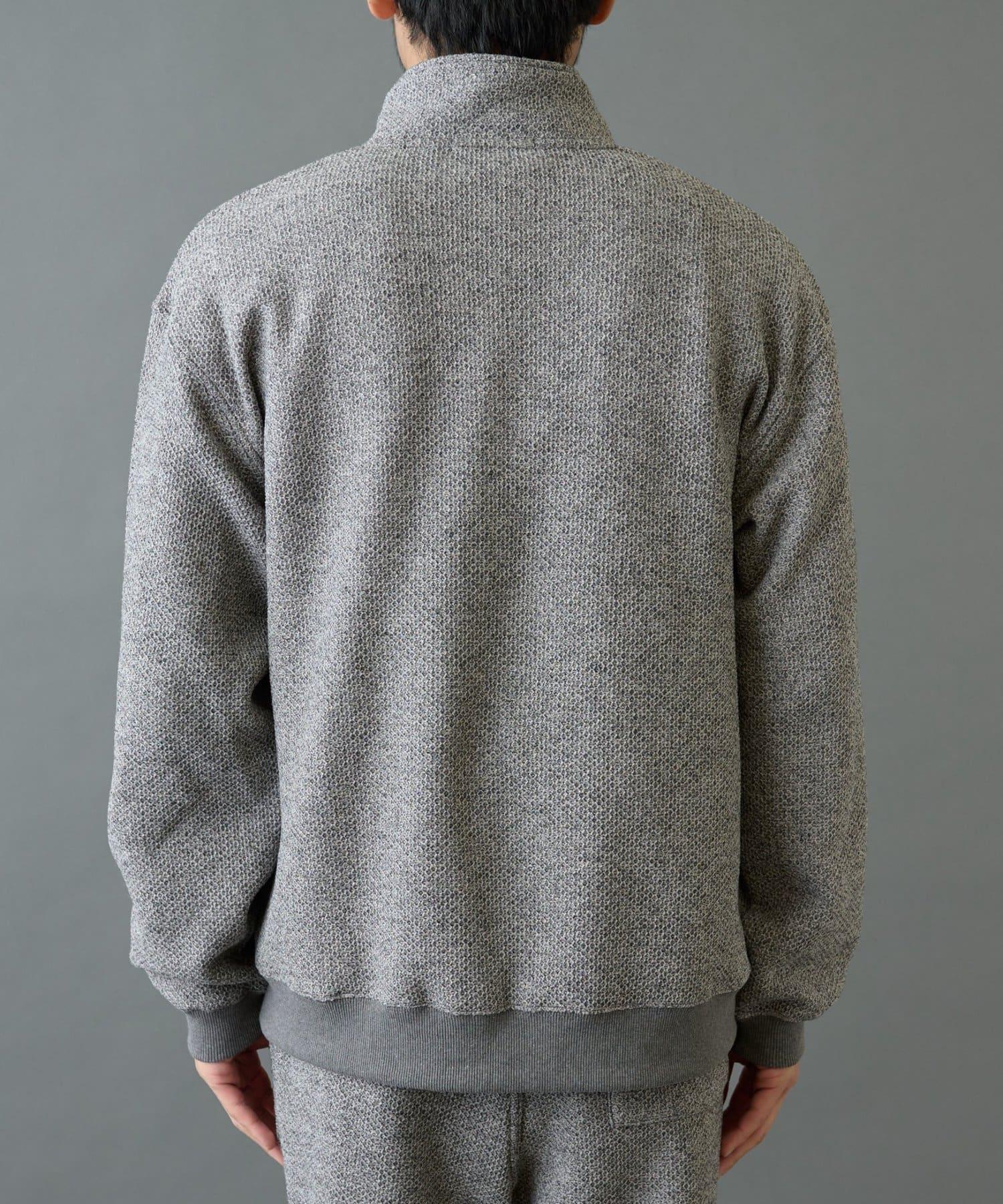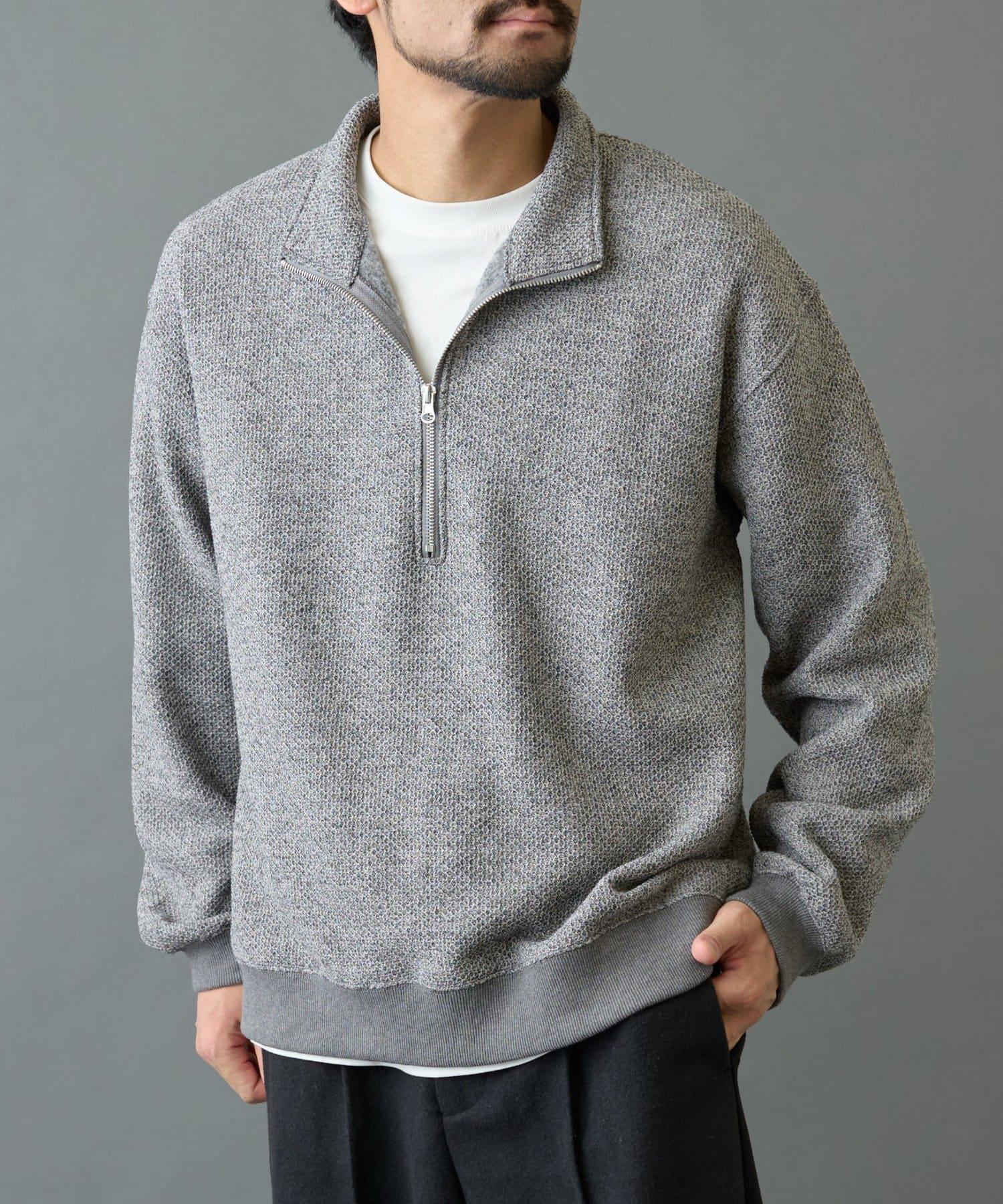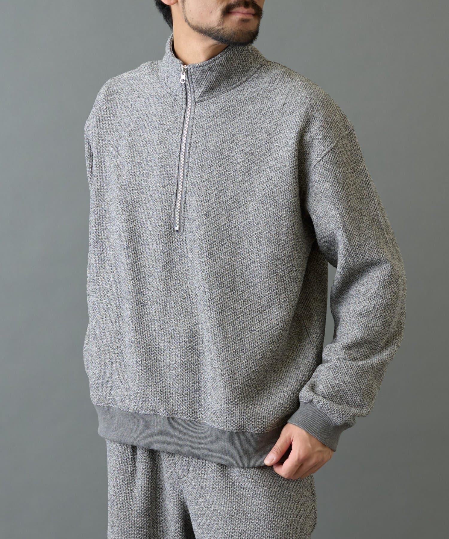 這款半拉鍊上衣結合了斜紋軟呢的表面紋理和背部拉絨的柔軟保暖性。