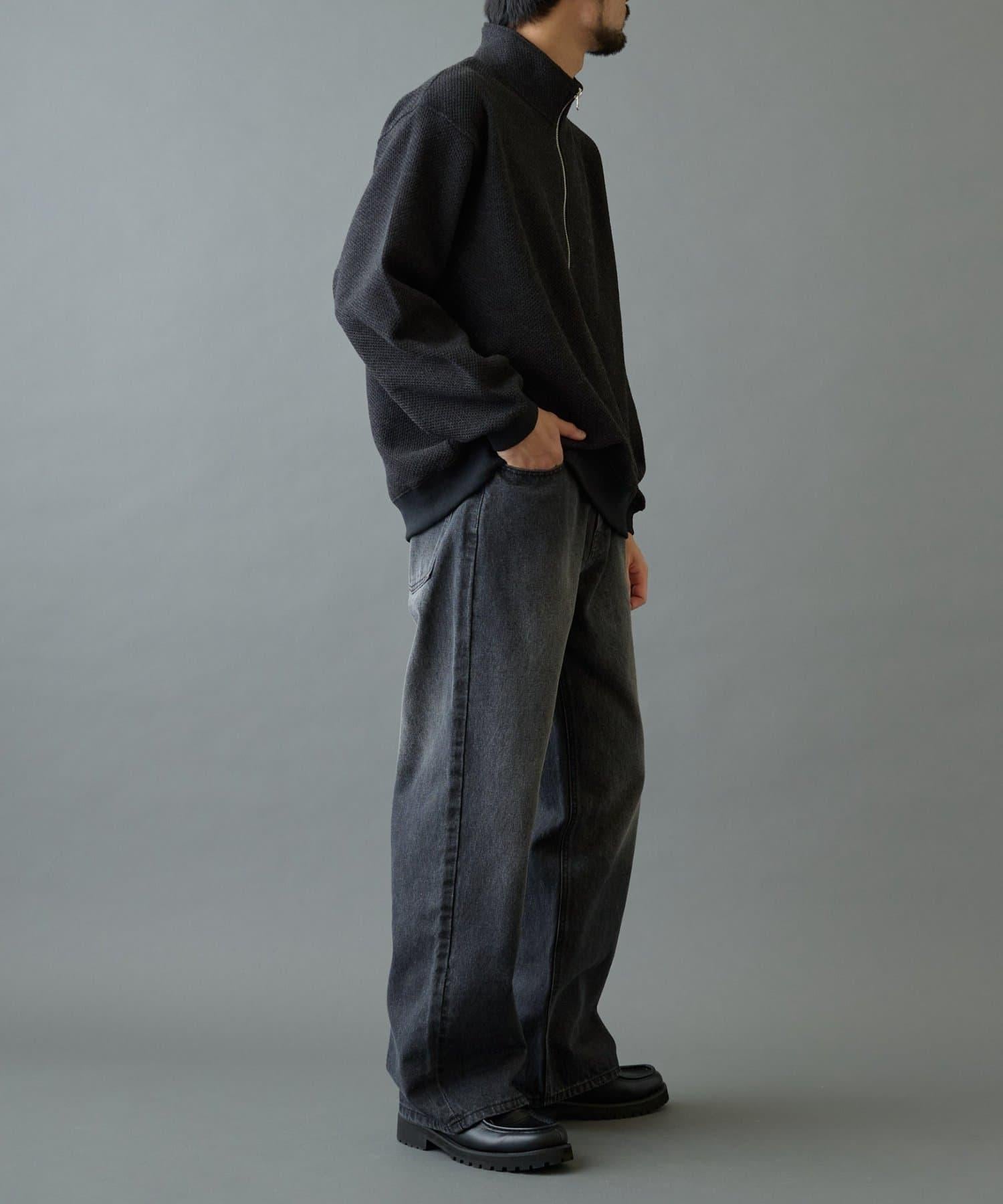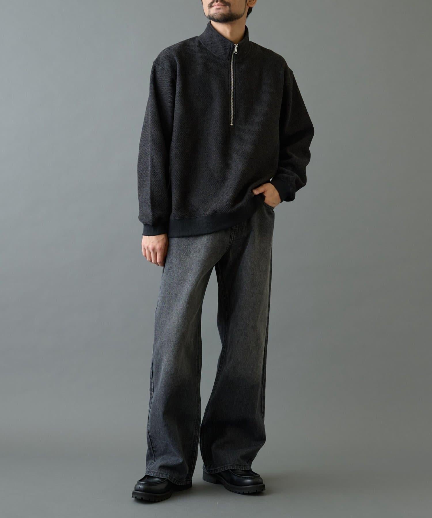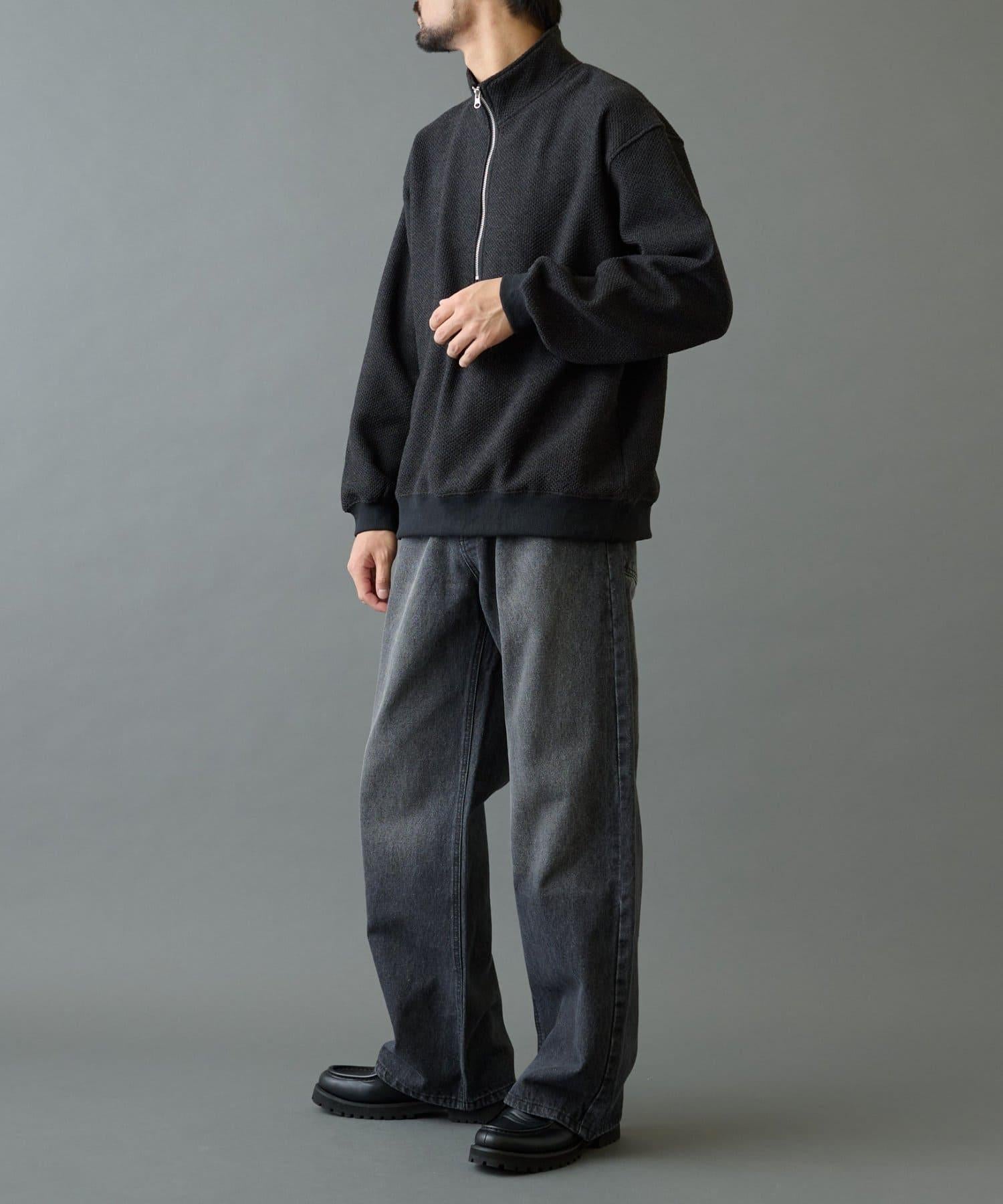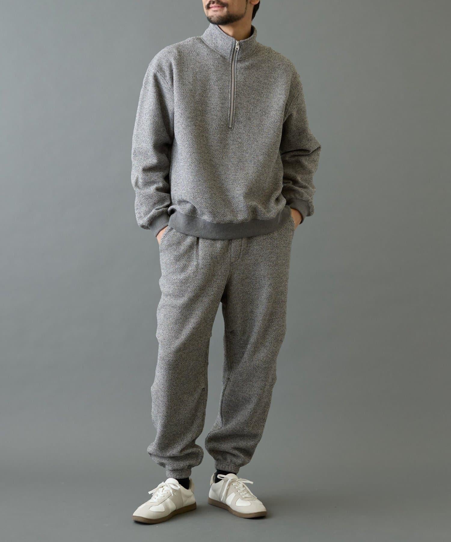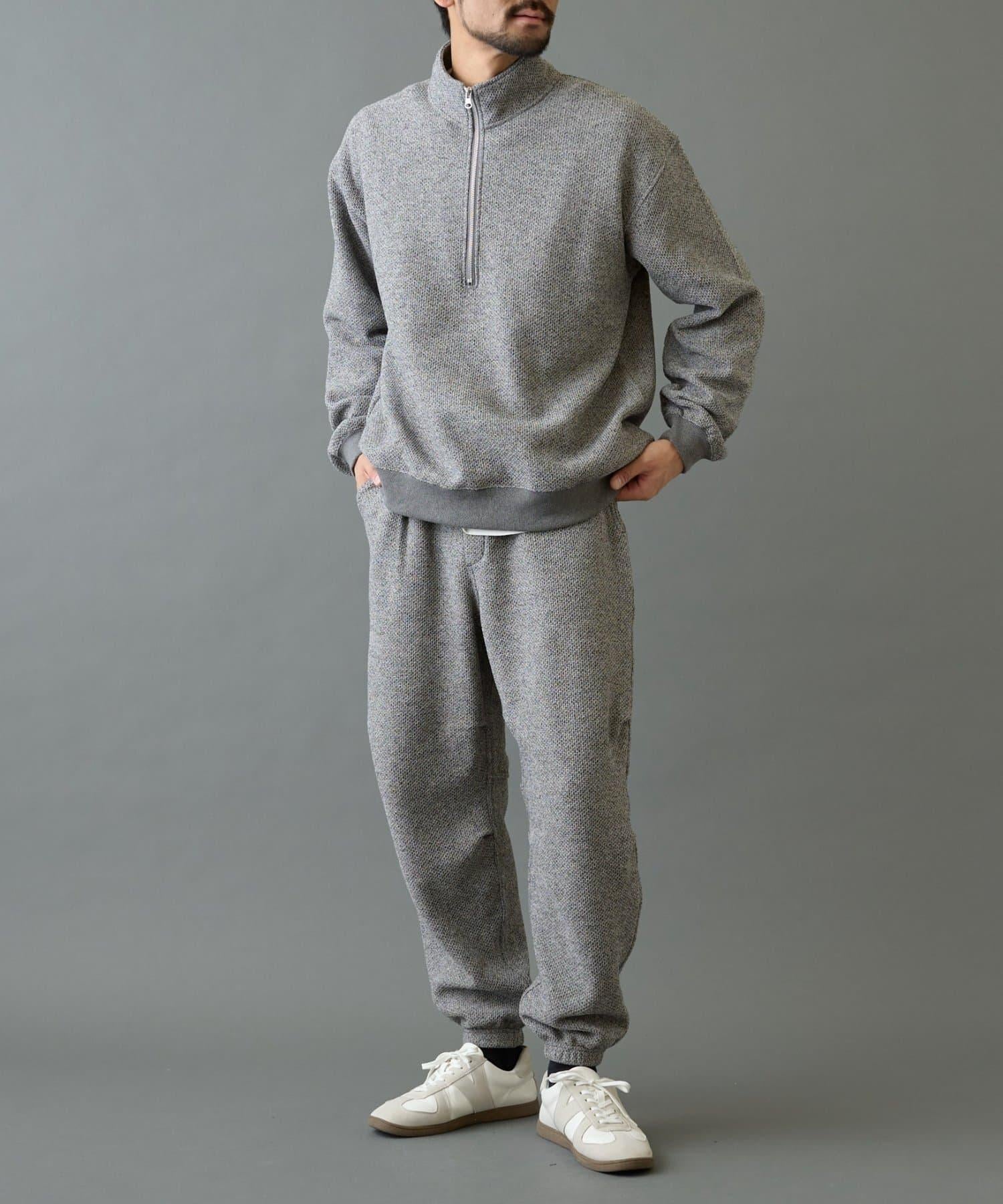 這款半拉鍊上衣結合了斜紋軟呢的表面紋理和背部拉絨的柔軟保暖性。