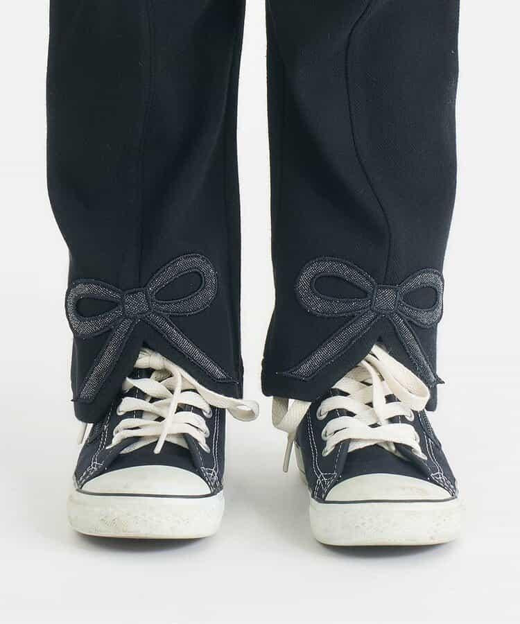 課程結束後的長褲 "WEB Limited:內襯緞帶開衩剪裁縫製長褲 "是一款時尚單品,在自然風格中加入了微妙的設計*。